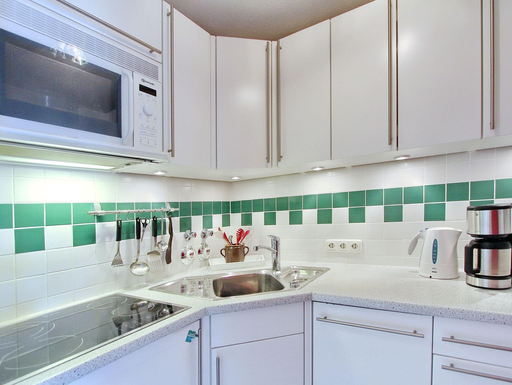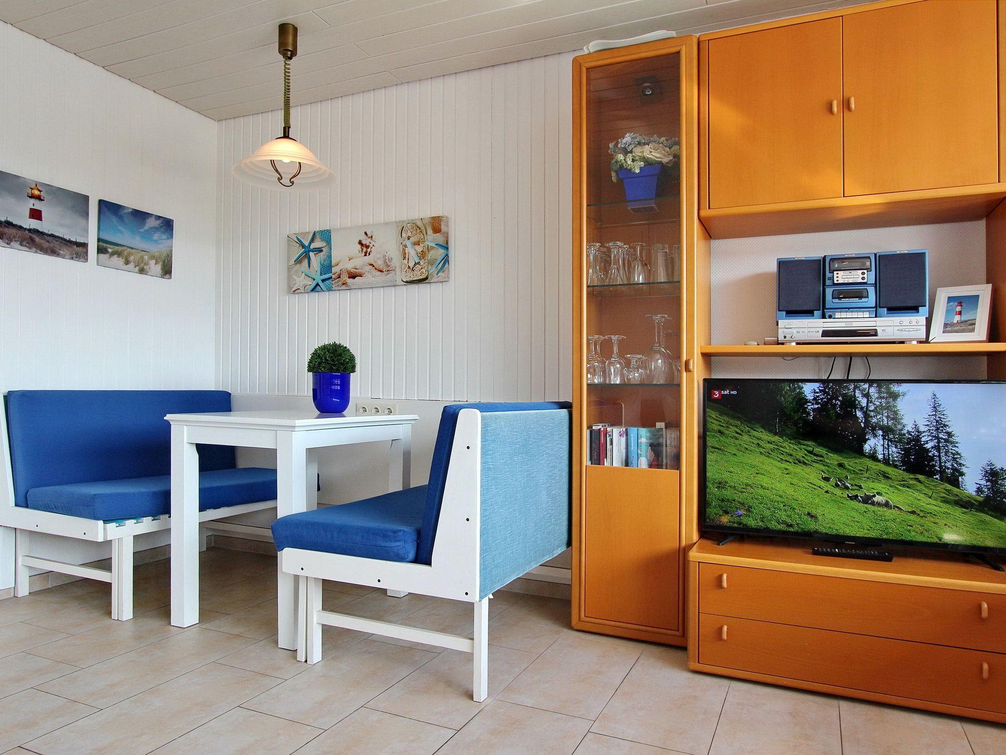 Gemütlich eingerichtete Einzimmerwohnung in der 4. Etage im Haus Sylter Welle mit Blick auf das Landesinnere. Nur wenige Gehminuten brauchen sie zum Strand und der Promenade. Der kombinierte Wohn-/Schlafraum mit vorgelagertem Ostbalkon (Balkonmöbel sind vorhanden) verfügt über ein feststehendes Doppelbett, einen Essplatz mit 2 Sitzbänken und 2 Sesseln am Fenster. Das Badezimmer hat eine Dusche. In der Einbauküche mit Geschirrspüler, Ceranfeld und Mikrowelle können sie sich selbst verpflegen. Zur technischen Ausstattung gehört: ein Flachbildfernseher, ein CD-Player und ein Radio. Das freie WLAN Netzwerk (WEG Haus Sylter Welle - Passwortfrei - ohne Gewähr) steht ihnen kostenfrei zur Verfügung. Wohnungsgröße: ca. 38 m².