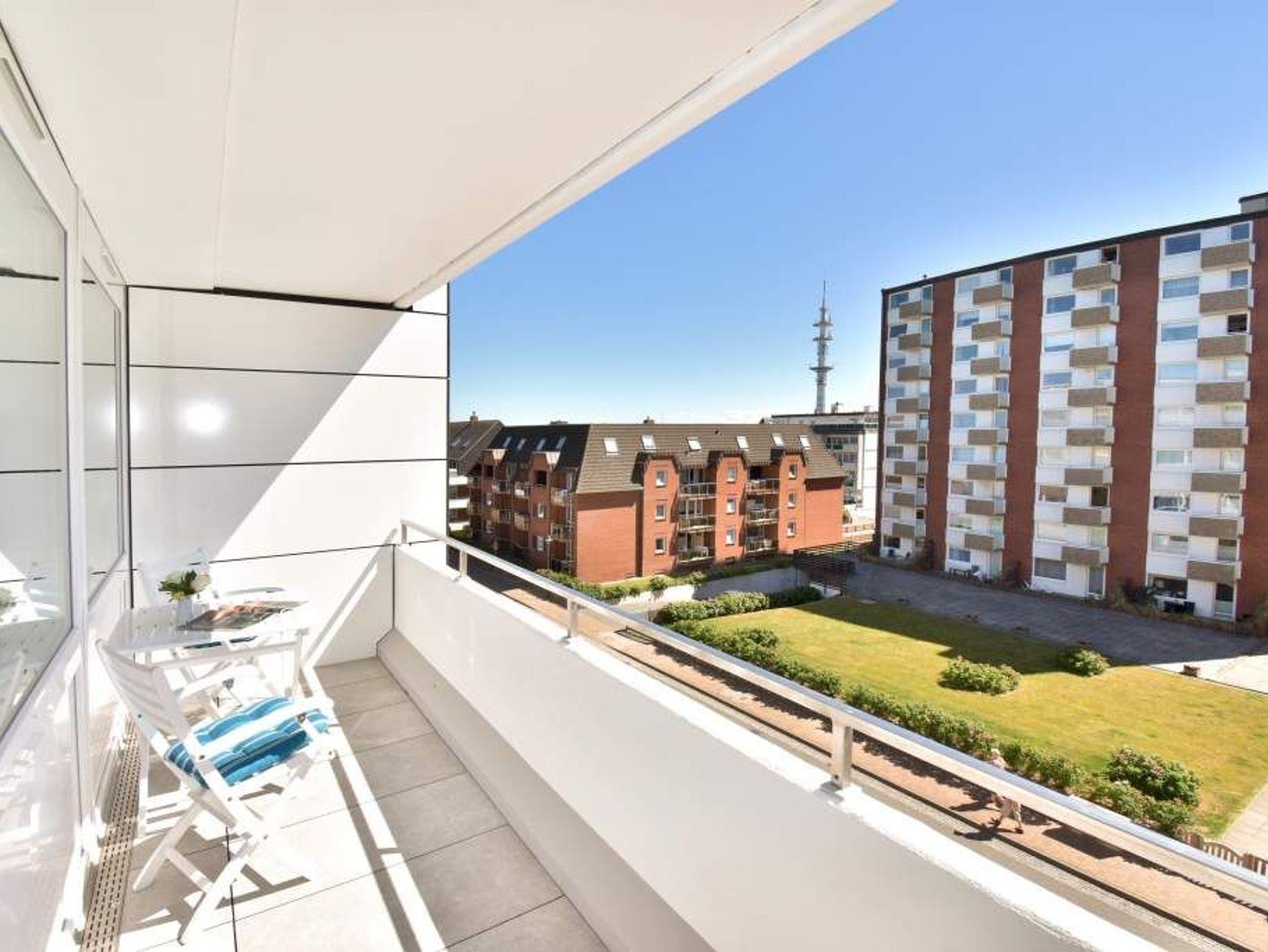 Moderne neu ausgestattete City-Ferienwohnung in unmittelbarer Nähe zum Strand (Sylter Welle) Großzügige 1-Zimmer-Nichtraucher-Ferienwohnung (38qm) in der dritten Etage zur Landseite mit Ostloggia(Vormittagssonne) und Balkonmöbeln für 2 Personen