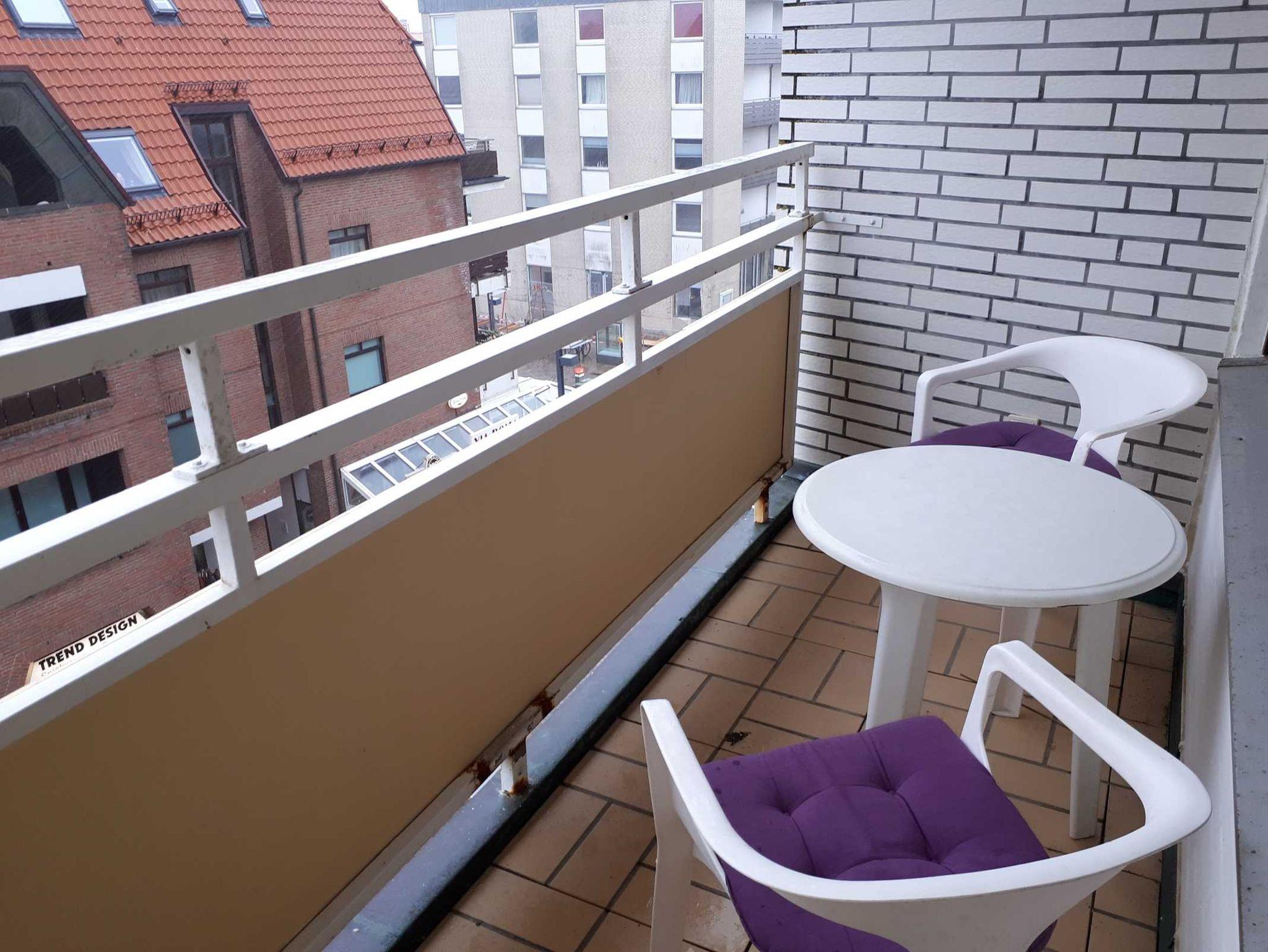 Der möblierte Südbalkon mit Blick auf die Friedrichstraße lädt zum Verweilen ein.