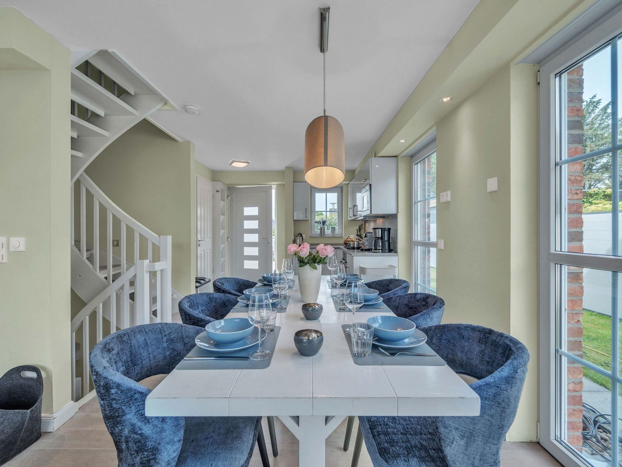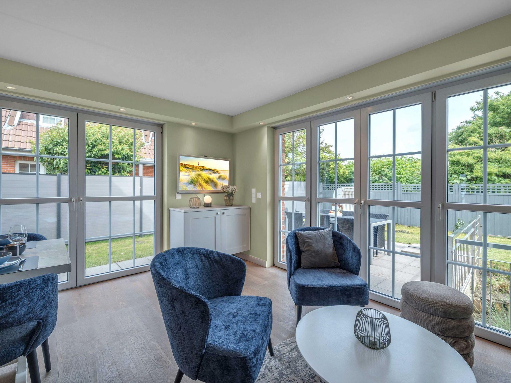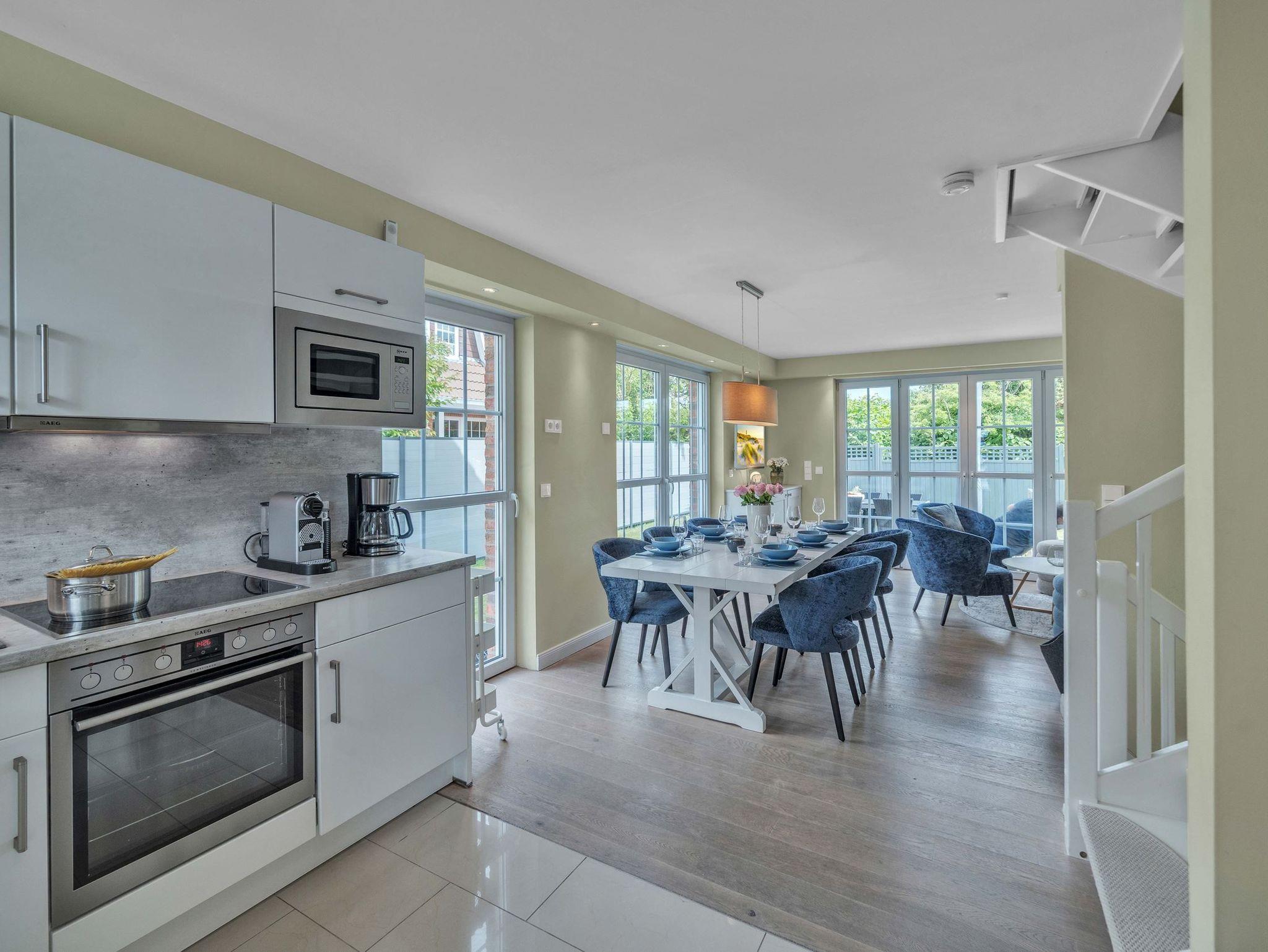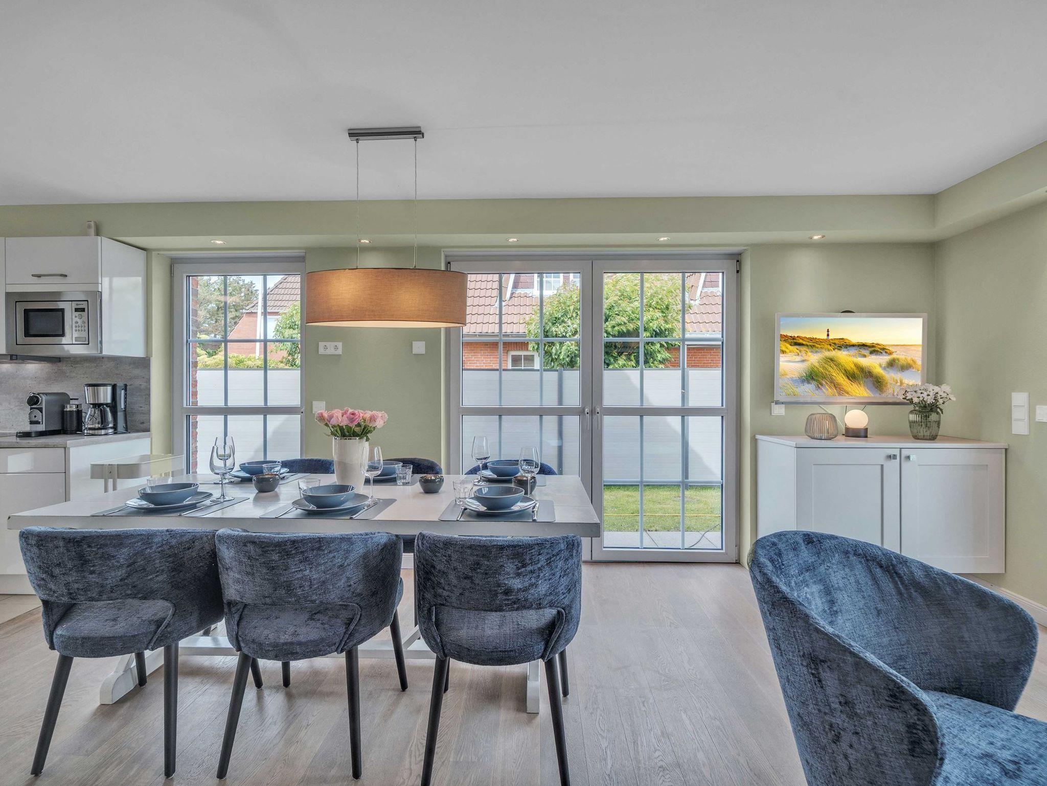 Dieses hochwertige Feriendomizil bietet Platz für bis zu 8 Personen (Empfehlung: Maximal 4 Erwachsene und 4 Kinder). Das Haus ist in einem hellen, modernen Design eingerichtet. Sie erwartet ein modernes Wohlfühl-Ambiente mit hellem Landhausdielenparkett, Flachbildfernsehern in allen Schlafzimmern, 3 wunderschönen Bädern aus Naturstein - zusätzlich eine Sauna sowie eine Whirlbadewanne. Nicht zu vergessen der Kaminofen, welcher gemütliche Abende im Wohnzimmer garantiert. Das Haus teilt sich wie folgt auf: Im Untergeschoss haben Sie ein großes Schlafzimmer mit Doppelbett (180x200xm), ein Badezimmer, sowie die Sauna. Im Erdgeschoss haben Sie ein Badezimmer mit Dusche, die große Küche, den Essbreich, sowie das Wohnzimmer. im 1. OG finden Sie ein großes Schlafzimmer mit einem Doppelbett (180x200cm), ein kleineres Schlafzimmer mit einem Kojenbett (140x200cm), sowie ein Badezimmer mit Dusche. Im Dachgeschoss finden Sie das vierte Schlafzimmer mit 2 Einzelbetten. Dies empfehlen wir aufgrund der Dachgeschrägen für Kinder empfehlen würden. Außerdem handelt es sich um eine offene Galerie.