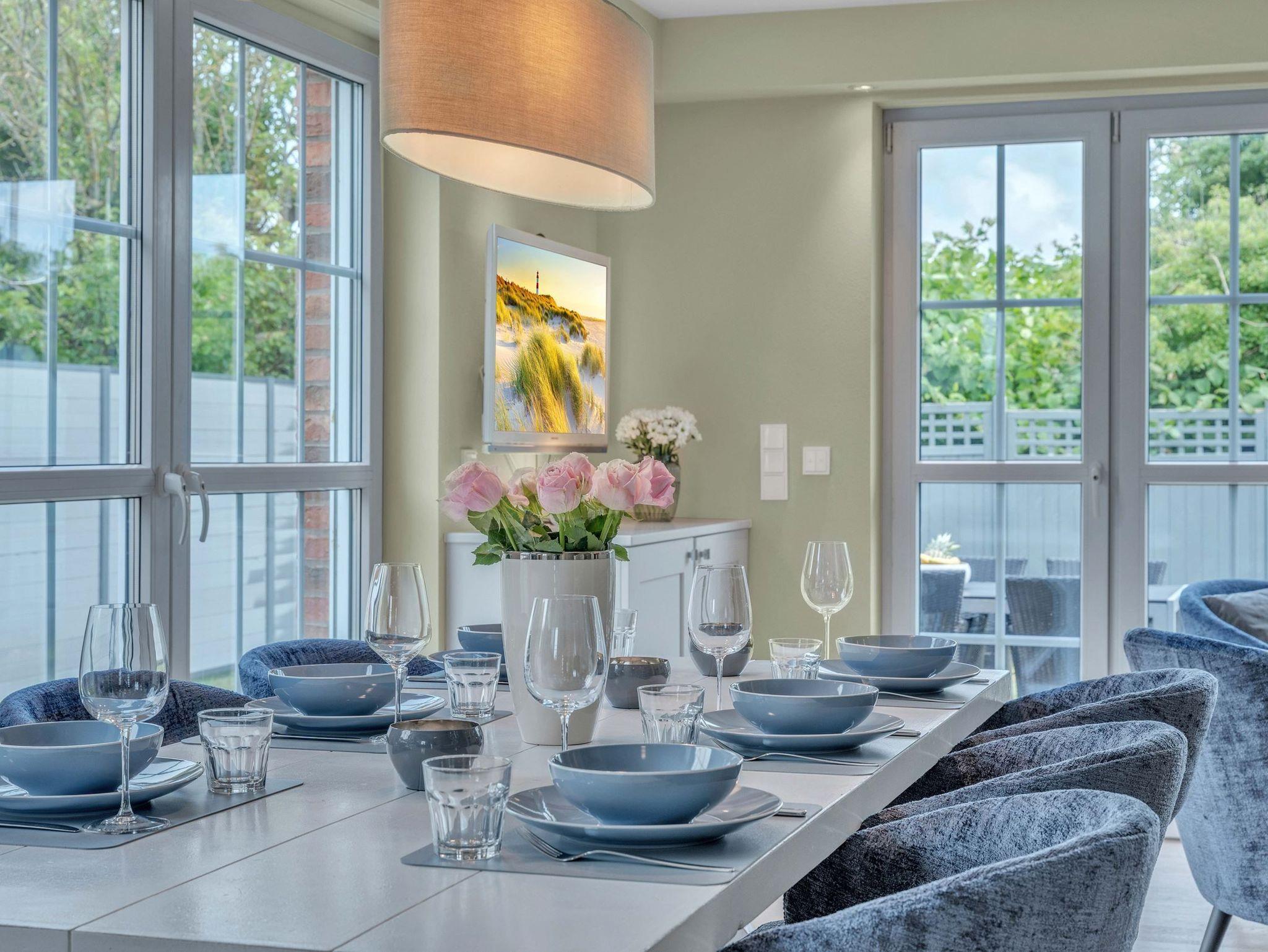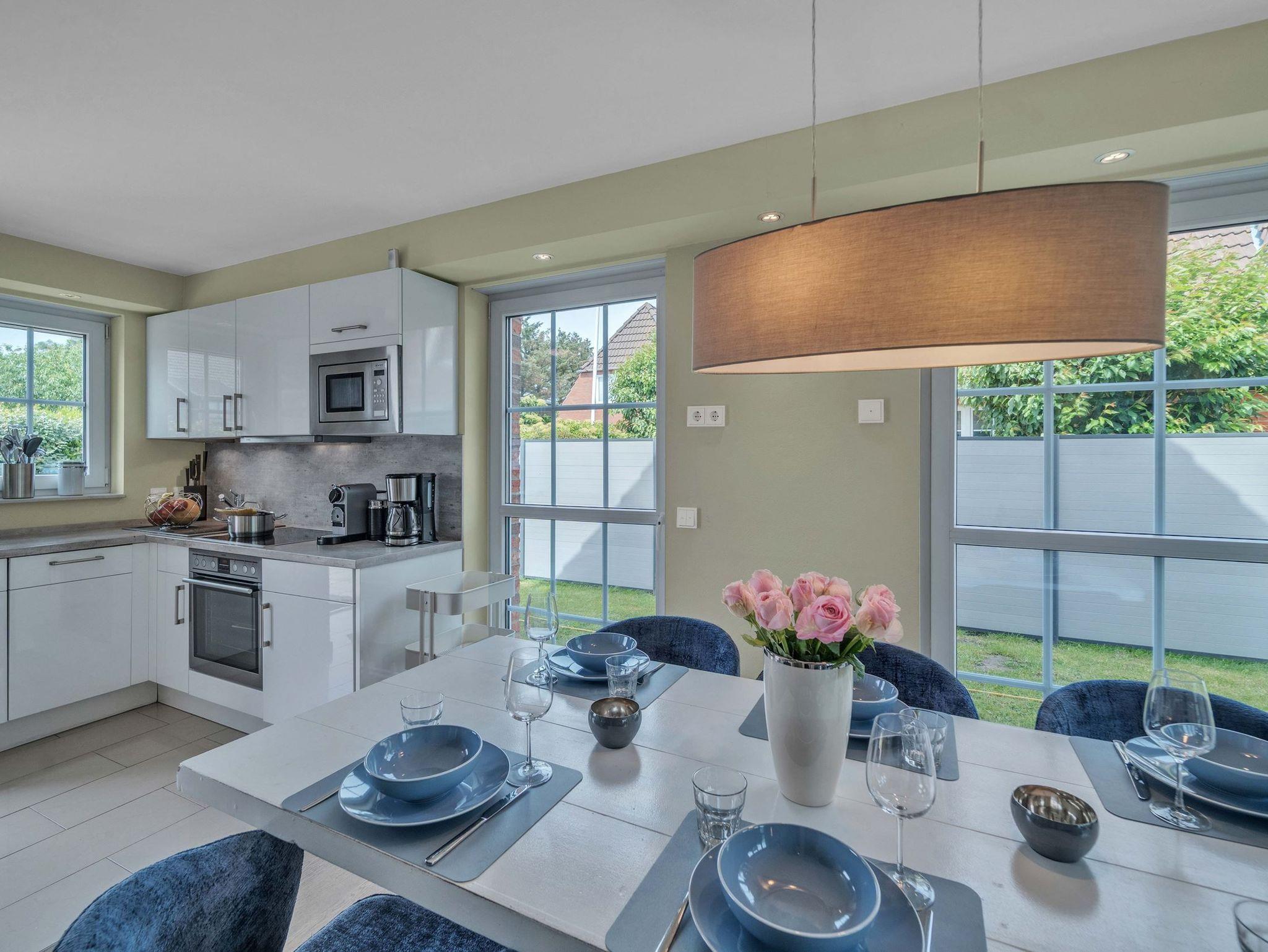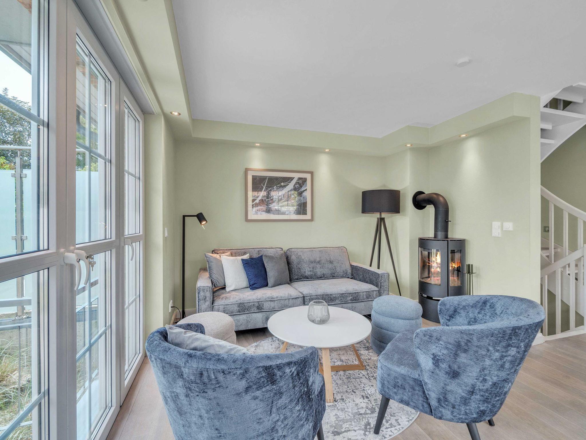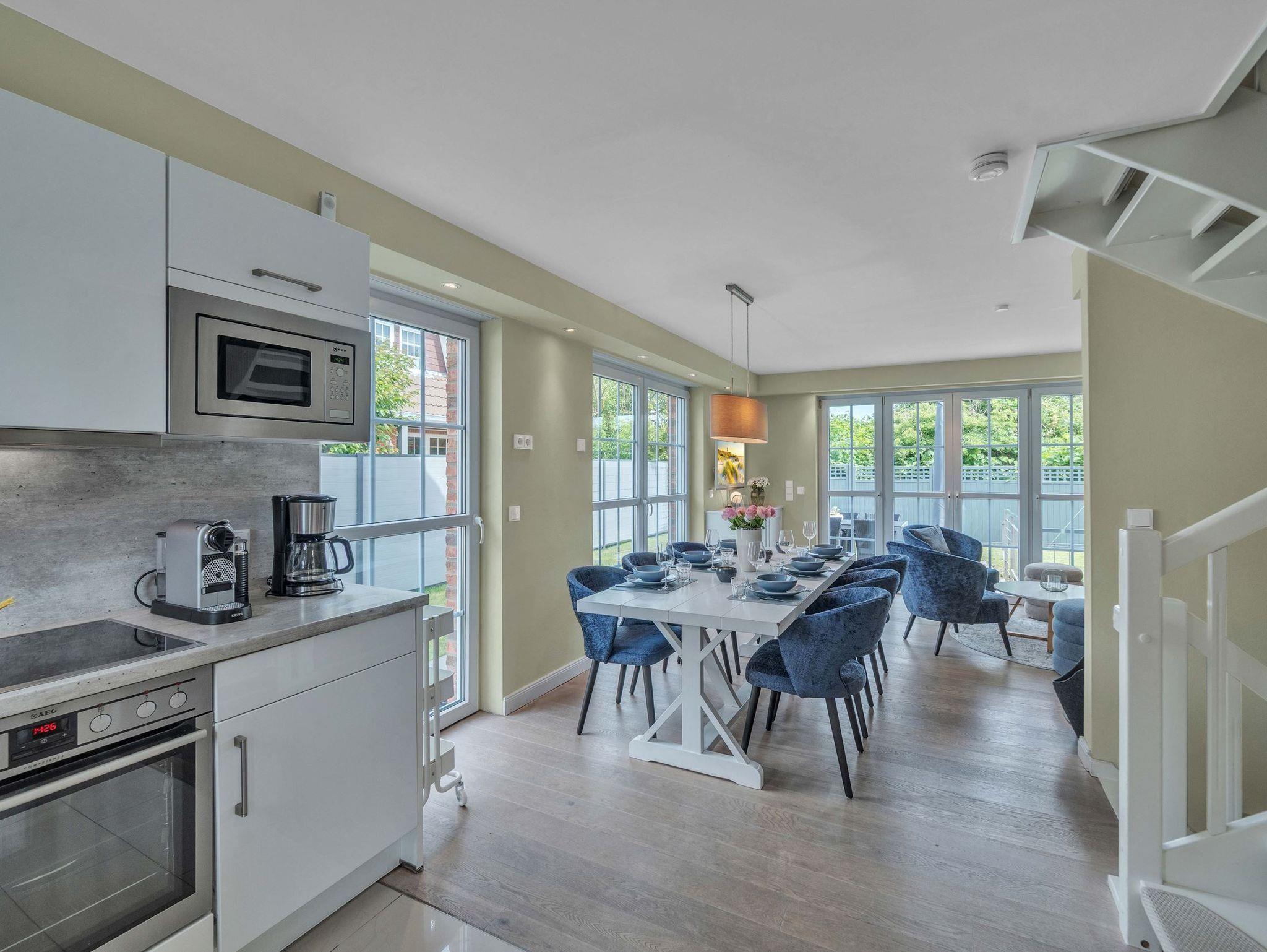 Dieses hochwertige Feriendomizil bietet Platz für bis zu 8 Personen (Empfehlung: Maximal 4 Erwachsene und 4 Kinder). Das Haus ist in einem hellen, modernen Design eingerichtet. Sie erwartet ein modernes Wohlfühl-Ambiente mit hellem Landhausdielenparkett, Flachbildfernsehern in allen Schlafzimmern, 3 wunderschönen Bädern aus Naturstein - zusätzlich eine Sauna sowie eine Whirlbadewanne. Nicht zu vergessen der Kaminofen, welcher gemütliche Abende im Wohnzimmer garantiert. Das Haus teilt sich wie folgt auf: Im Untergeschoss haben Sie ein großes Schlafzimmer mit Doppelbett (180x200xm), ein Badezimmer, sowie die Sauna. Im Erdgeschoss haben Sie ein Badezimmer mit Dusche, die große Küche, den Essbreich, sowie das Wohnzimmer. im 1. OG finden Sie ein großes Schlafzimmer mit einem Doppelbett (180x200cm), ein kleineres Schlafzimmer mit einem Kojenbett (140x200cm), sowie ein Badezimmer mit Dusche. Im Dachgeschoss finden Sie das vierte Schlafzimmer mit 2 Einzelbetten. Dies empfehlen wir aufgrund der Dachgeschrägen für Kinder empfehlen würden. Außerdem handelt es sich um eine offene Galerie.