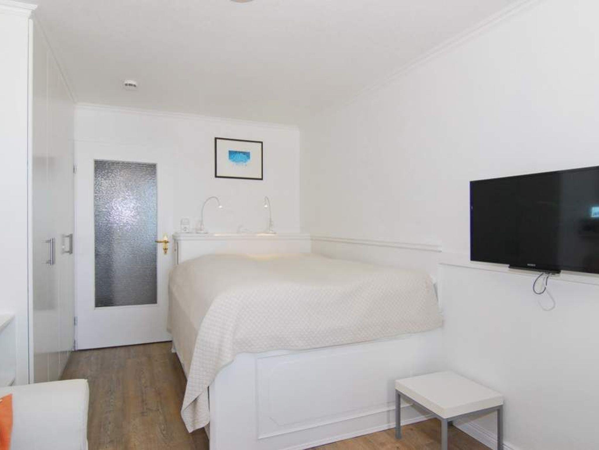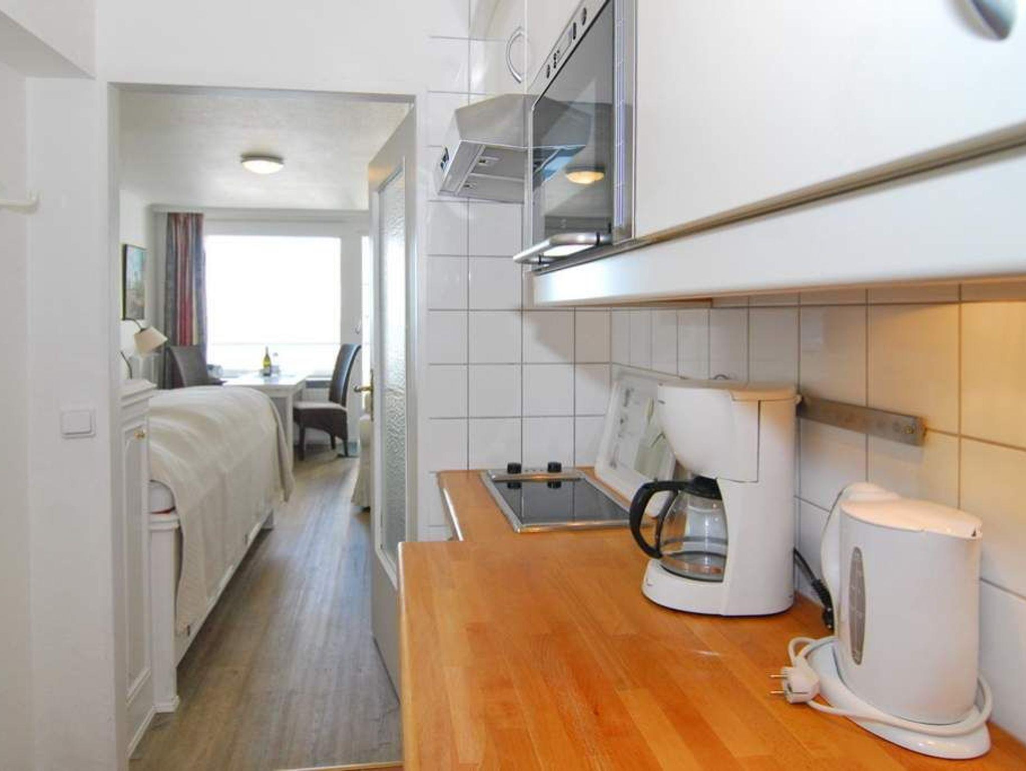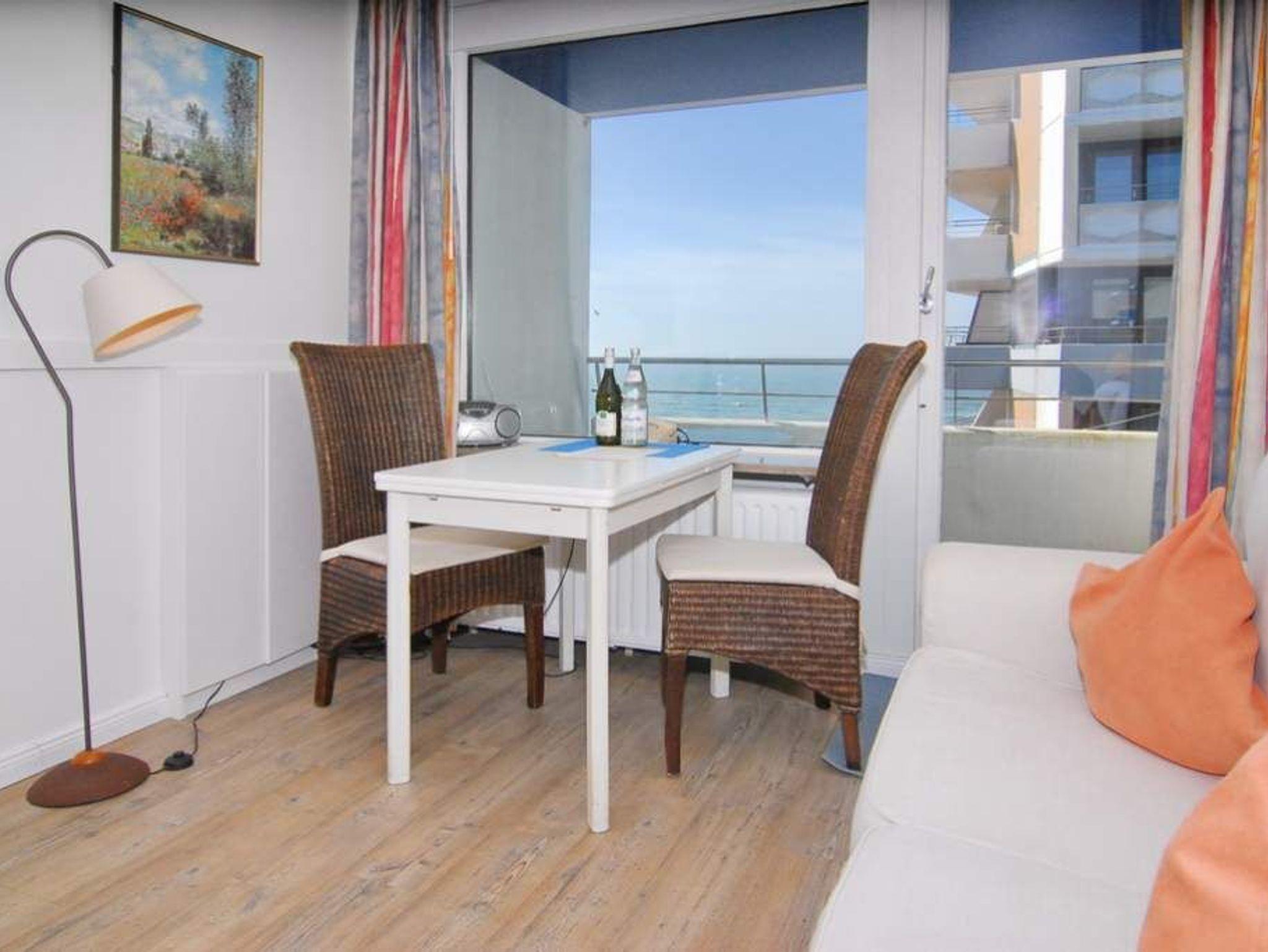 1-Zimmer-Ferienwohnung im 7. Stock des Haus am Meer. Die Nichtraucher-Wohnung hat ca. 25qm und verfügt über einen kombinierten Wohn-/Schlafraum mit Podest-Doppelbett (Breite 1.40 m, 2 Matratzen, Einstiegshöhe ca. 70 cm), 2-Sitzer- Couch und Eßtisch am Fenster, Flat-TV, Radio mit CD-Player, Westbalkon mit teilweisen Meeresblick, Küchenzeile im Flur mit Mikrowelle und Geschirrspüler, Duschbad/WC. W-LAN ( ohne Gewähr ) im Haus steht zur freien Verfügung. Der Wohn-/ Schlafraum ist mit Laminat ausgelegt, der Flur-/ Küchenbereich sowie das Bad ist gefliest. Tierhaltung ist nicht gestattet. PKW-Stellplatz nur auf Bestellung. Bettwäsche und Handtücher sind zur Anreise aufgezogen Beginnend vom 15.10.2025 bis 5.4.2026 (Ostern) findet die Fassandensanierung der Landseite (Osten) sowie des Südgiebels statt. Mit Baulärm ist in dieser Zeit zu rechnen.