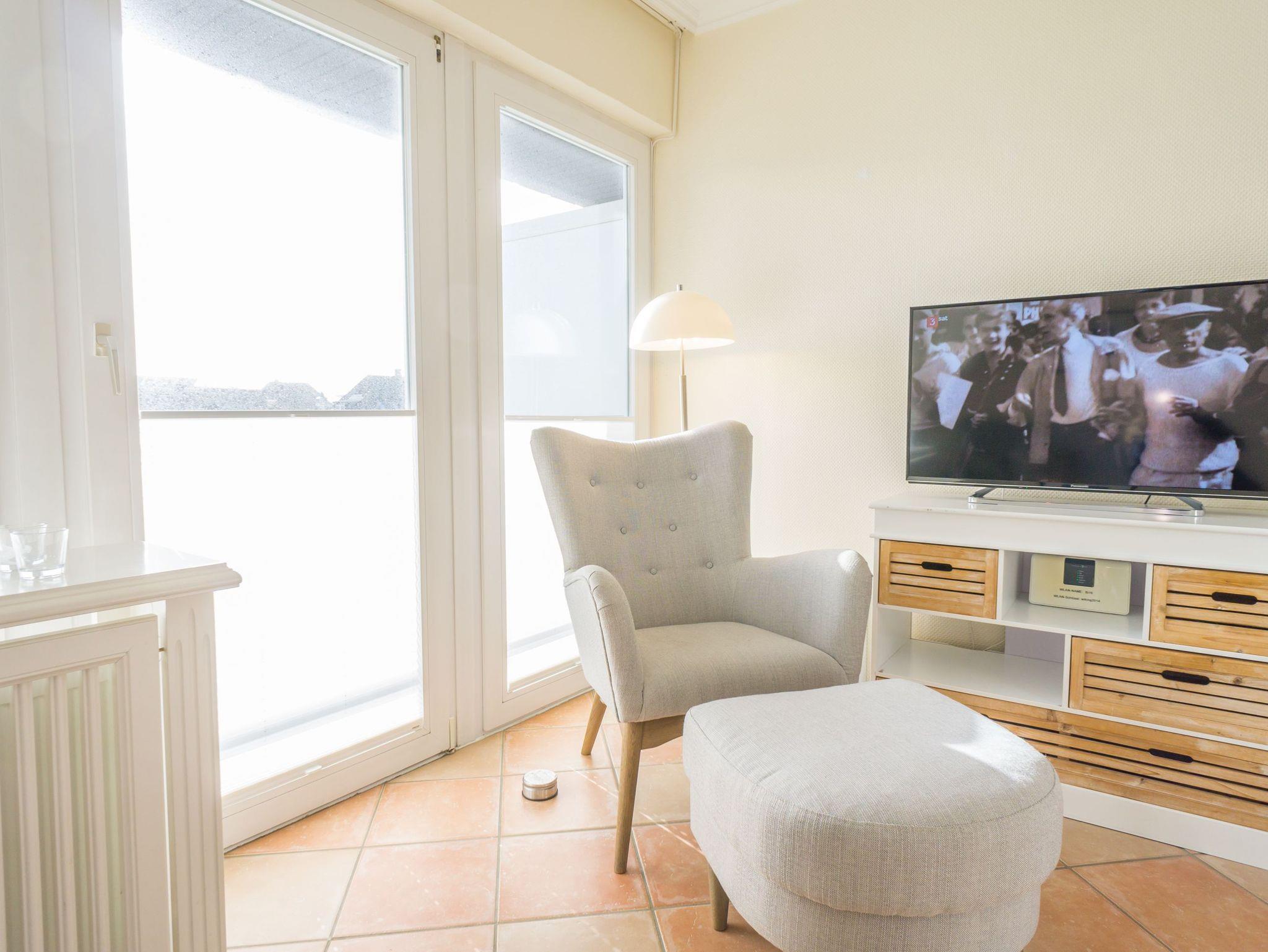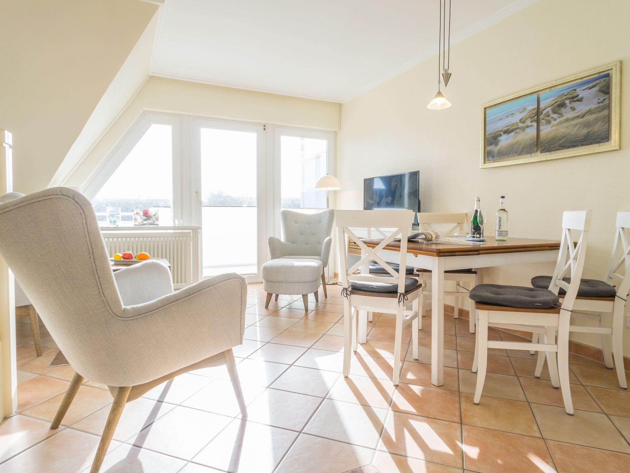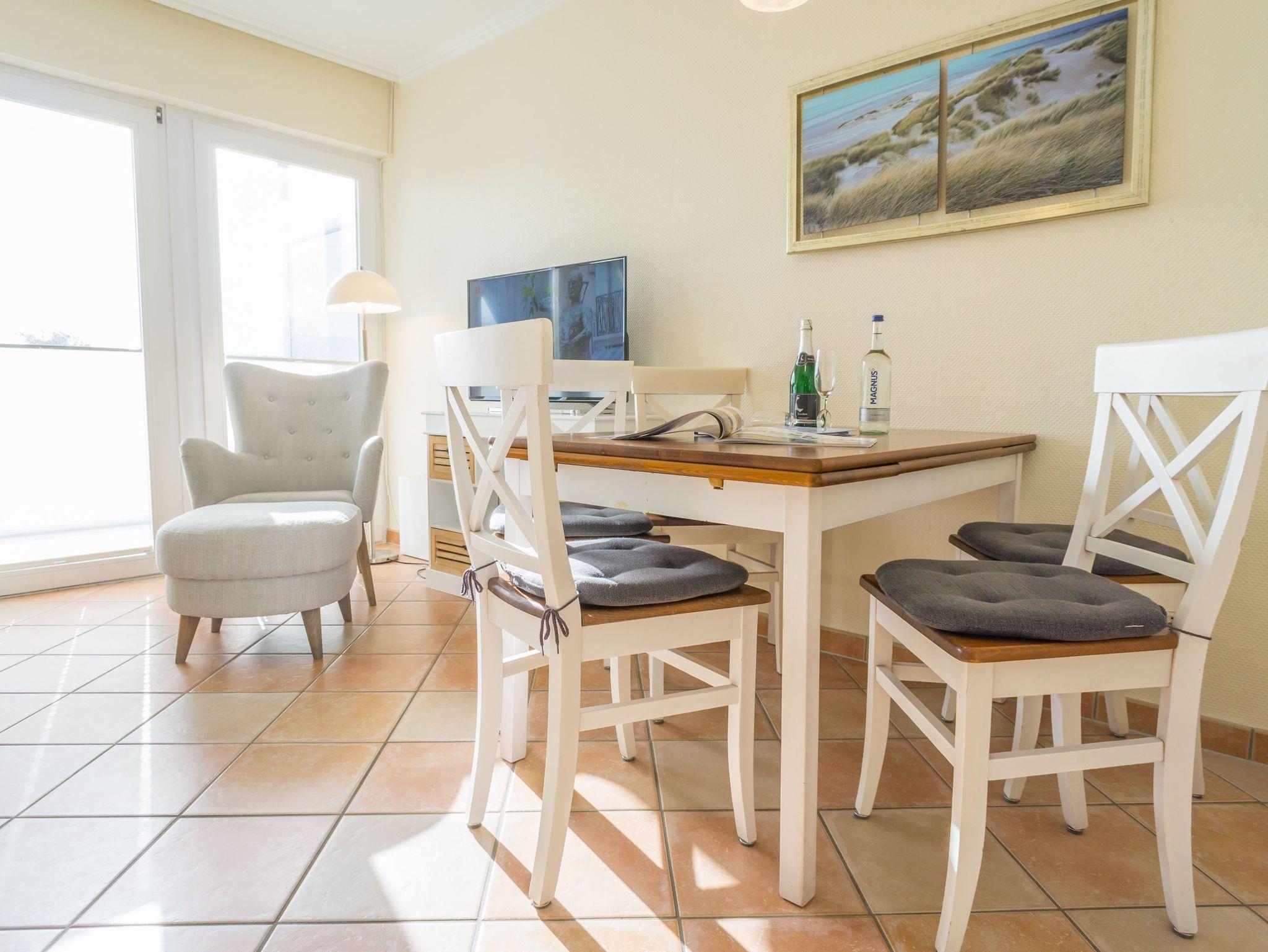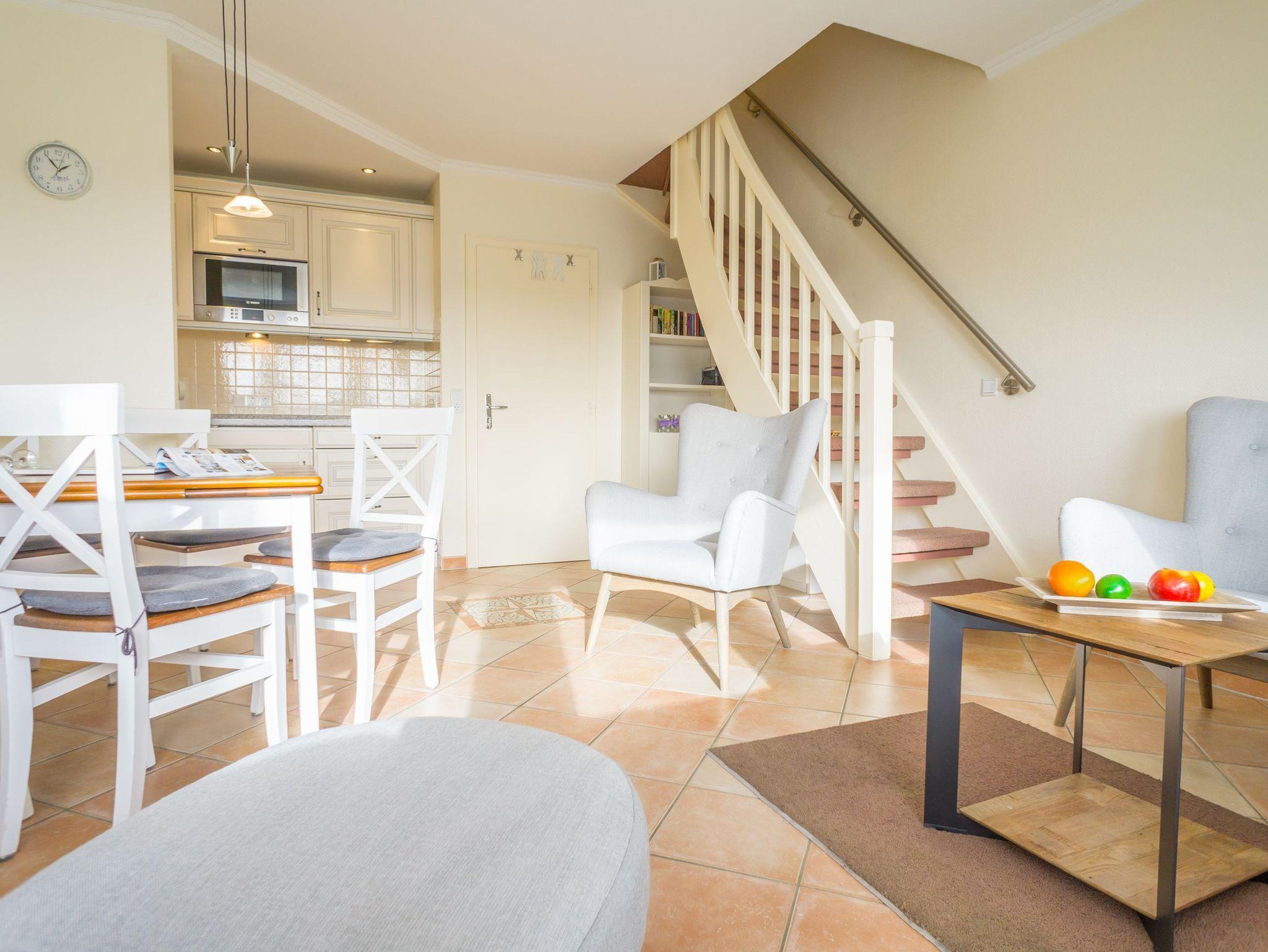 Der gemütliche Wohnraum besteht aus einer Sitzecke (2-Sitzer-Couch und zwei Sessel), einem Essplatz, Flachbild-TV, Telefon mit kostenloser Telefonie ins deutsche Festnetz.