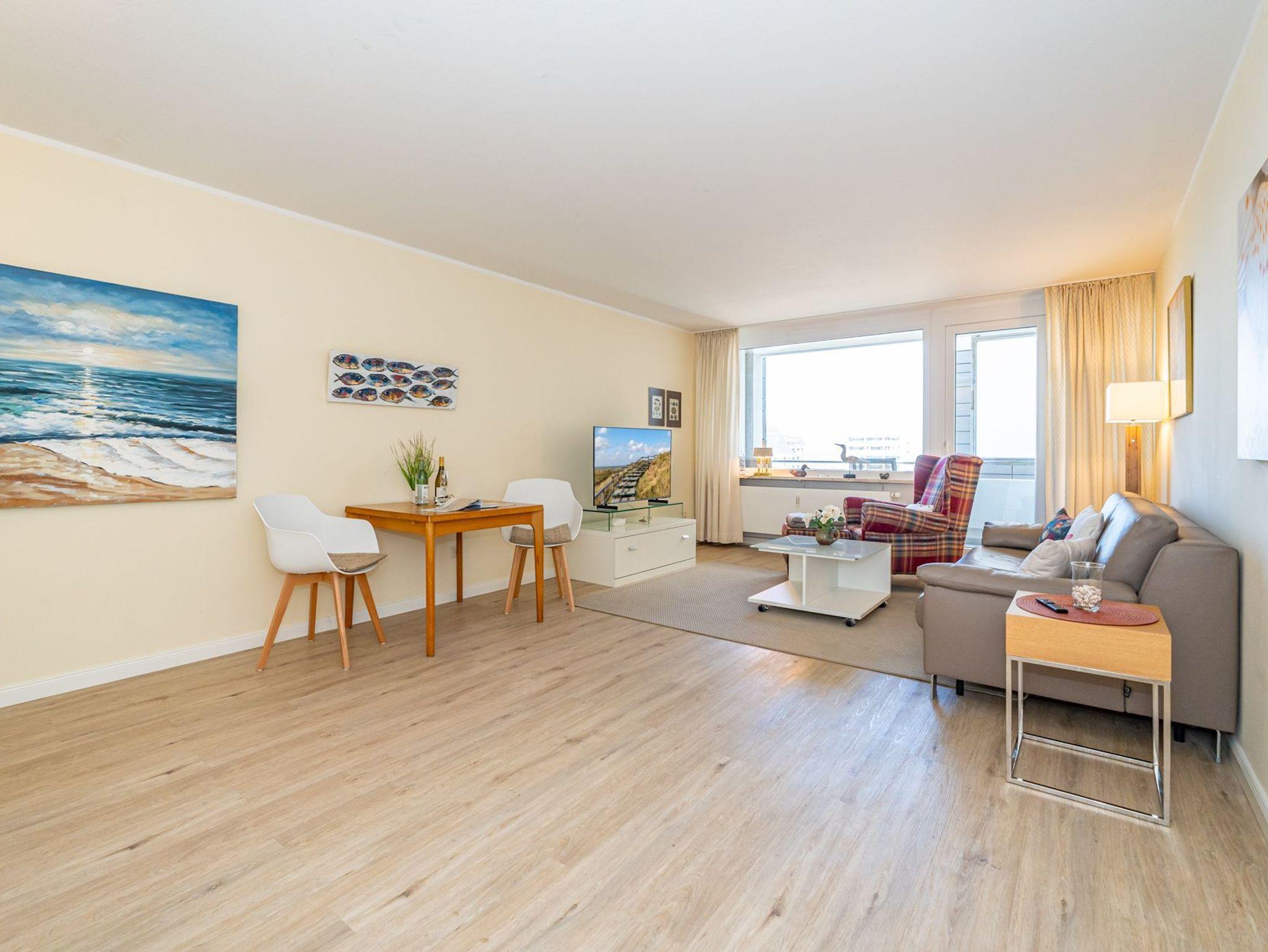 Geräumige, gemütliche 1-Zimmer-Nichtraucher-Ferienwohnung (ca. 40 qm) in der 4. Etage mit Nordloggia (mit Balkonmöbeln) für max. 2 Personen.