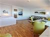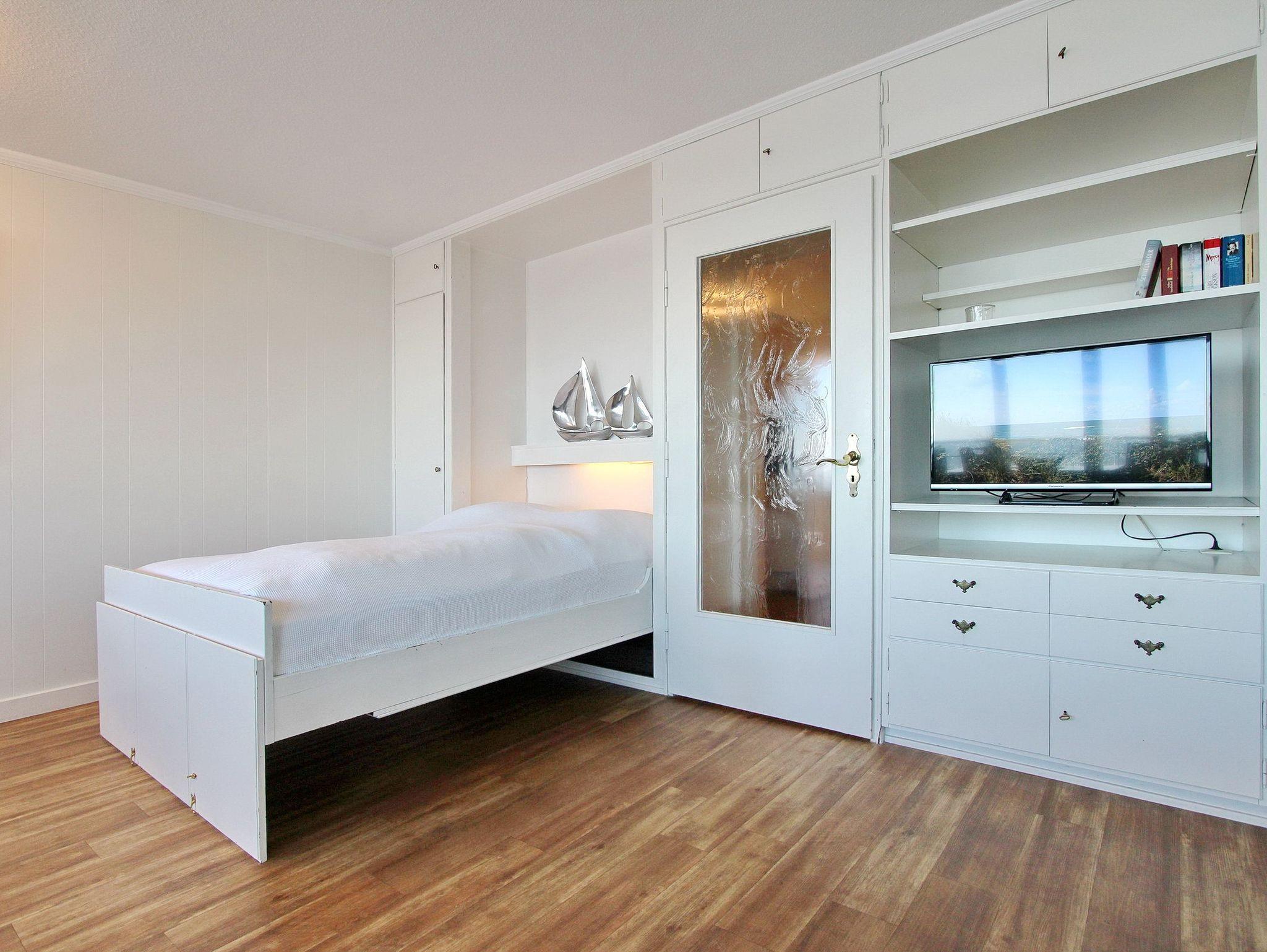Große Einzimmerwohnung im Haus Metropol in der 13. Etage mit Blick auf die Nordsee und die Promenade von Westerland. Auf dem Westbalkon befinden sich hochwertige Balkonmöbel der Firma Kettler. Der kombinierte Wohn-Schlafraum ist ausgestattet mit Laminatboden, einem Doppelschrankbett, einem Esstisch mit 3 Stühlen und einer großen Schlafcouch und einem Fernsehsessel. In der separaten Küche mit Geschirrspüler, Mikrowelle und Ceranfeld können sie sich selbst verpflegen. Das helle Badezimmer verfügt über eine große Dusche mit niedrigem Einstieg. Zur technischen Ausstattung gehört: ein Flachbildfernseher von Panasonic und ein Radio mit CD Player. Ein freies WLAN Netzwerk (WEG Haus Metropol - Passwortfrei - ohne Gewähr) steht ihnen kostenfrei zur Verfügung. Wohnungsgröße: ca. 56 m².