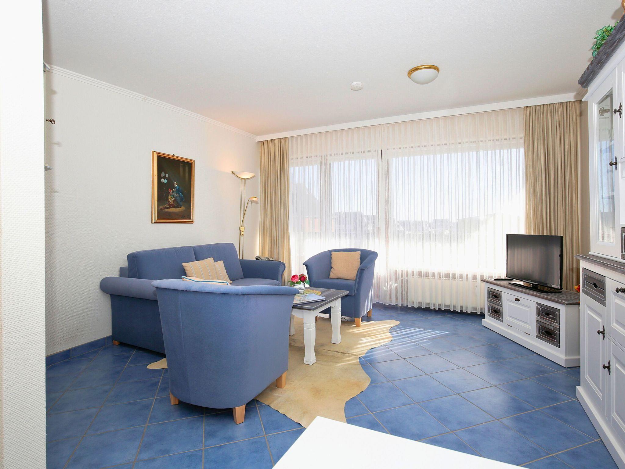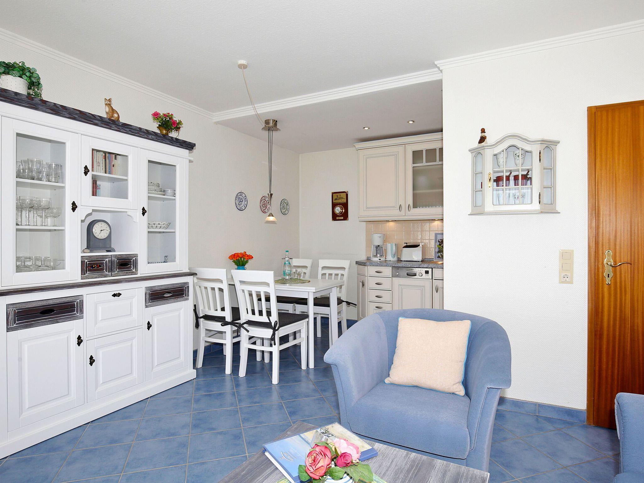 Erleben Sie entspannte Urlaubstage in dieser gemütlichen 2-Zimmer-Nichtraucher-Ferienwohnung mit ca. 48 m² Wohnfläche, ideal für maximal 4 Personen. Die Wohnung befindet sich in der 1. Etage zur Südseite und bietet einen großzügigen Südbalkon, der mit Balkonmöbeln und Auflagen ausgestattet ist und zum Verweilen in der Nachmittagssonne einlädt.