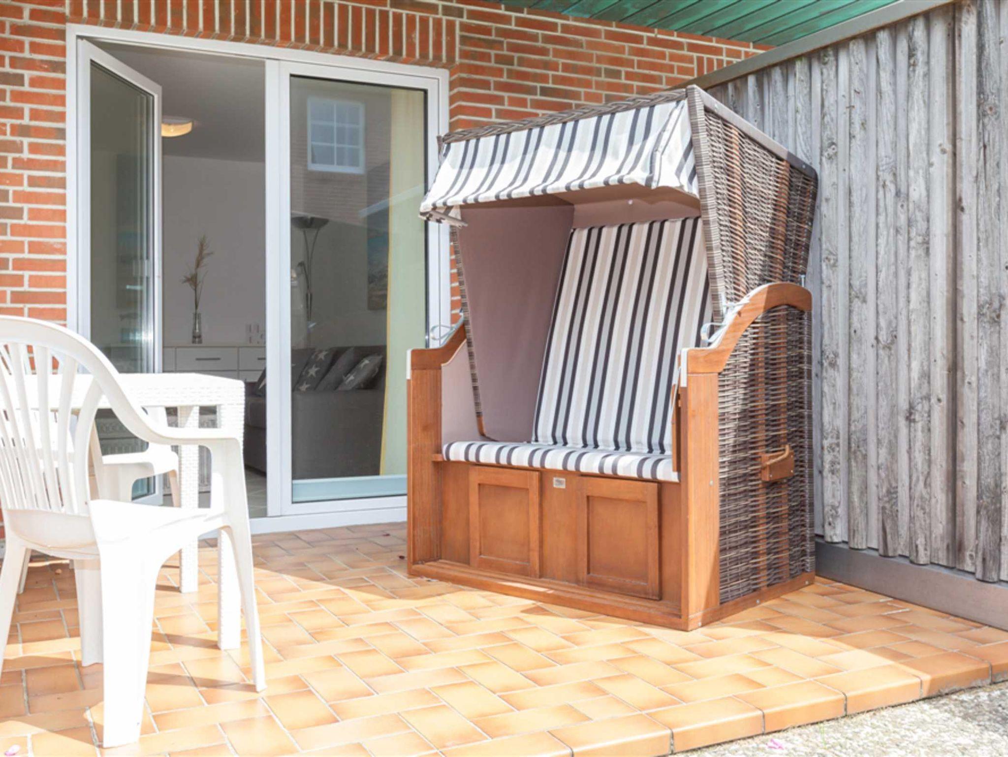 Ihre Unterkunft verfügt über einen kleinen Flur mit Garderobe, ein Duschbad/WC, einen großzügig gefliesten Wohnraum, eine neue Küchenzeile, eine Essecke und eine gemütliche Sofaecke mit großem Flat-TV. Vom Wohnzimmer aus gelangen Sie auch zur Süd-Terrasse, die mit Gartenmöbeln und Strandkorb eingerichtet ist. Das Schlafzimmer verfügt über ein Doppelbett und Außenjalousien.