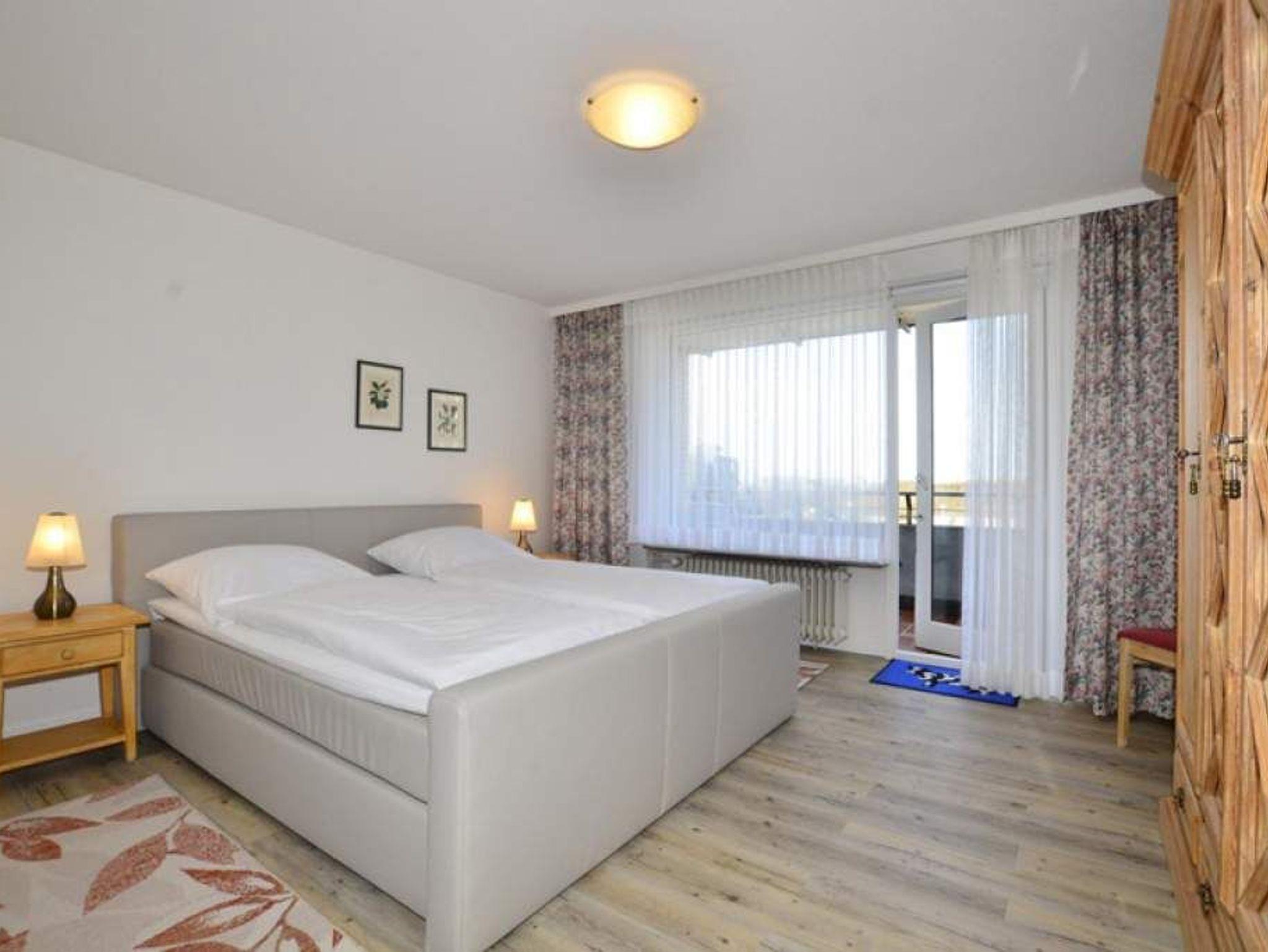 Komfortable 2-Zimmer-Nichtraucher-Ferienwohnung, ca. 65 qm in der 2.-ten Etage zur Seeseite mit 2 Westloggien (Nachmittagssonne, mit Balkonmöbeln und Auflagen) für max. 4 Personen.