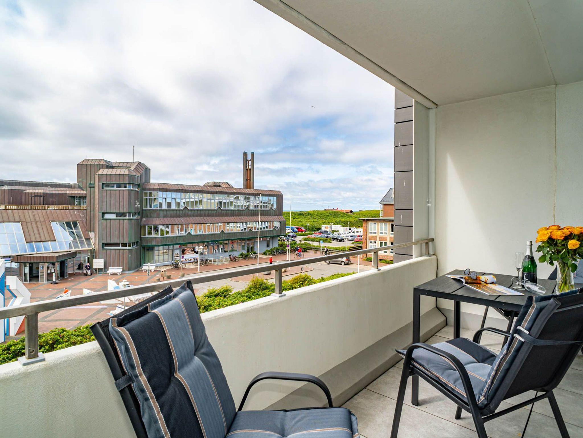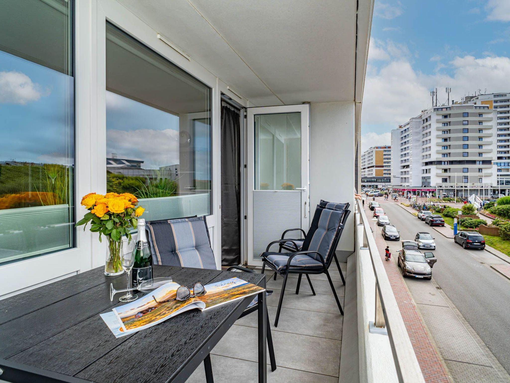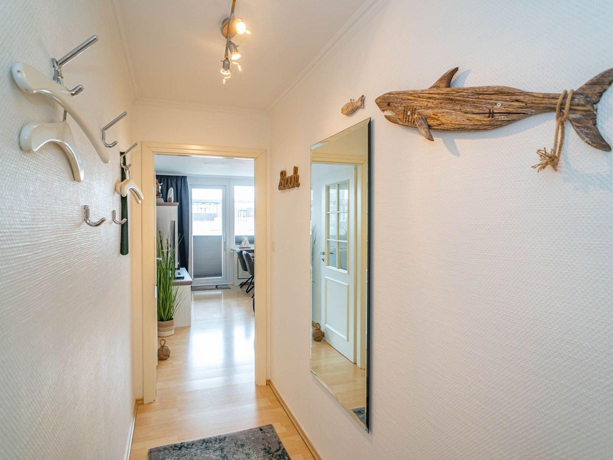 Entdecken Sie diese komplett renovierte, mit Laminat ausgelegte, gemütliche 2-Zimmer-Nichtraucher-Ferienwohnung (ca. 51 qm) in der 2. Etage zur Seeseite mit Westloggia (Nachmittagssonne, kleiner Meerblick, mit Balkonmöbeln für vier Personen und Auflagen).