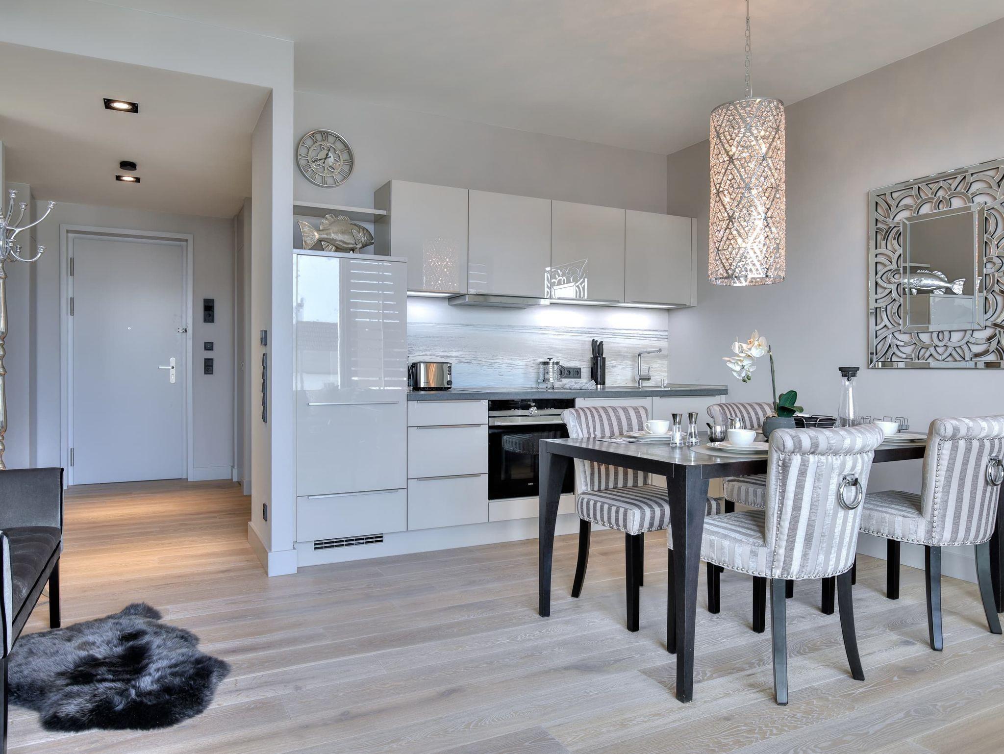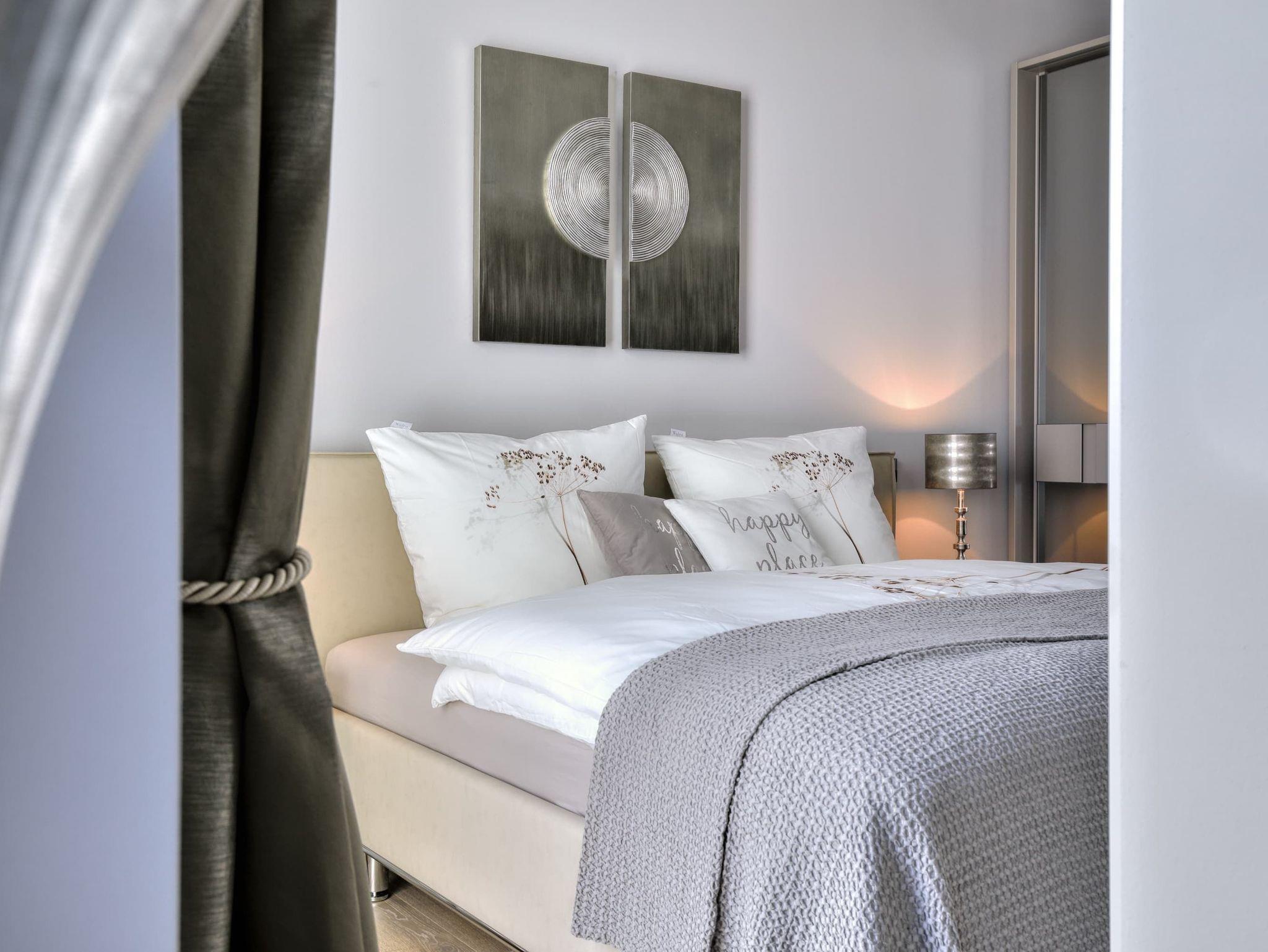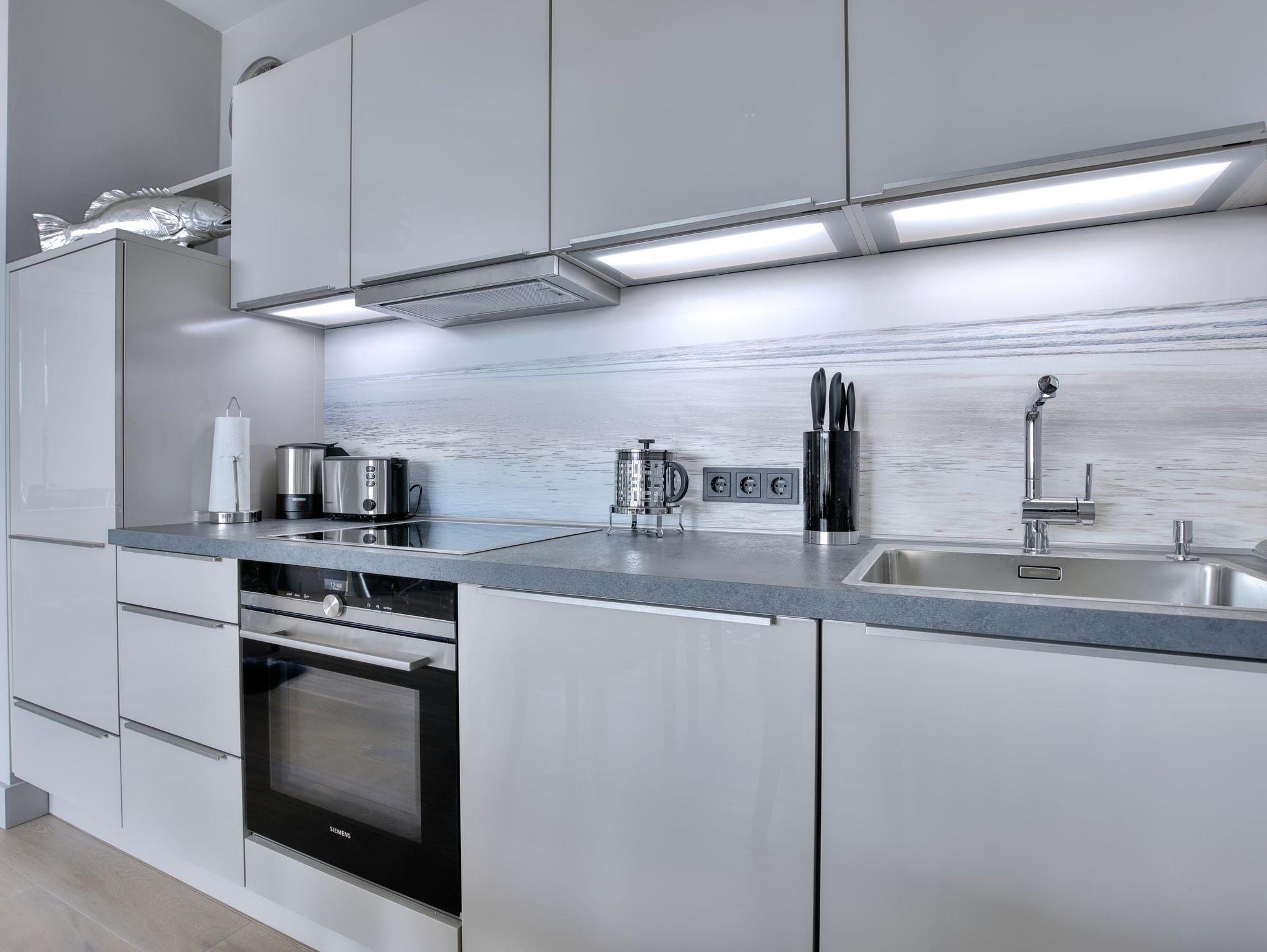 Luxusloft - Neue Mitte Westerland. Exklusive Ferienwohnung für 2 Personen lässt keine Wünsche offen. Die modern und stylish ausgestattete Wohnung befindet sich im zweiten Stock des Hauses Neue Mitte in Westerland, unweit des Strand und Zentrum von Westerland. Der Lichtdurchflutete Wohnraum mit seiner offenen Küche mit angrenzenden Wohn-Essbereich und Zugang zum großzügigen Balkon sind perfekt ausgestattet. Das Duschbad entspricht den Erwartungen an dieses stilvolle Quartier und verfügt gleichzeitig noch über einen Waschtrockner. Das separate Schlafzimmer verfügt über ein Doppelbett sowie Schiebetürenschrank und auch ein Fernseher ist geschickt integriert. Tiefgaragenstellplatz sowie Fahrradkeller sind vorhanden.