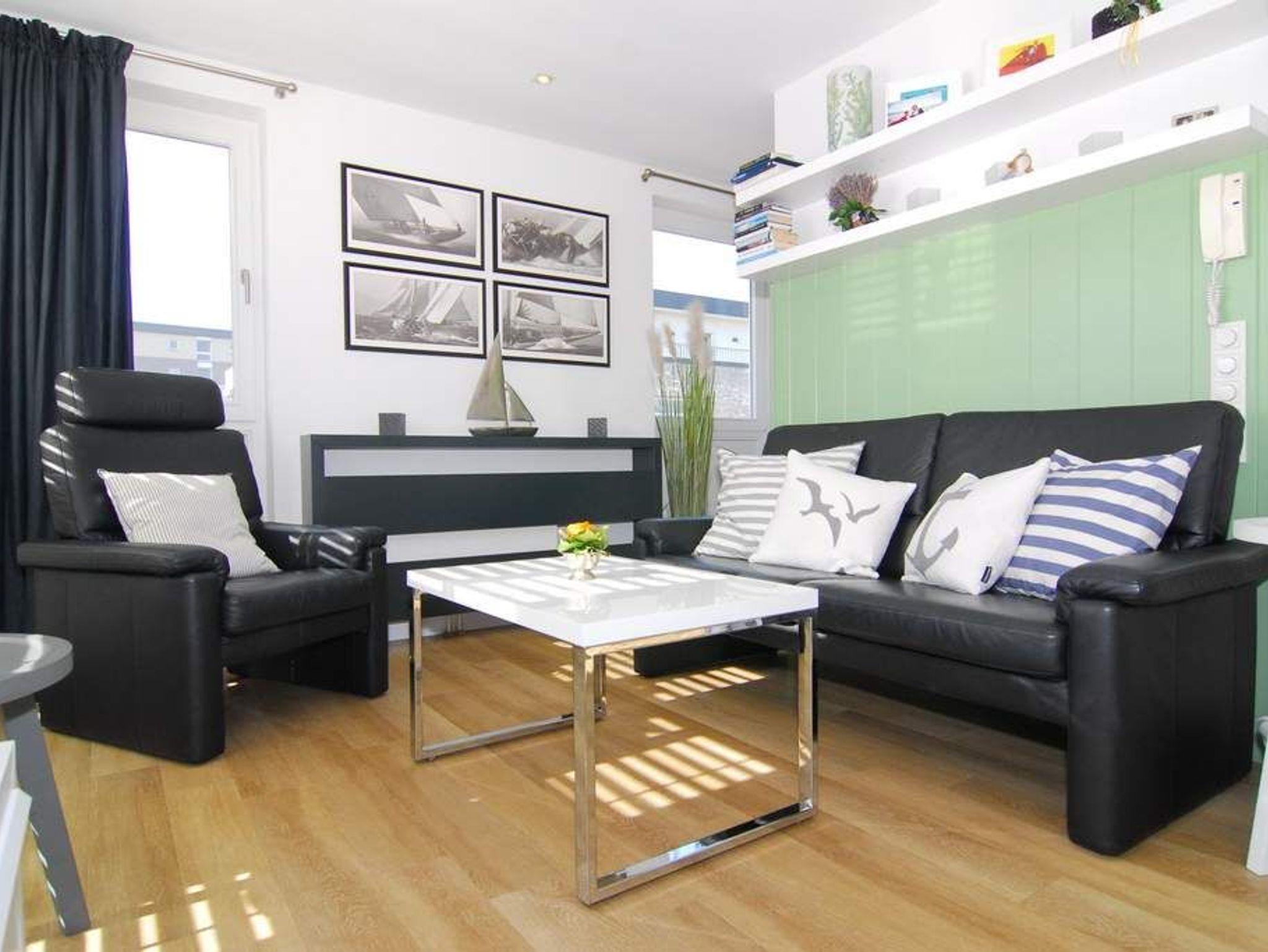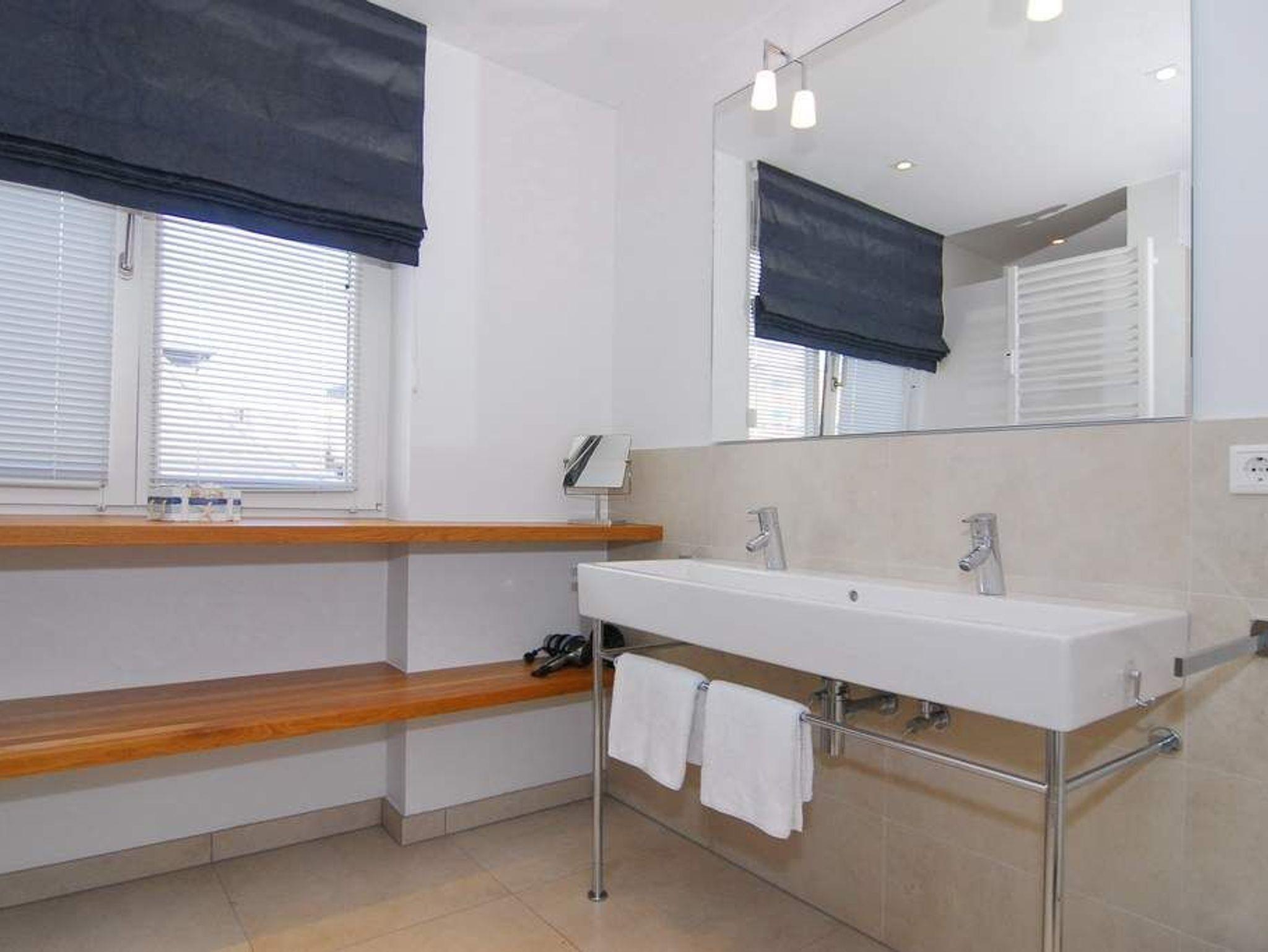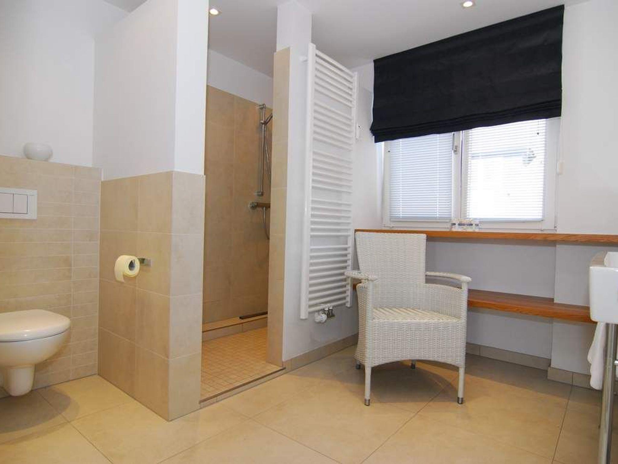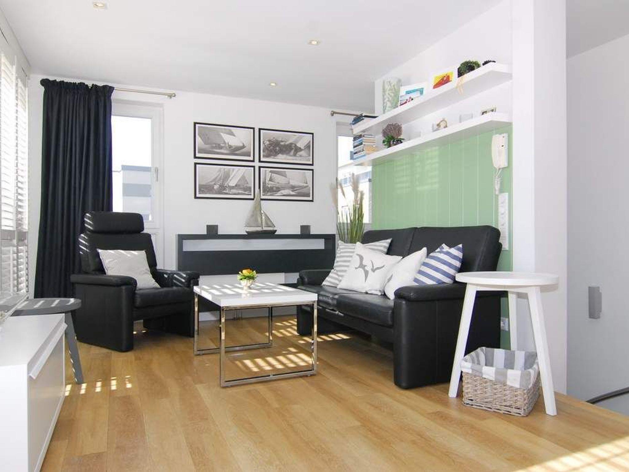 Exklusive 3-Zimmer-Ferienwohnung - Penthouse, 2. OG, ca. 90m², Nichtraucher, Wohnzimmer mit Couch, Sessel, Esstisch mit Eckbank und 2 Rattanstühlen, Flat-TV, WLAN (ohne Gewähr), Musikanlage, offene Küche mit Geschirrspüler, Mikrowelle und Backofen, Zugang zur Südterrasse, 1 Schlafzimmer mit Doppelbett, Einbauschrank und Flat-TV und Zugang zur Terrasse, 1 Schlafzimmer mit Etagenbetten (Matratzen 1x2m) Einbauschrank und Flat-TV, 1 großes Duschbad / WC, 1 Gäste-WC, Flur mit Garderobe, Abseite mit Waschmaschine, Pkw-Stellplatz am Haus. Tierhaltung ist nicht gestattet. Bettwäsche und Handtücher sind zur Anreise aufgezogen. Auf dem östlich angrenzenden Nachbargrundstück entsteht ein Neubauvorhaben mit Baubeginn Juli 2024 - geplante Fertigstellung Winter 2026. Hier kann es zu Lärmbelästigung kommen.