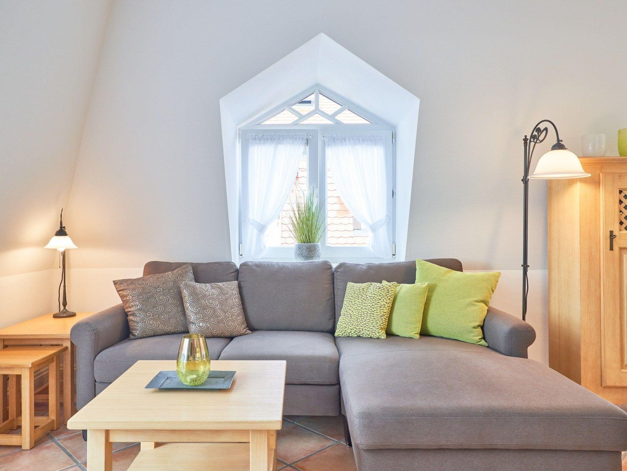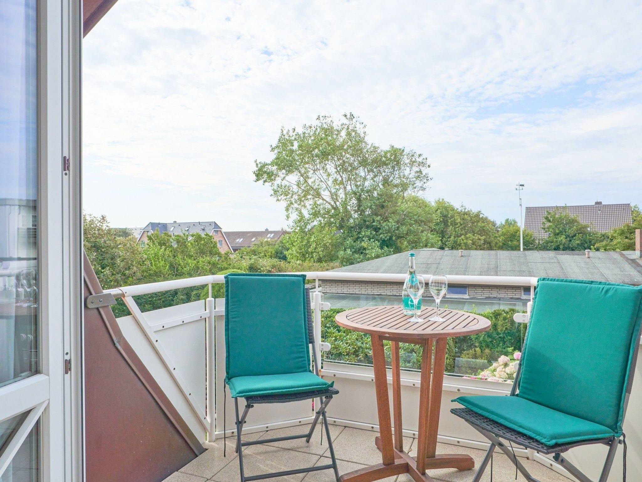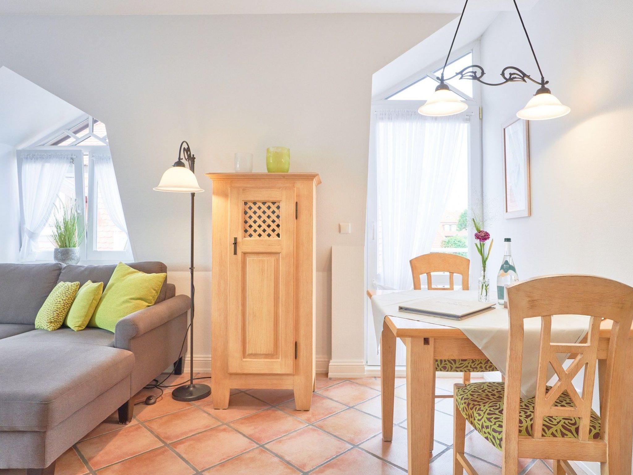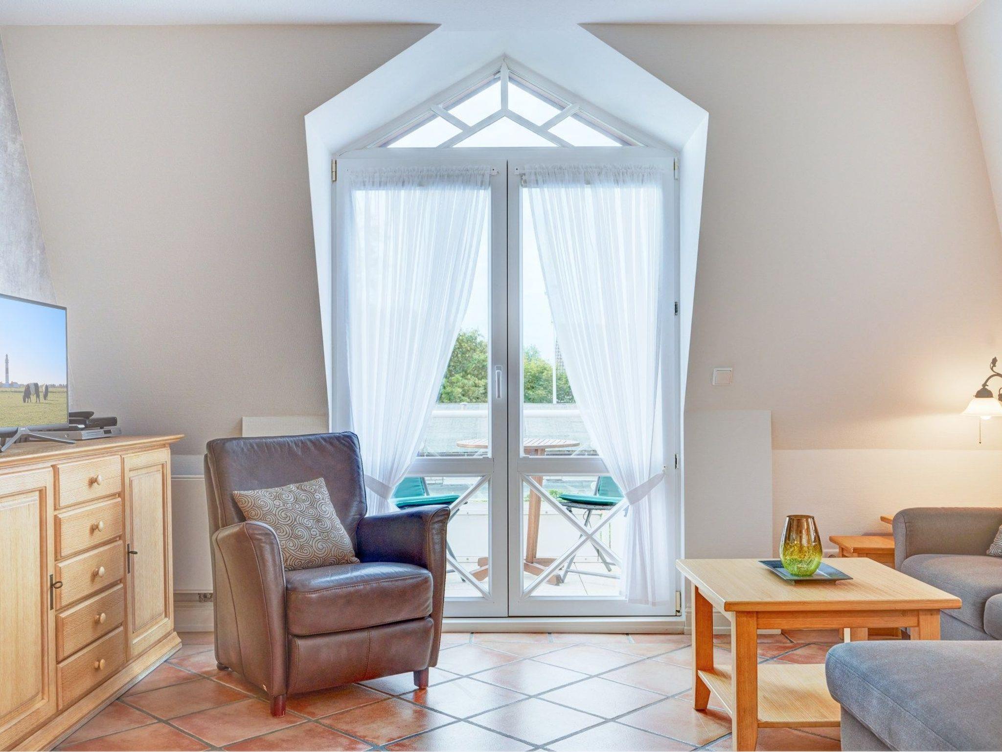 In dieser Ferienwohnung handelt es sich um eine Ferienwohnung für 2 Personen im 1. OG. Auf ca. 43 qm verteilen sich Wohnzimmer mit geräumiger, integrierter Küche und Essplatz. Sie haben von hier aus Zugang zu zwei Balkonen. Das Badezimmer präsentiert sich modern und in hellen Farben mit Dusche, Toilette und Waschbecken. Ebenfalls hier zu finden ist das gemütliche Schlafzimmer mit Doppelbett.