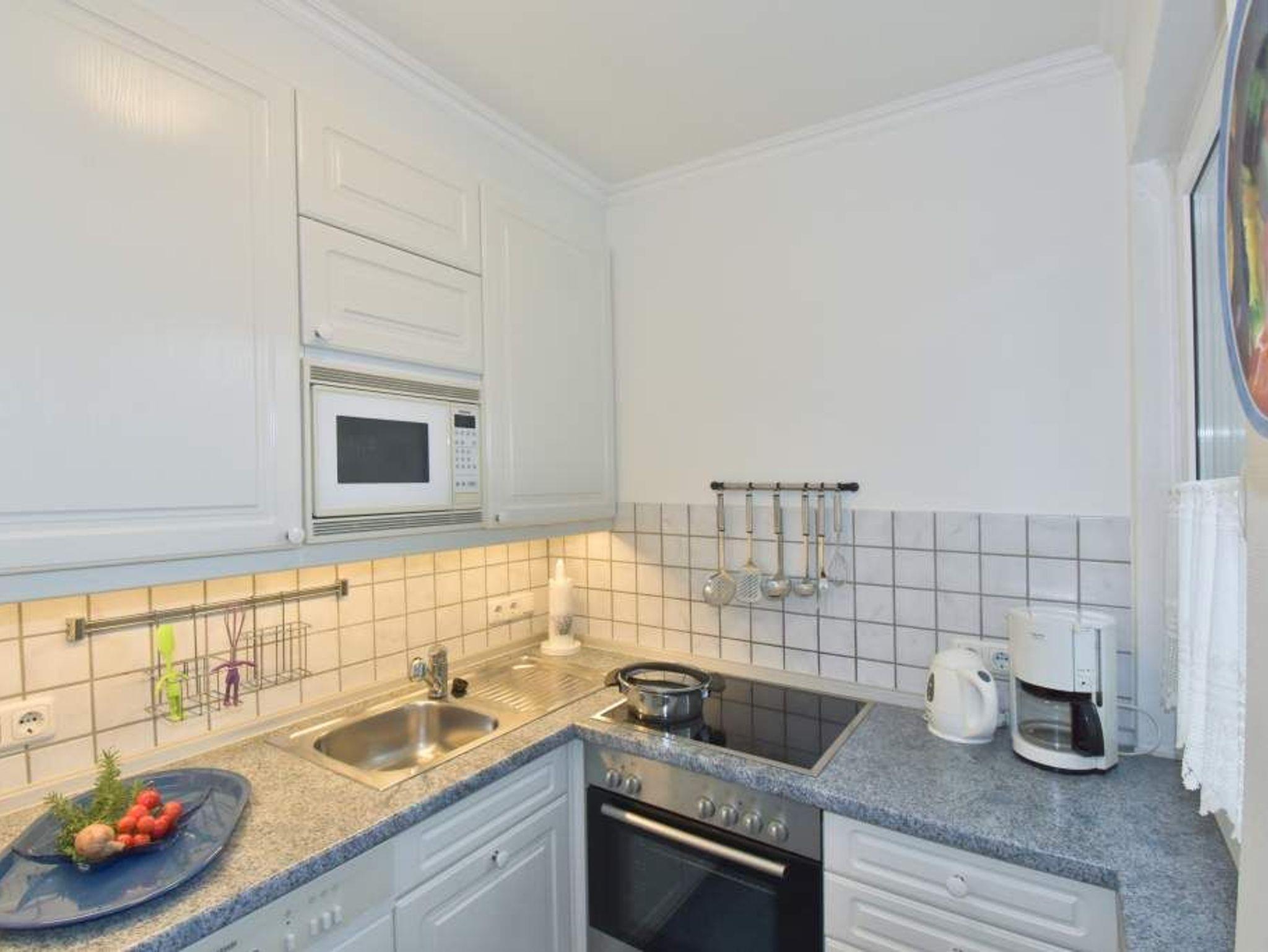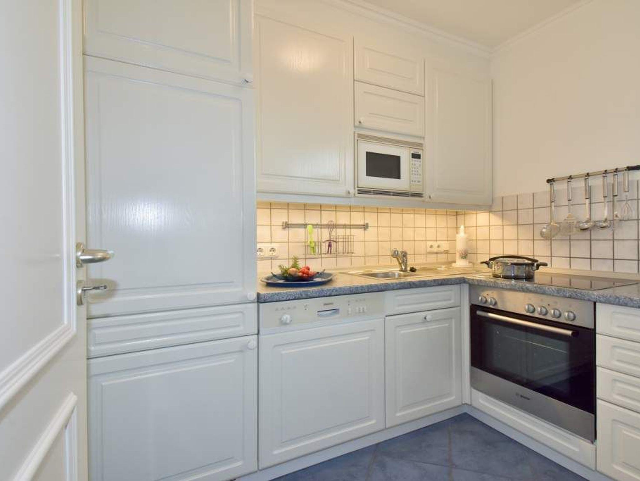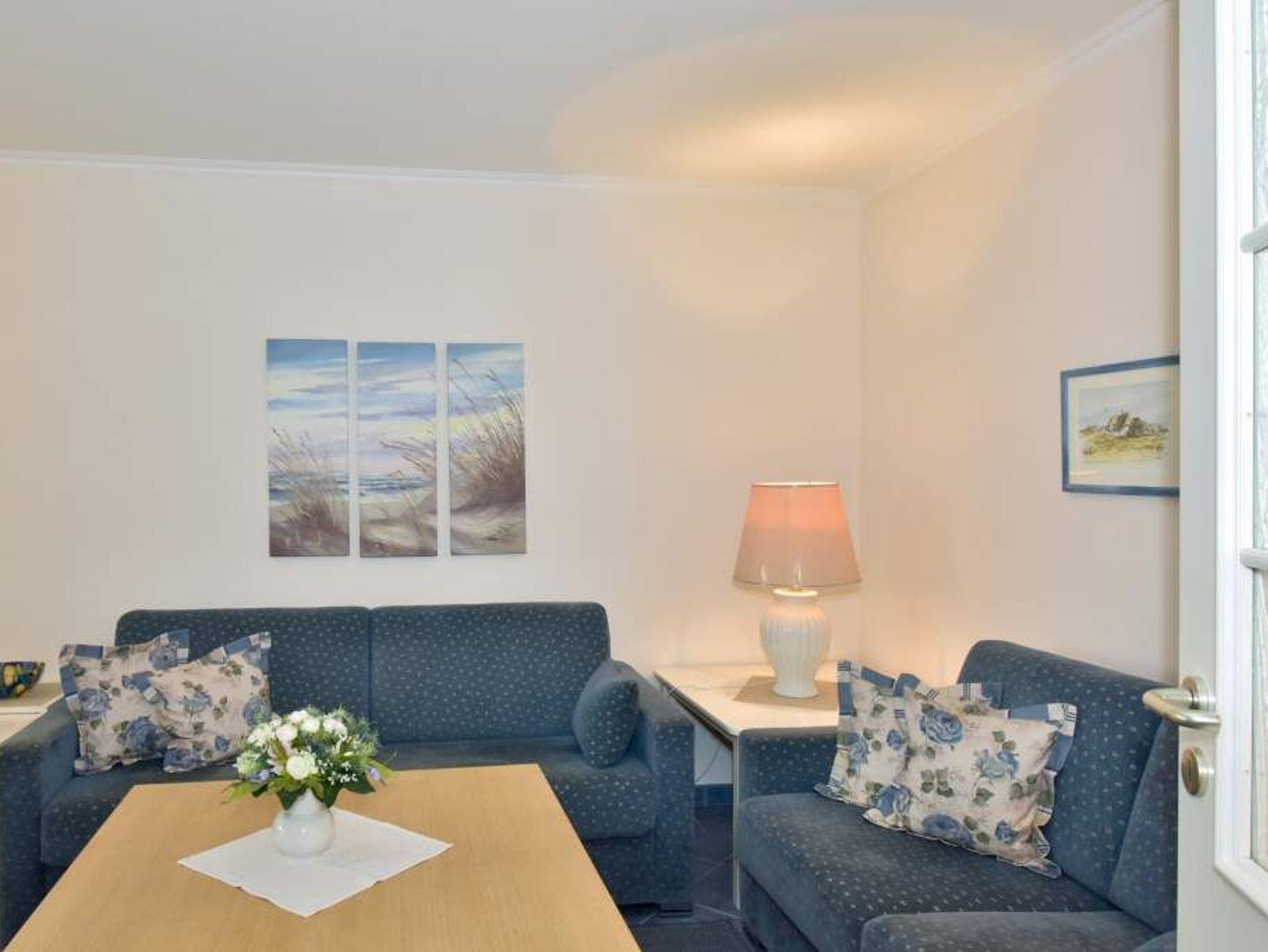 Komfortabel ausgestattete 2-Zimmer-Nichtraucher-Ferienwohnung, ca. 48 qm Hochparterre, (vergleichbar mit 1. Etage) zur Westseite. Schlafzimmer mit 2 Einzelbetten, Wohnzimmer mit Doppelschlafcouch (ca. 170x200 cm), Essplatz, Kabel-Flachbild-TV, Telefon mit Telefonflatrate ins deutsche Festnetz, WLan, großzügiger Westbalkon, Küche mit Geschirrspüler, Backofen und Ceranfeld, Kaffeemaschine, Wasserkocher und Toaster gehören zur Grundausstattung, Duschbad/WC.