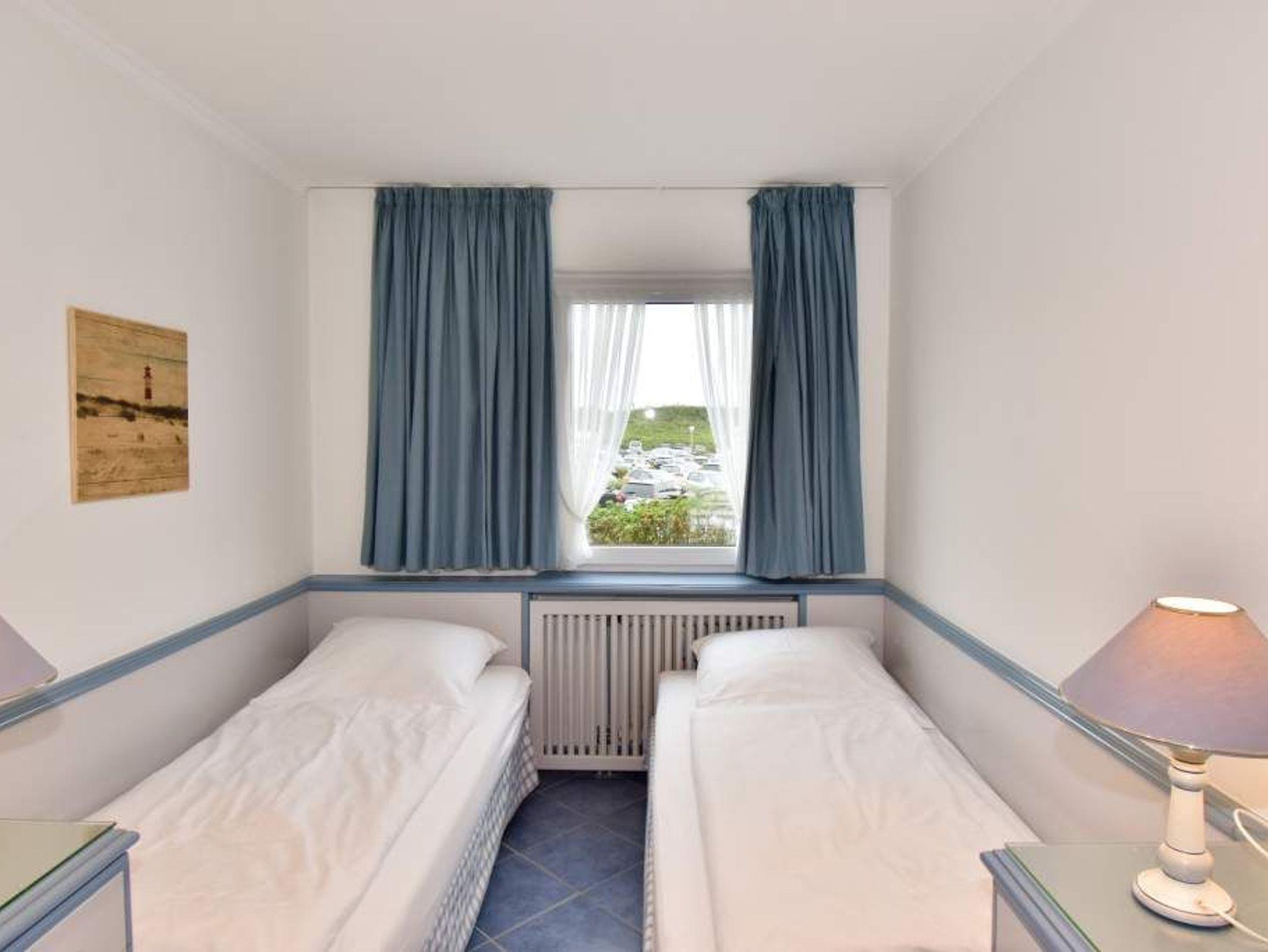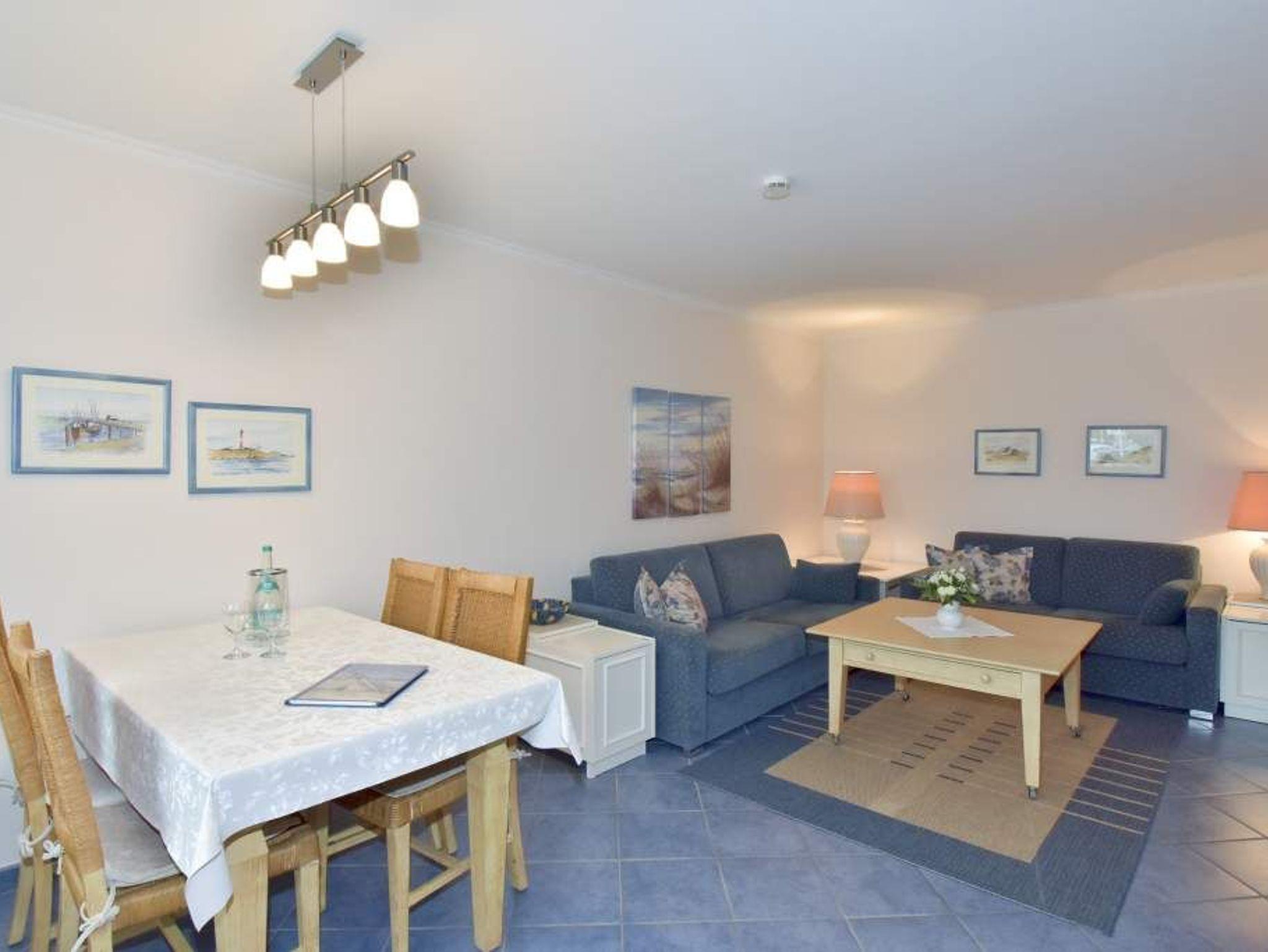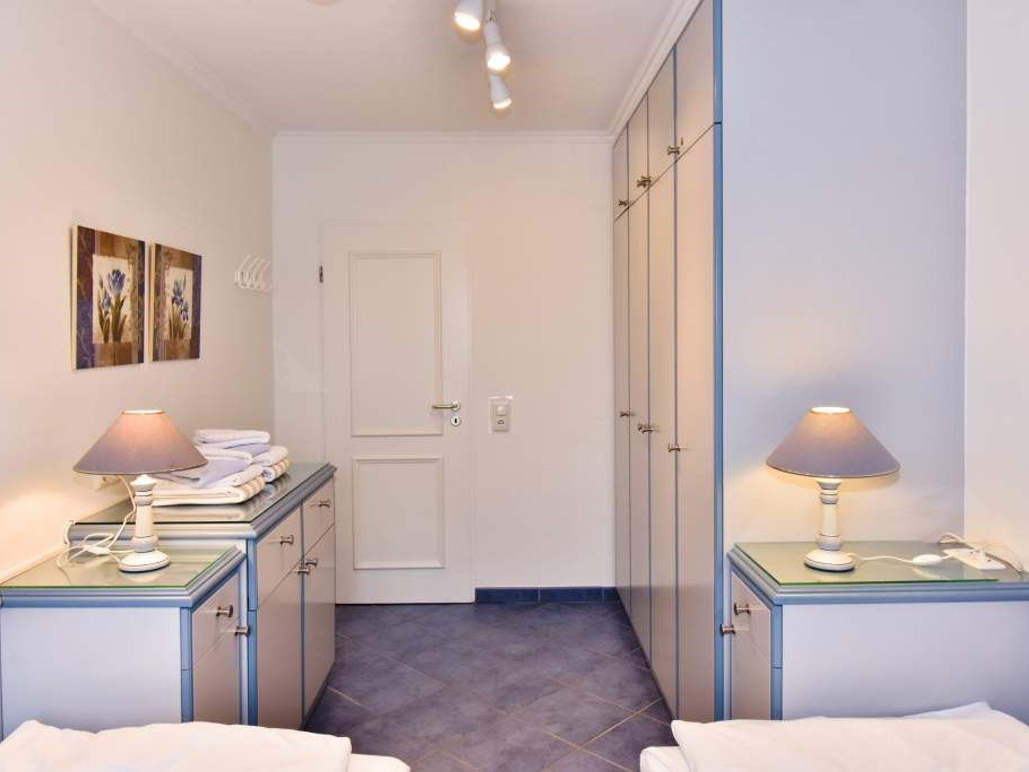 Komfortabel ausgestattete 2-Zimmer-Nichtraucher-Ferienwohnung, ca. 48 qm Hochparterre, (vergleichbar mit 1. Etage) zur Westseite. Schlafzimmer mit 2 Einzelbetten, Wohnzimmer mit Doppelschlafcouch (ca. 170x200 cm), Essplatz, Kabel-Flachbild-TV, Telefon mit Telefonflatrate ins deutsche Festnetz, WLan, großzügiger Westbalkon, Küche mit Geschirrspüler, Backofen und Ceranfeld, Kaffeemaschine, Wasserkocher und Toaster gehören zur Grundausstattung, Duschbad/WC.