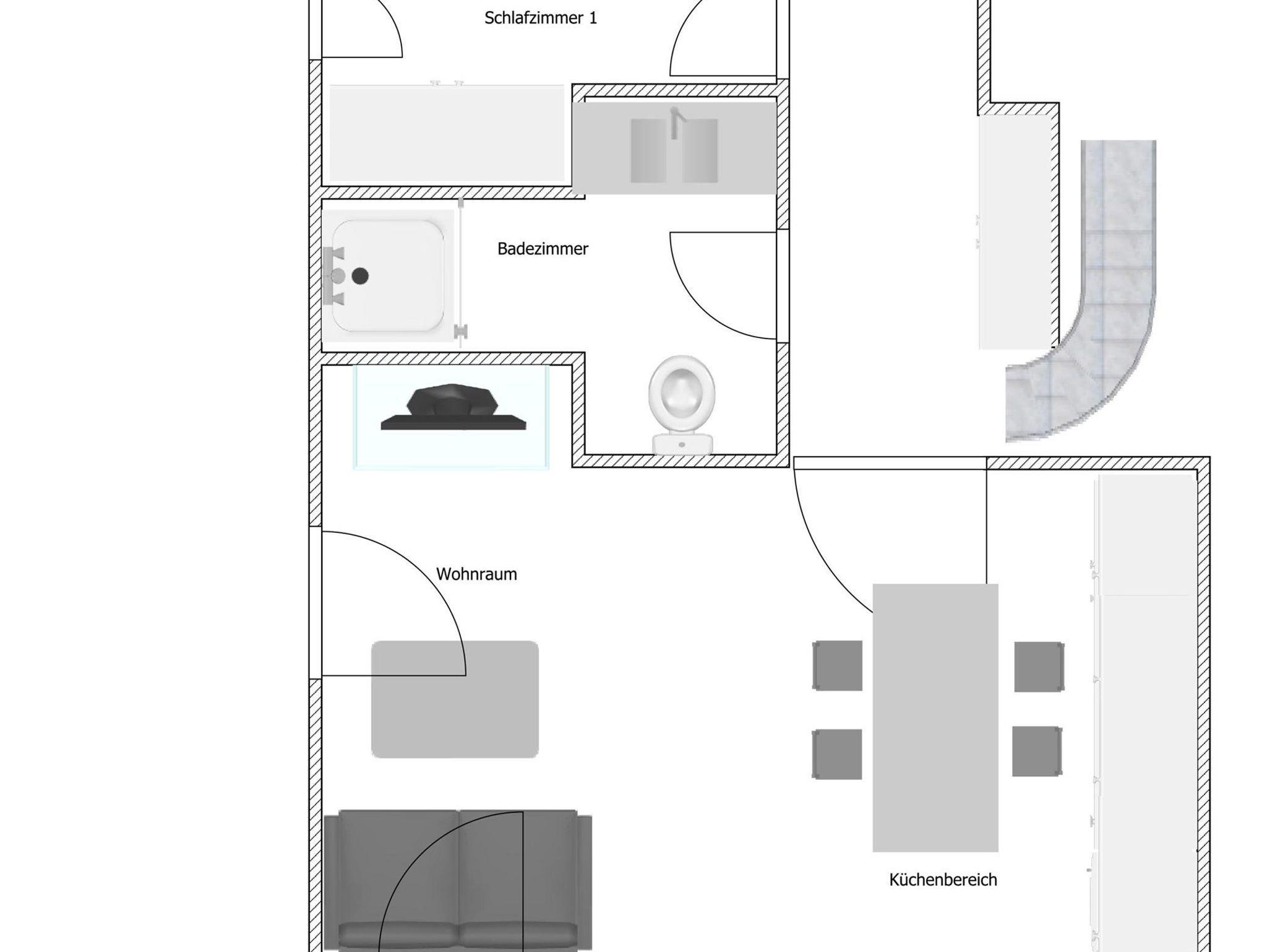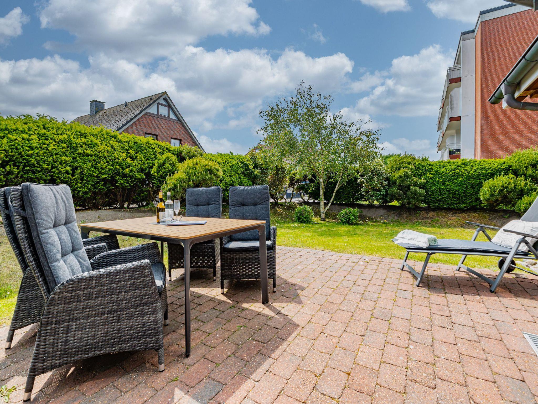 Hochwertig ausgestattete 2,5-Zimmer-Ferienwohnung mit ca. 55 qm zur Südseite mit möblierter Terrasse (mit Balkonmöbeln, Auflagen und Sonnenschirm) für bis zu 4 Personen.
