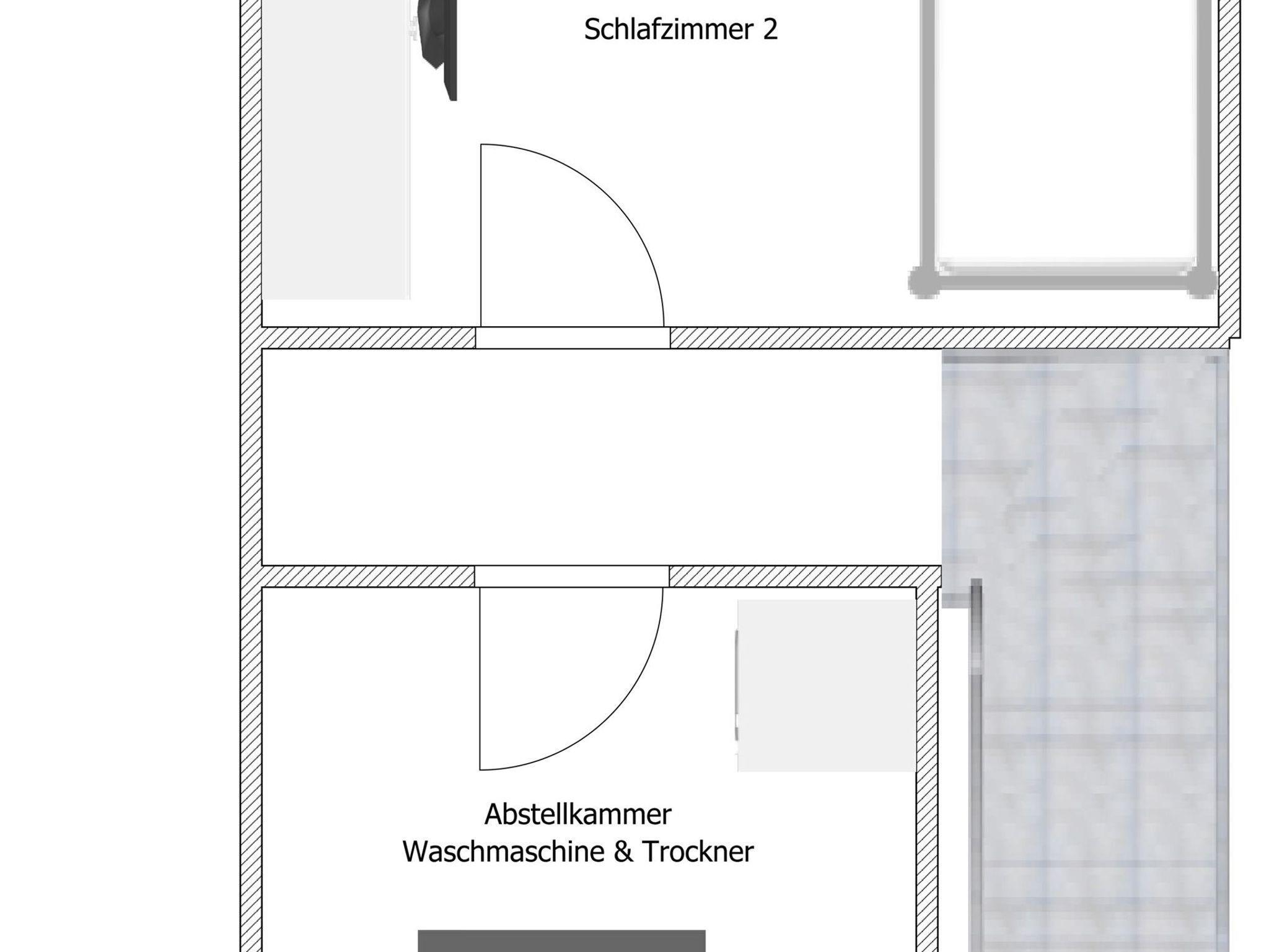 Das 2. Schlafzimmer hat ein Einzelbett (mit hochwertiger Matratze in 100x200) und ein separaten Abstellraum.