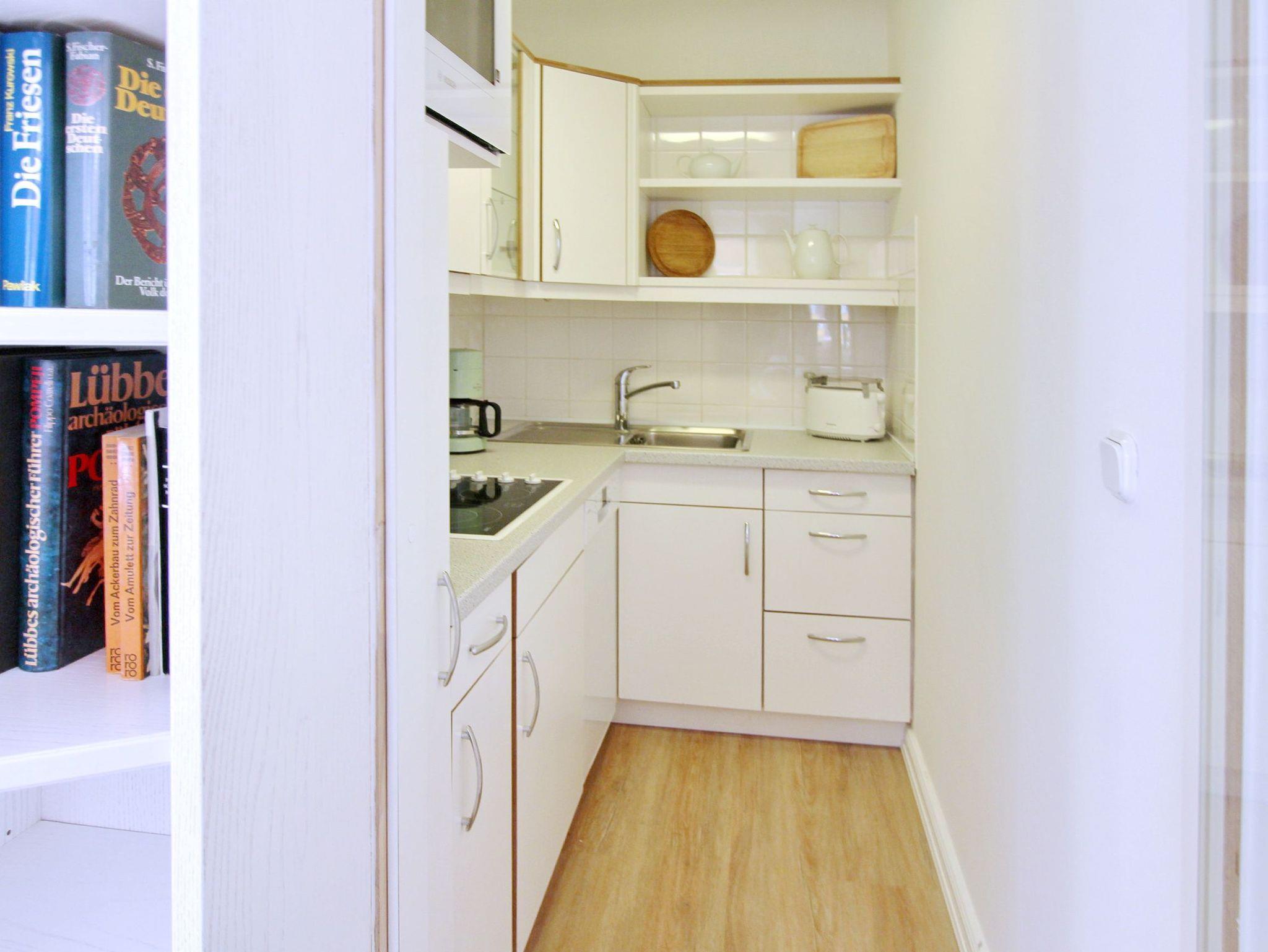 Einzimmerwohnung in der 1. Etage im Haus Undine in unmittelbarer Strandnähe. Nur wenige Gehminuten von der Promenade und der Nordsee entfernt. Der kombinierte Wohn-Schlafraum mit Balkon zur Südseite ist ausgestattet mit einem Schlafsofa und einem Essplatz am Fenster mit 2 Rattansesseln. Um sich selbst zu verpflegen gibt es eine offene Küchenzeile im Wohnbereich mit Ceranfeld, Geschirrspüler und Backofen. Das moderne, helle Badezimmer hat eine besonders große Dusche mit einem flachen Einstieg. Zur technischen Ausstattung gehört: ein Flachbildfernseher und ein Radio. Der Eigentümer verfügt über einen eigenen Internetanschluss (Zugangsdaten in der Wohnung) den Sie kostenfrei nutzen können. Wohnungsgröße: ca. 38 m².