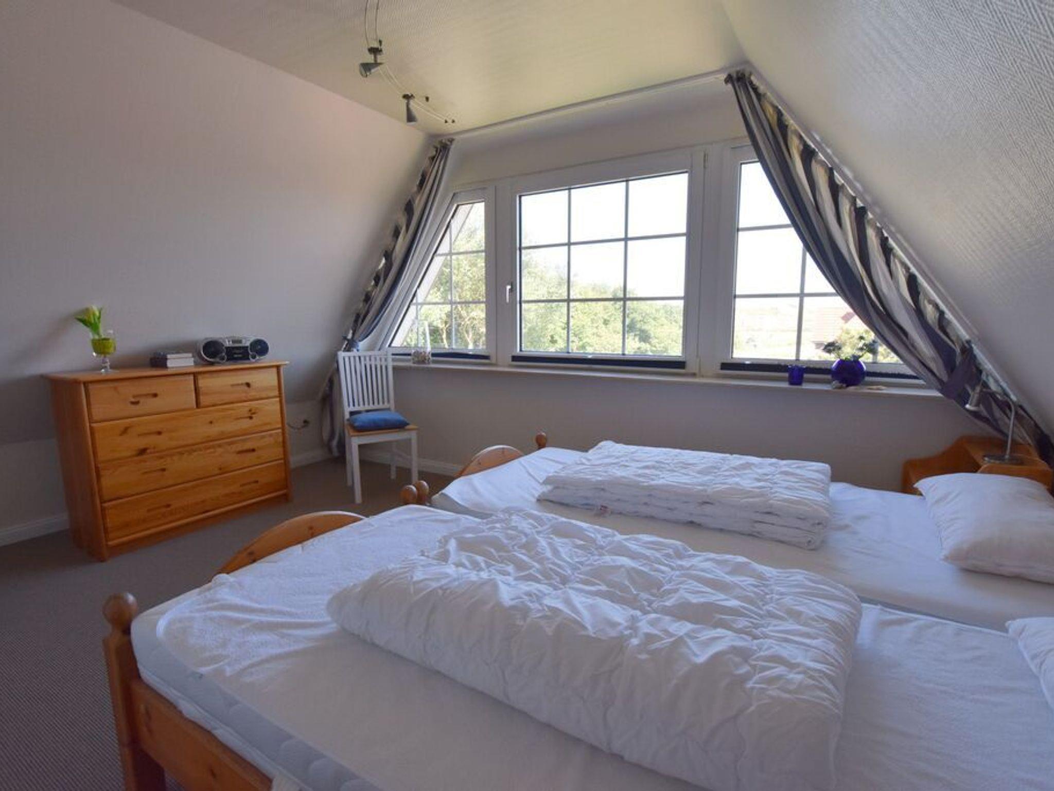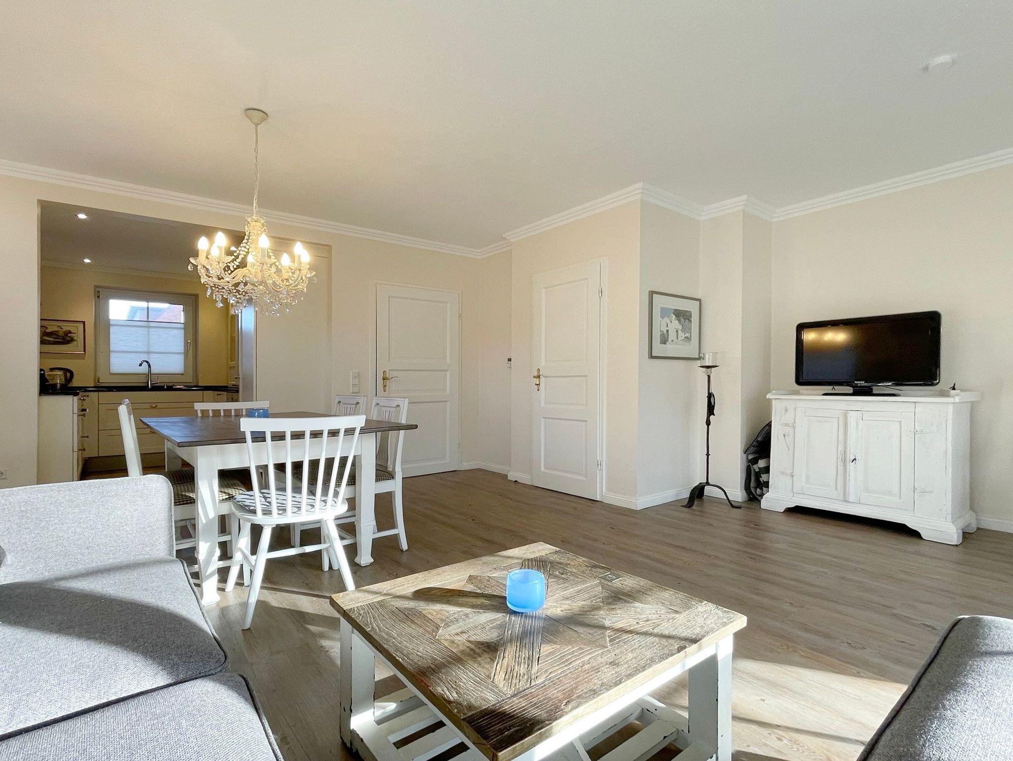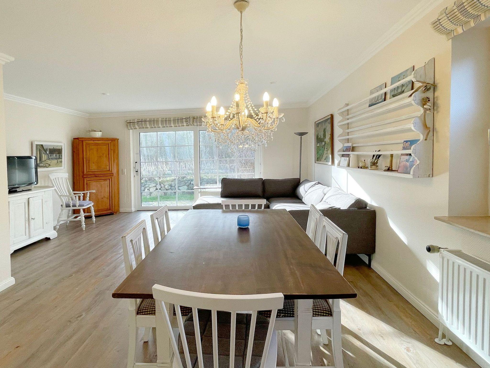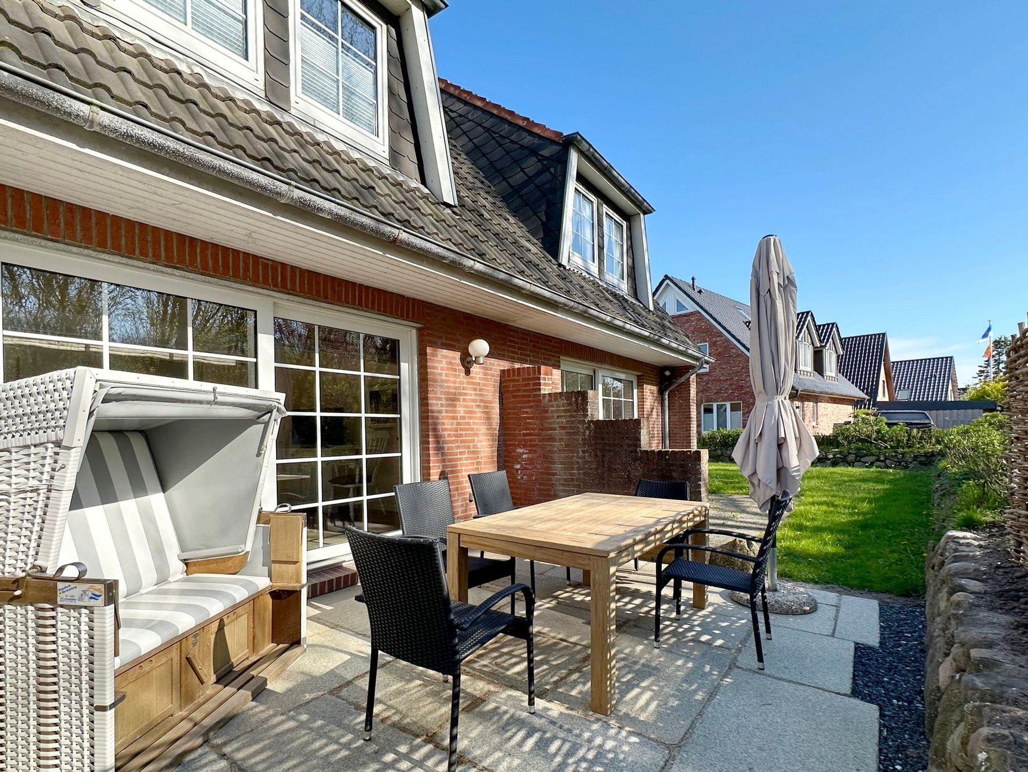 ir freuen uns Ihnen mitteilen zu können, dass ab sofort eine Doppelhaushälfte in Strandnähe am Süd-Wäldchen zur Verfügung steht. Im Erdgeschoss befinden sich das Wohnzimmer mit offener Küche und Zugang zur möblierten West-Terrasse, ein Flur sowie ein Gäste-WC ( mit Duschmöglichkeit ). Im Obergeschoss befinden sich ein Schlafzimmer mit Doppelbett, Kleiderschrank und Flachbildfernseher, ein zweites Schlafzimmer mit zwei Einzelbetten, Kleiderschrank und Fernseher sowie ein modernes Badezimmer mit Dusche.
