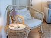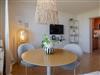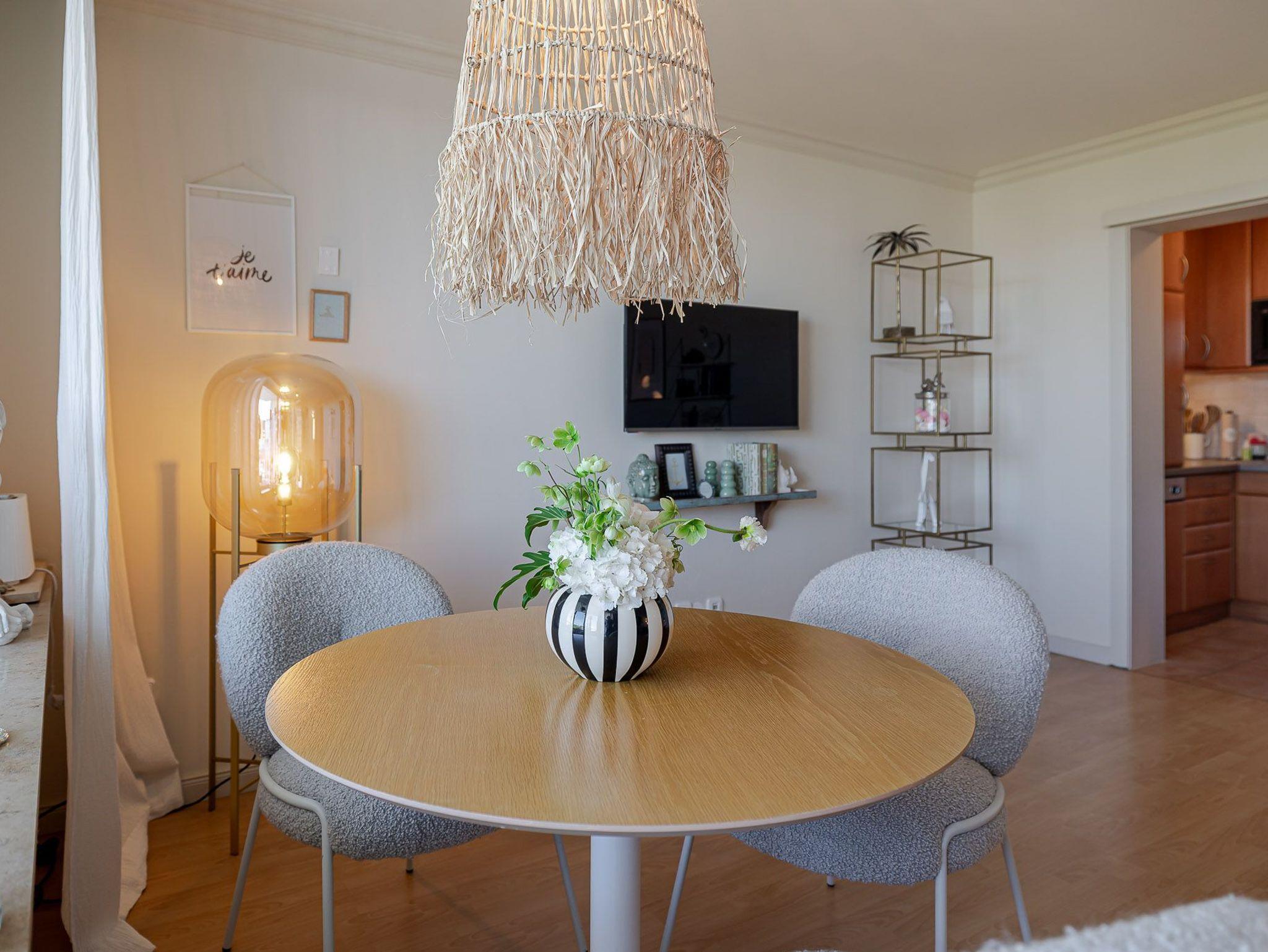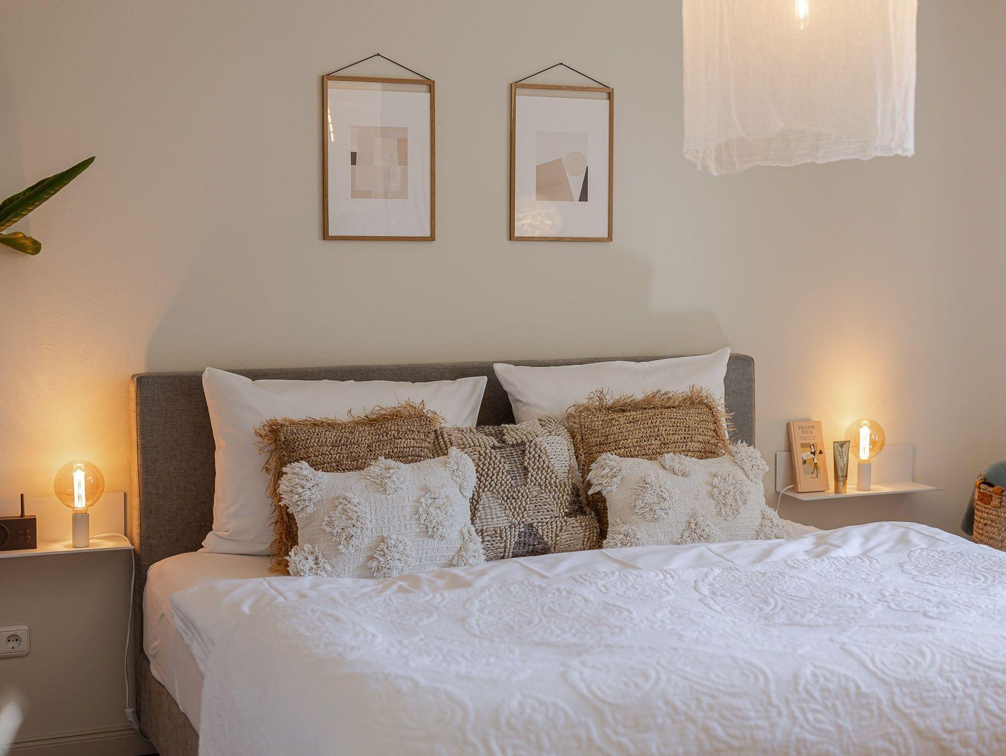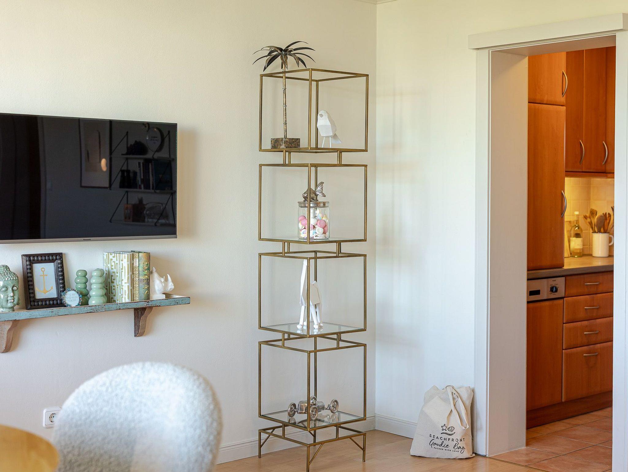 Mit einer großzügigen Wohnfläche von rund 54 m² bietet die Wohnung Platz für 2 Personen und ein Kleinkind. Sie befindet sich im zweiten Stock des Hauses und ist der ideale Ort für eine entspannte Auszeit auf der Insel. Der offene Wohnbereich ist lichtdurchflutet und wurde mit hochwertigen Möbeln ausgestattet, darunter stilvolle und kuschelige Esszimmerstühle von Freifrau sowie eine wertige Couch, die als Schlafcouch genutzt werden kann. Der Bereich ist perfekt für gemütliche Stunden und entspanntes Zusammensitzen.