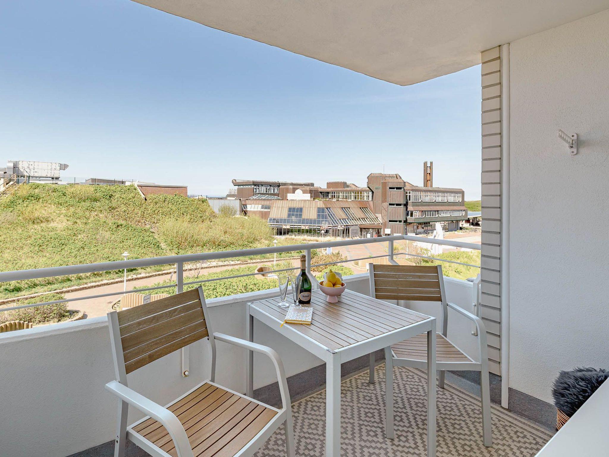 Verbringen Sie entspannte Stunden auf dem Westbalkon der Ferienwohnung und genießen Sie den kleinen Meerblick. Hier können Sie sich zurücklehnen und den Blick auf das Meer und die Umgebung schweifen lassen.