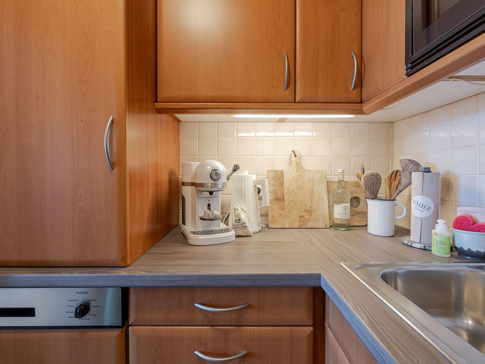 Die separate Küche lässt keine Wünsche offen. Sie ist mit funktionalen Geräten, darunter ein Geschirrspüler, liebevoll ausgewähltem Equipment ausgestattet und bietet alles, was Sie für die Zubereitung von Mahlzeiten benötigen.