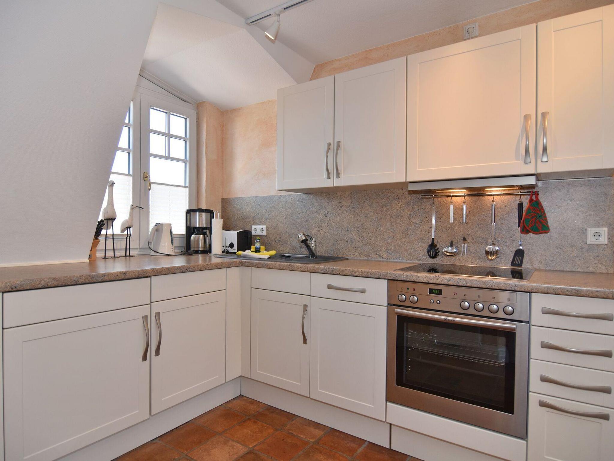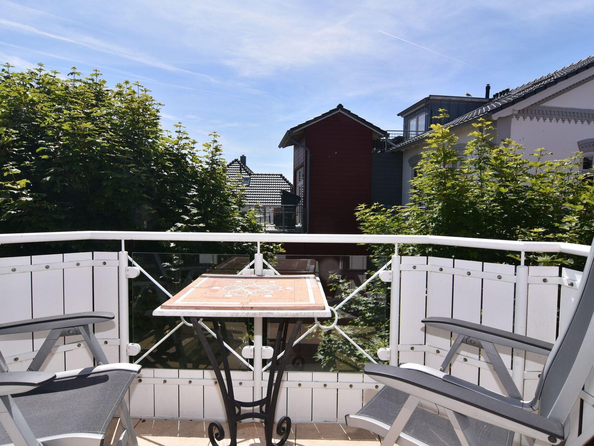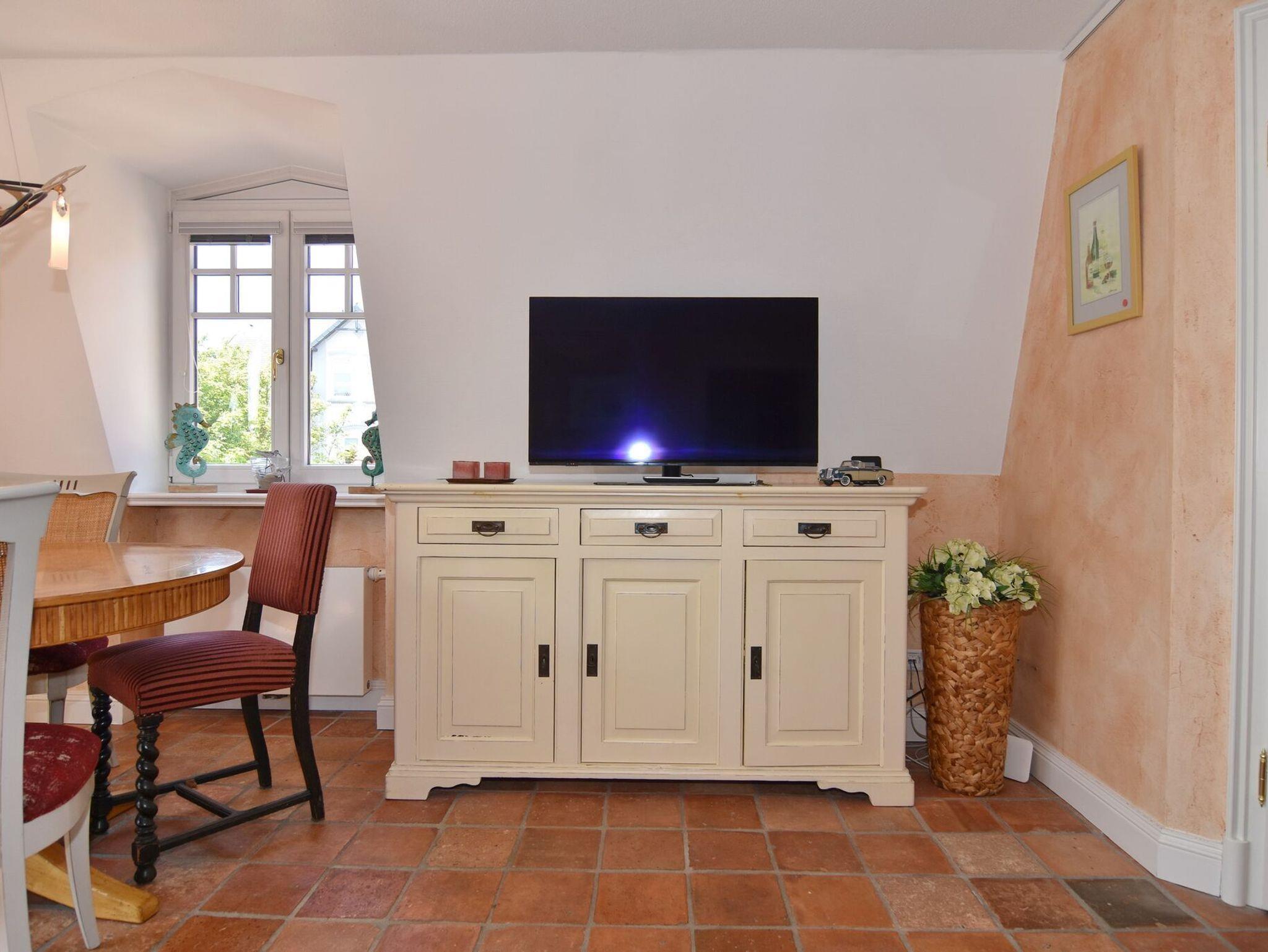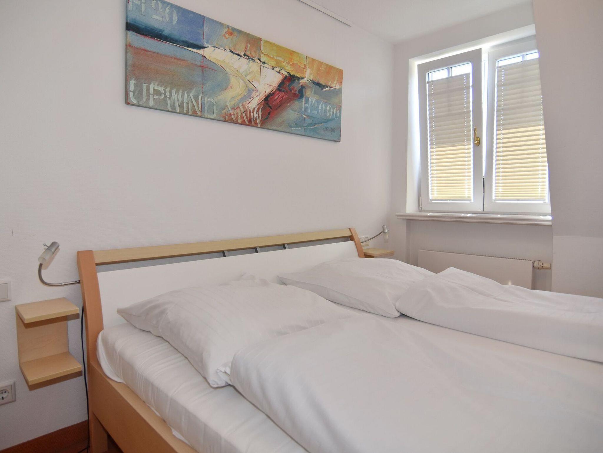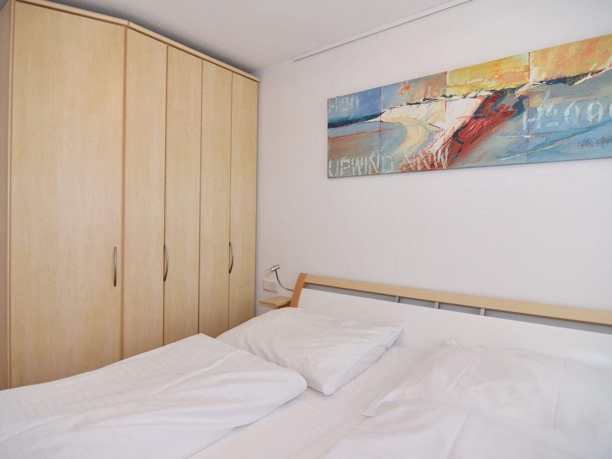 Helle 2 Zimmer-Ferienwohnung mit Südbalkon. Nichtraucher. Ca. 50m², 2. OG. Wohnraum mit Couch und Essplatz, Flat-TV ( Hotelmodus und internetfähig, Programmübersicht liegt im App., Programme sind nicht verstellbar ), Südbalkon mit Balkonmöbeln (Tischplatte liegt nur auf, Tisch darf nicht verrückt werden), offene Küche mit Backofen und Geschirrspüler, Duschbad/WC, Schlafzimmer mit Doppelbett (2 Matratzen) und Schrank. PKW-Stellplatz Nr. 9. Tierhaltung verboten. Im Haus: Sauna und Ruheraum (gegen Gebühr). Bettwäsche und Handtücher sind zur Anreise aufgezogen.