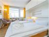 Der gemütliche Wohn-/Schlafraum mit Designerboden in Holzoptik besteht aus zwei Sessel, einem Essplatz, einem Doppelschrankbett (einzeln ausklappbar), Kabel-TV.