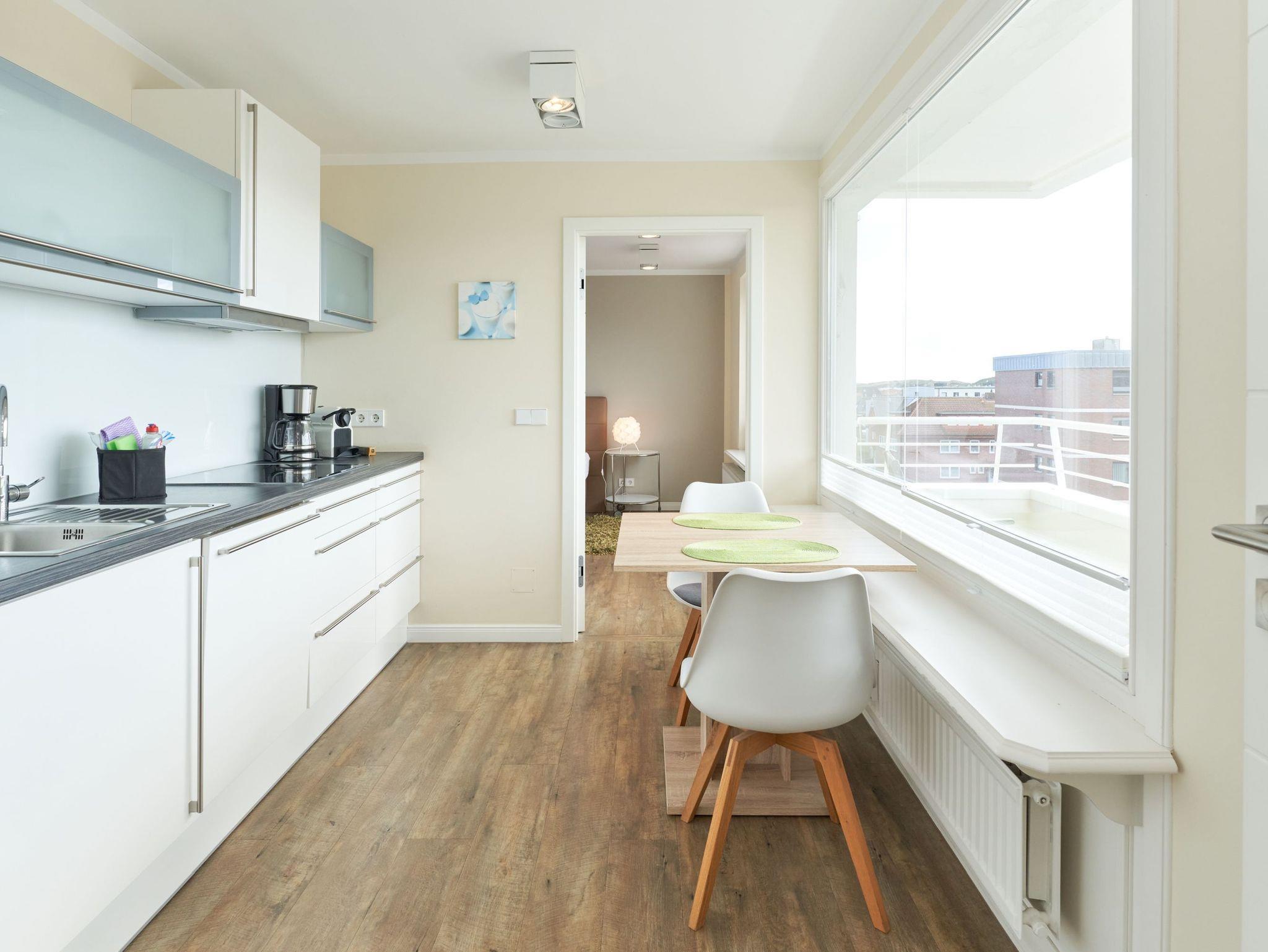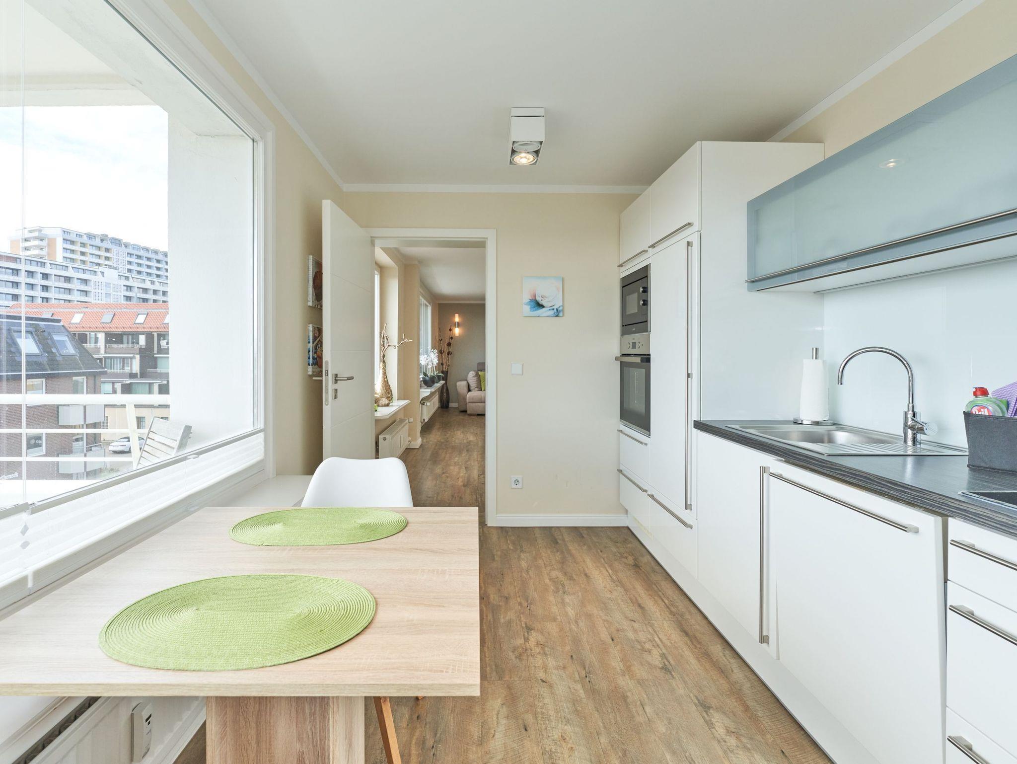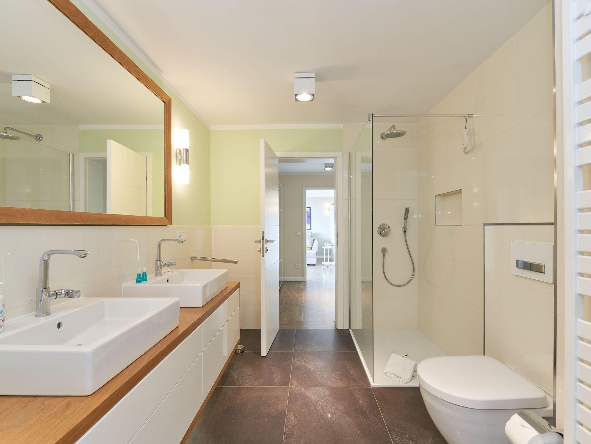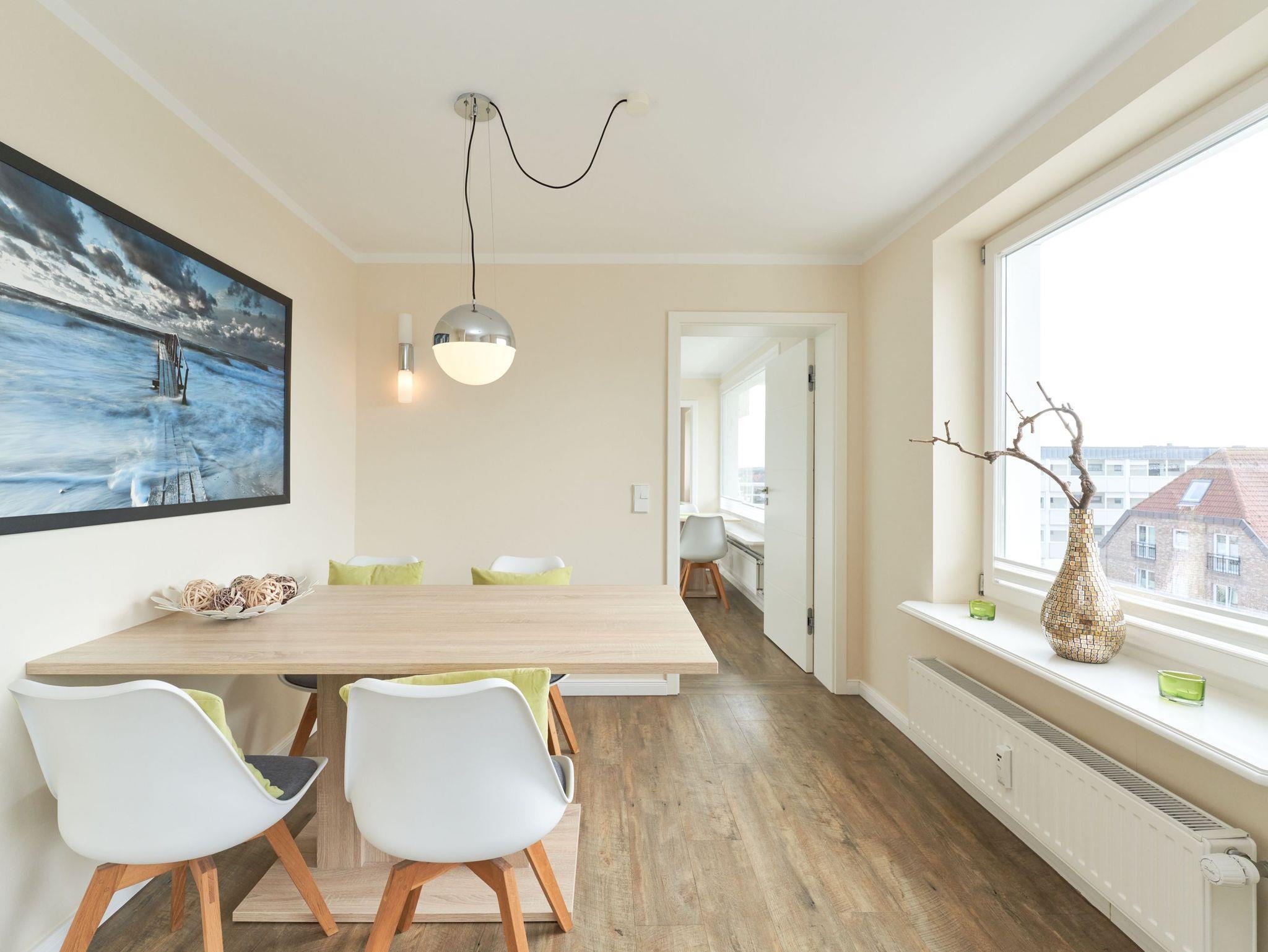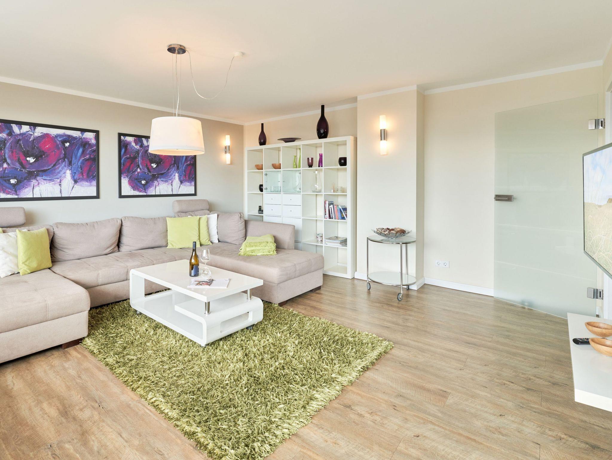 Das stilvolle Duschbad überzeugt mit hellen Fliesen, einem Doppelwaschtisch und Fußbodenheizung, während das großzügige Wohnzimmer mit separater Essecke ein einladendes Ambiente schafft. Die moderne, komplett ausgestattete Küche lässt keine Wünsche offen. Zudem steht Ihnen ein kostenloser Stellplatz in der Doppelgarage zur Verfügung. Genießen Sie Ihren Wohlfühlurlaub in unmittelbarer Strandnähe!