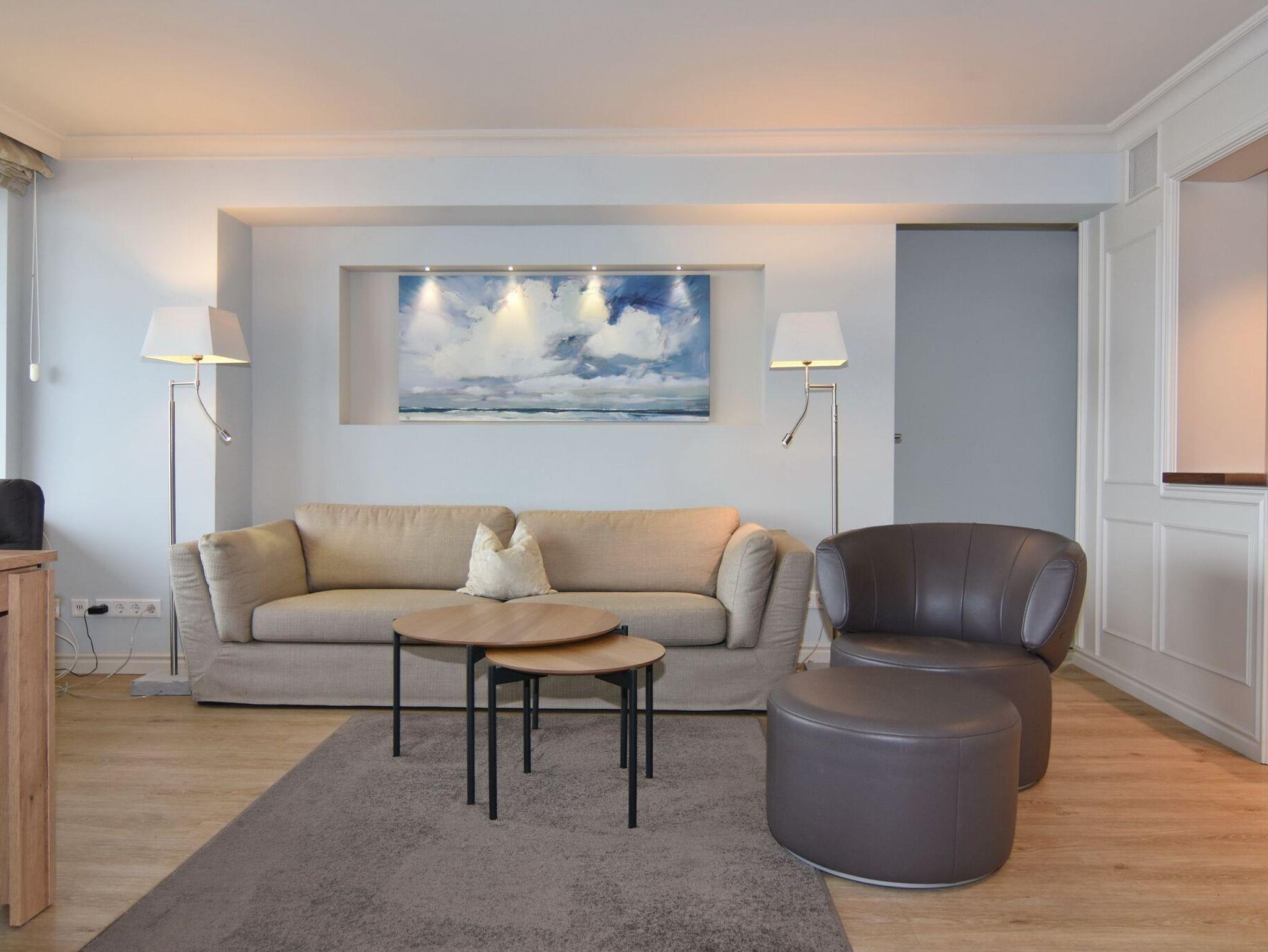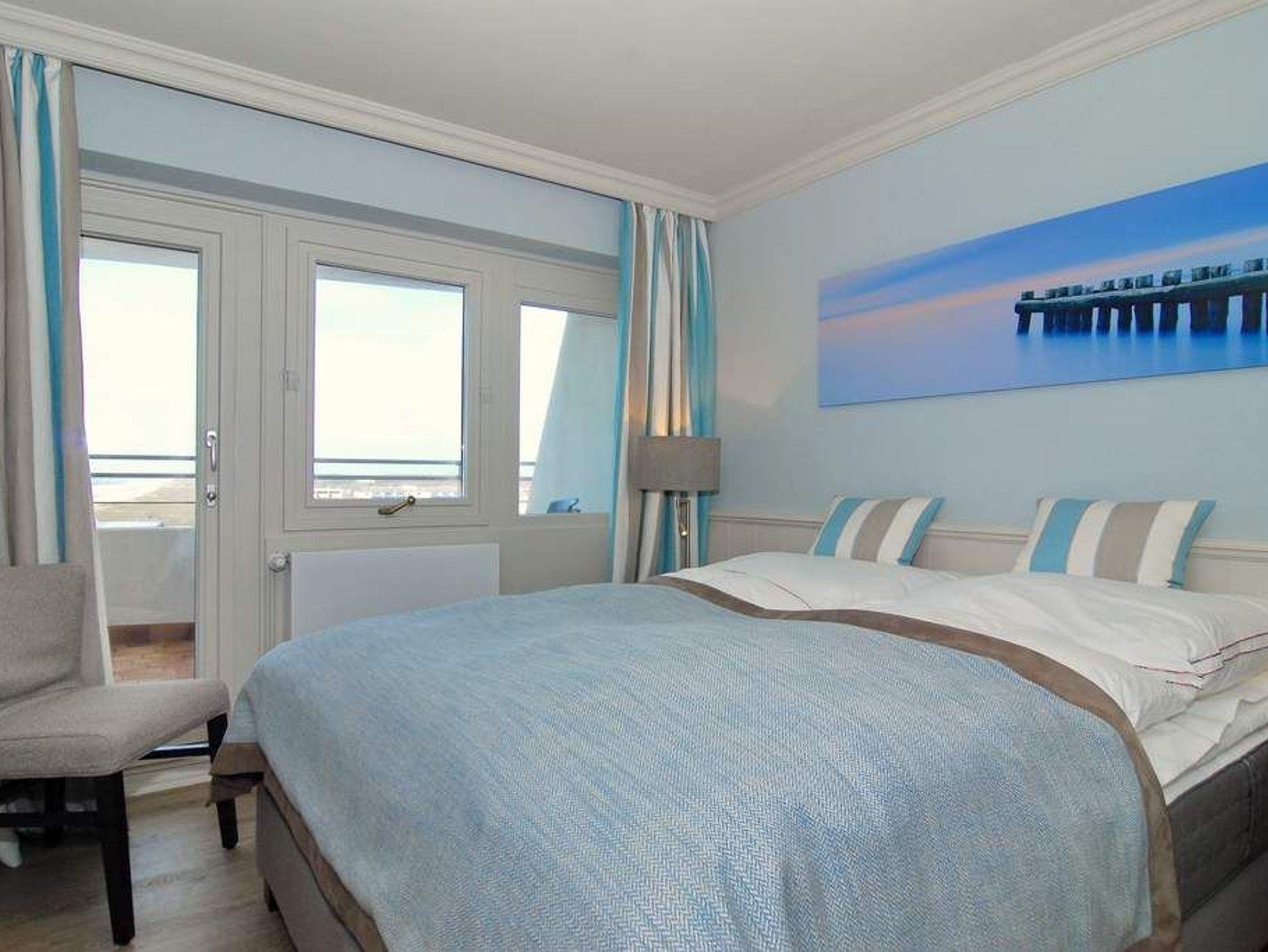 Exklusives 3-Zimmer-Apartment im Haus Metropol im 5.OG mit traumhaften Blick auf die Nordsee und über den Dünenkamm. Nichtraucher-Appartement! Wohnzimmer mit Sitzecke und Essplatz am Fenster mit Blick auf das Meer, Flat-TV mit Radio, W-Lan (ohne Gewähr), West- und Nordbalkon mit Balkonmöbeln, offene Küche mit Geschirrspüler und Mikrowelle/Backofen, Schlafzimmer mit Boxspringbett (180x200 ) und Flat-TV, Westbalkon und Duschbad ensuite, Schlafzimmer mit Boxspringbett (160x200 ), Flat-TV und Nordbalkon, Duschbad/WC. Das Wohnzimmer ist mit Designer-Fußboden ausgelegt. Tierhaltung ist nicht gestattet. Bettwäsche und Handtücher sind zur Anreise aufgezogen. Ein PKW-Stellplatz kann kostenpflichtig zugebucht werden.
