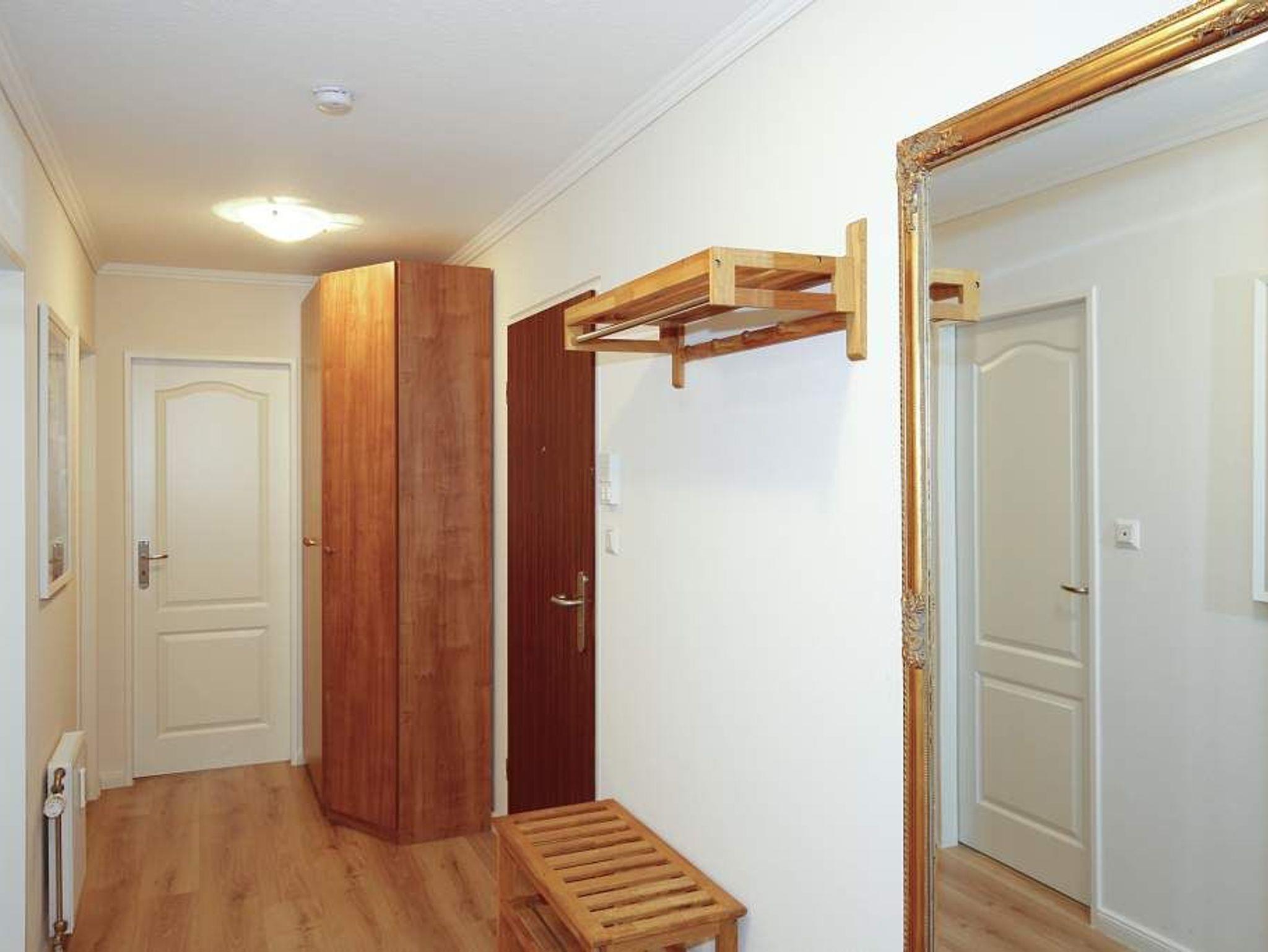 Vom Vorflur mit Garderobe gelangt man in das Wohnzimmer (mit Austritt zum Balkon), in die Küche, in das neue, moderne Duschbad und in die zwei Schlafzimmer.