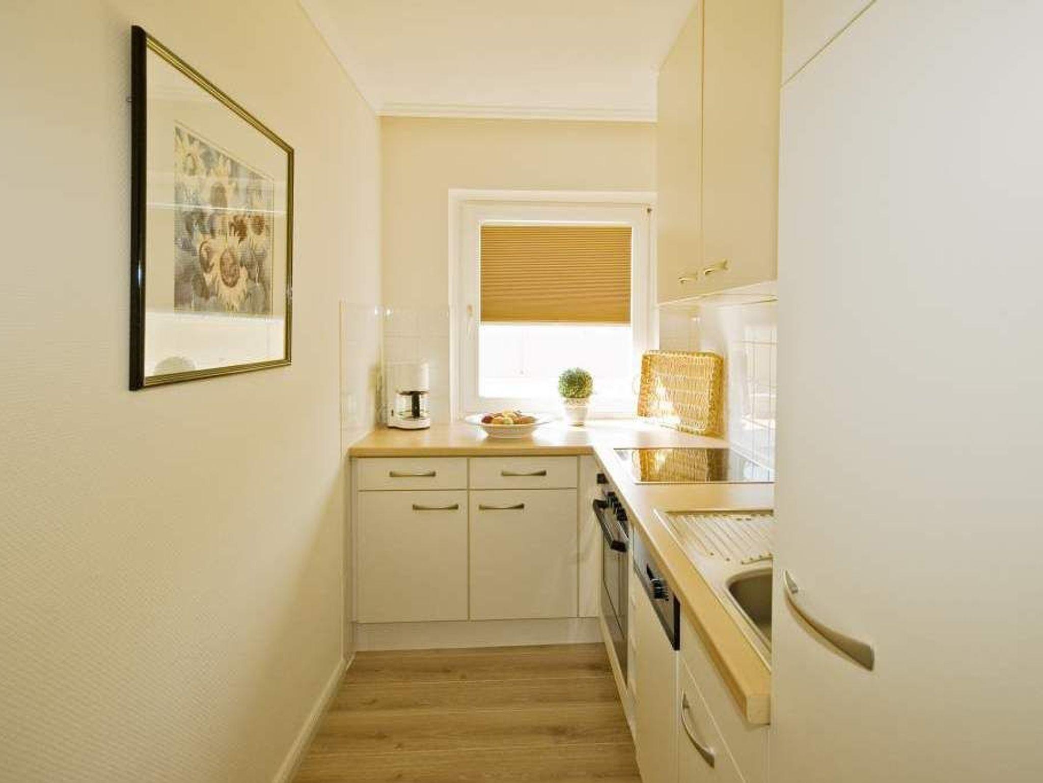 Die neue separate Küche hat einen Geschirrspüler, einen Herd mit Backofen und Cerankochfeld. Kaffeemaschine, Wasserkocher und Toaster gehören zur Grundausstattung.