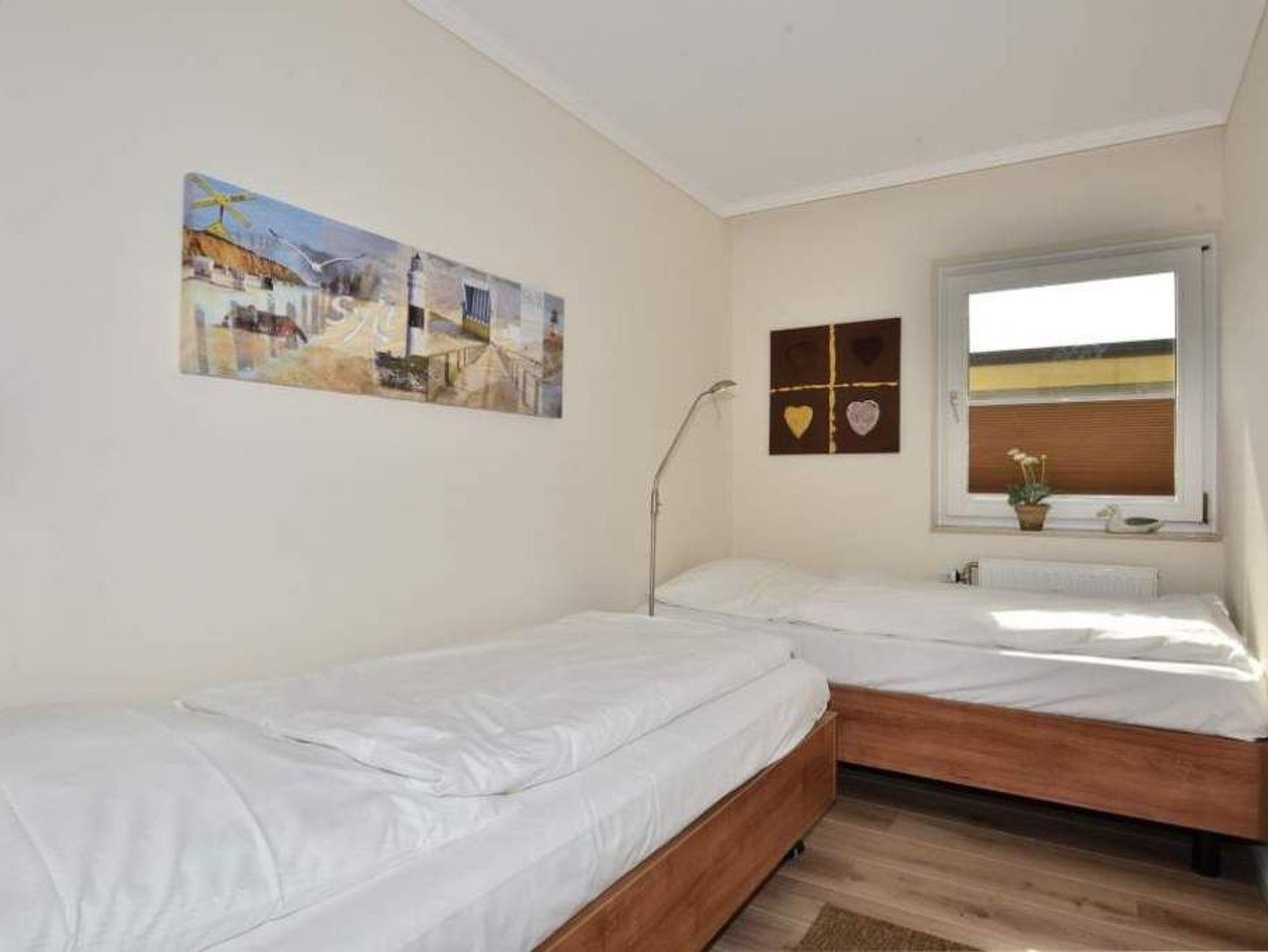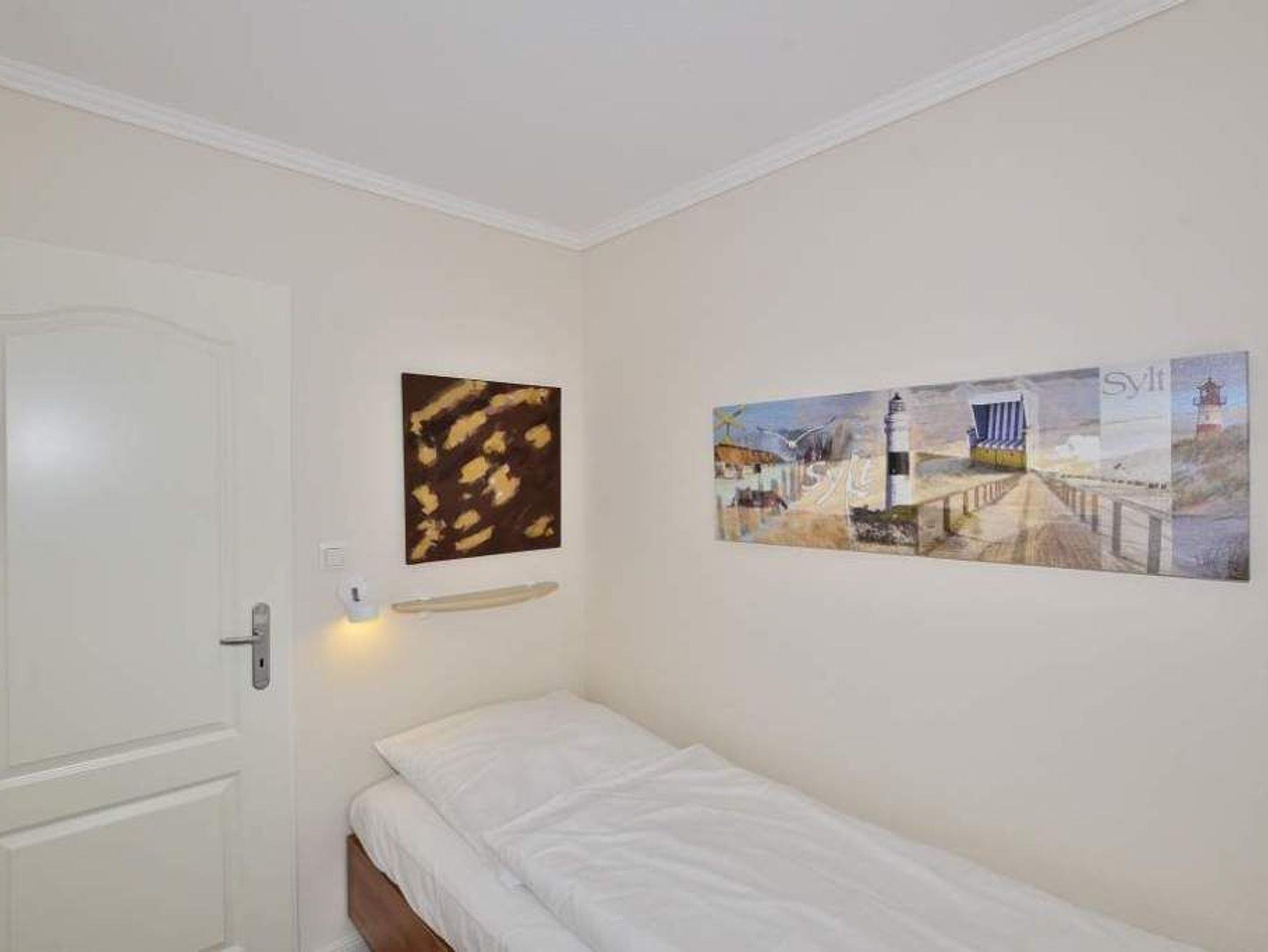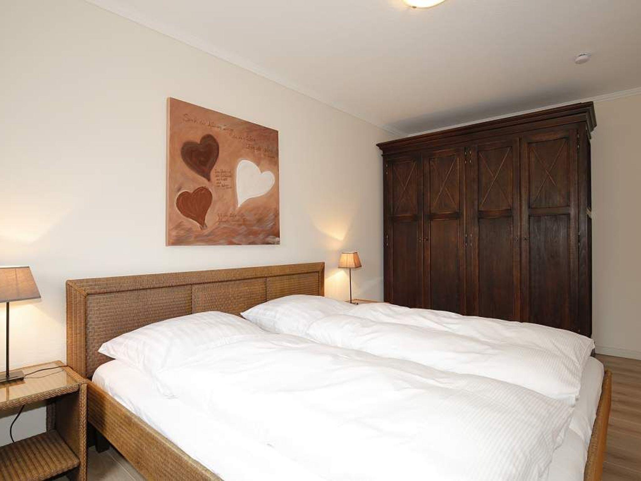 Das große Schlafzimmer ist mit einem Doppelbett (mit Einzelmatratzen) und das kleine Schlafzimmer mit zwei über Eck stehenden Einzelbetten ausgestattet.