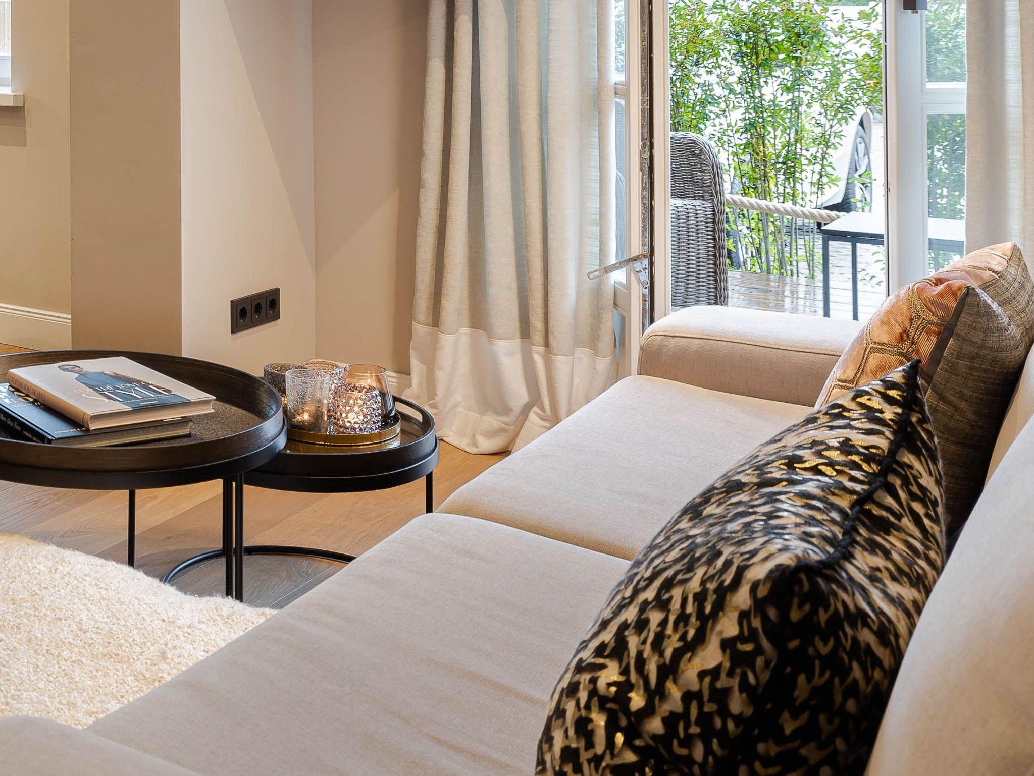 Die Ferienwohnung überzeugt mit hohen Decken, lichtdurchfluteten Räume und einer hochmodernen Einrichtung. Beim Betreten des Apartments gelangen Sie in den offenen und geräumigen Wohn- und Essbereich inklusive eines Schlafsofas. Die Küche ist mit erstklassigen Geräten von Top-Herstellermarken, wie Gaggenau und Miele, ausgestattet. Sie lieben es, den Tag gemütlich mit einem Glas Wein ausklingen zu lassen? Dann ist die charmante Terrasse in Richtung Westen garantiert ein echtes Highlight für Sie. Gemeinsam mit Ihren Liebsten können Sie hier den Sonnenuntergang genießen.