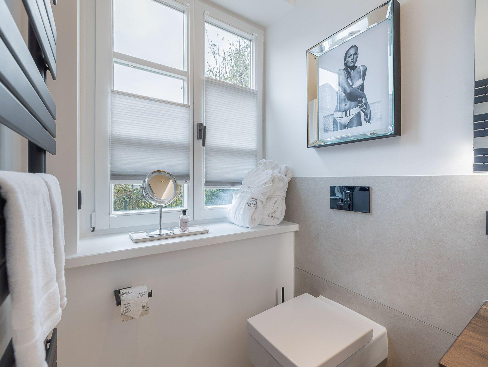 Ein richtiges Luxusgefühl bietet die Regendusche im modernen Badezimmer und für einen kuscheligen Aufenthalt, auch im Winter, dürfen Sie sich auf Fußbodenheizung im gesamten Apartment freuen. Ein kleines Starterpaket für Küche und Bad gibt es bei Anreise dazu.