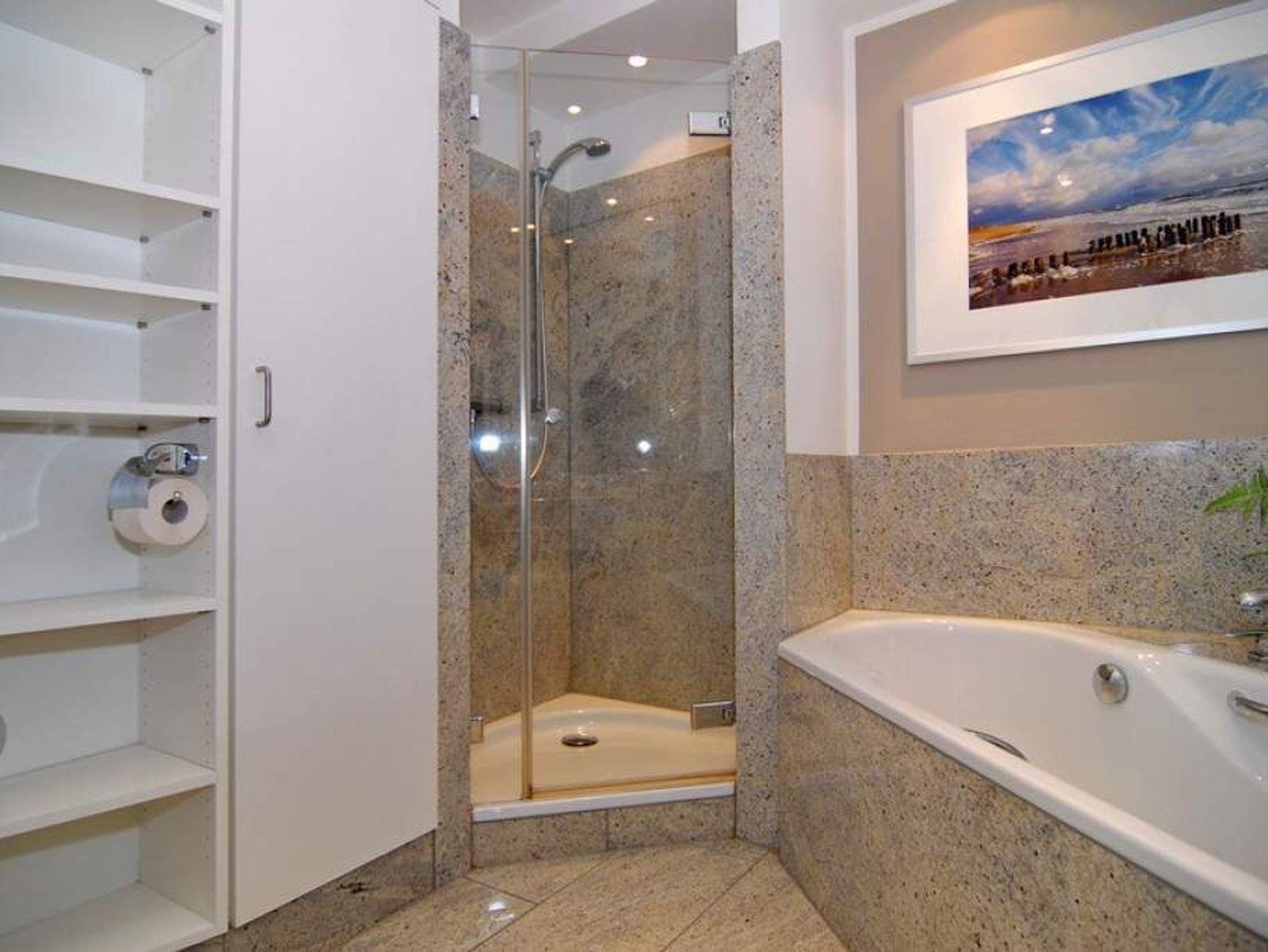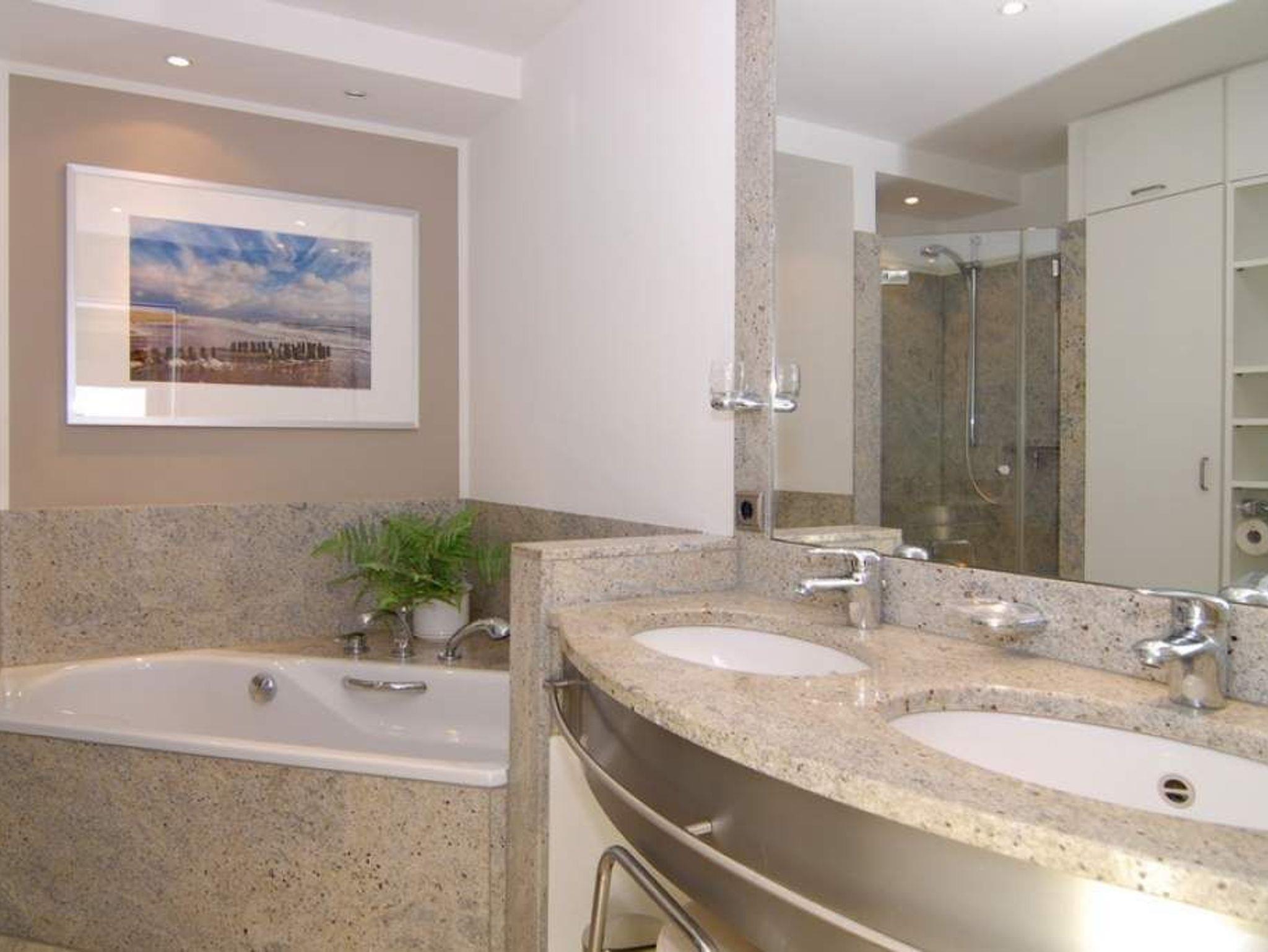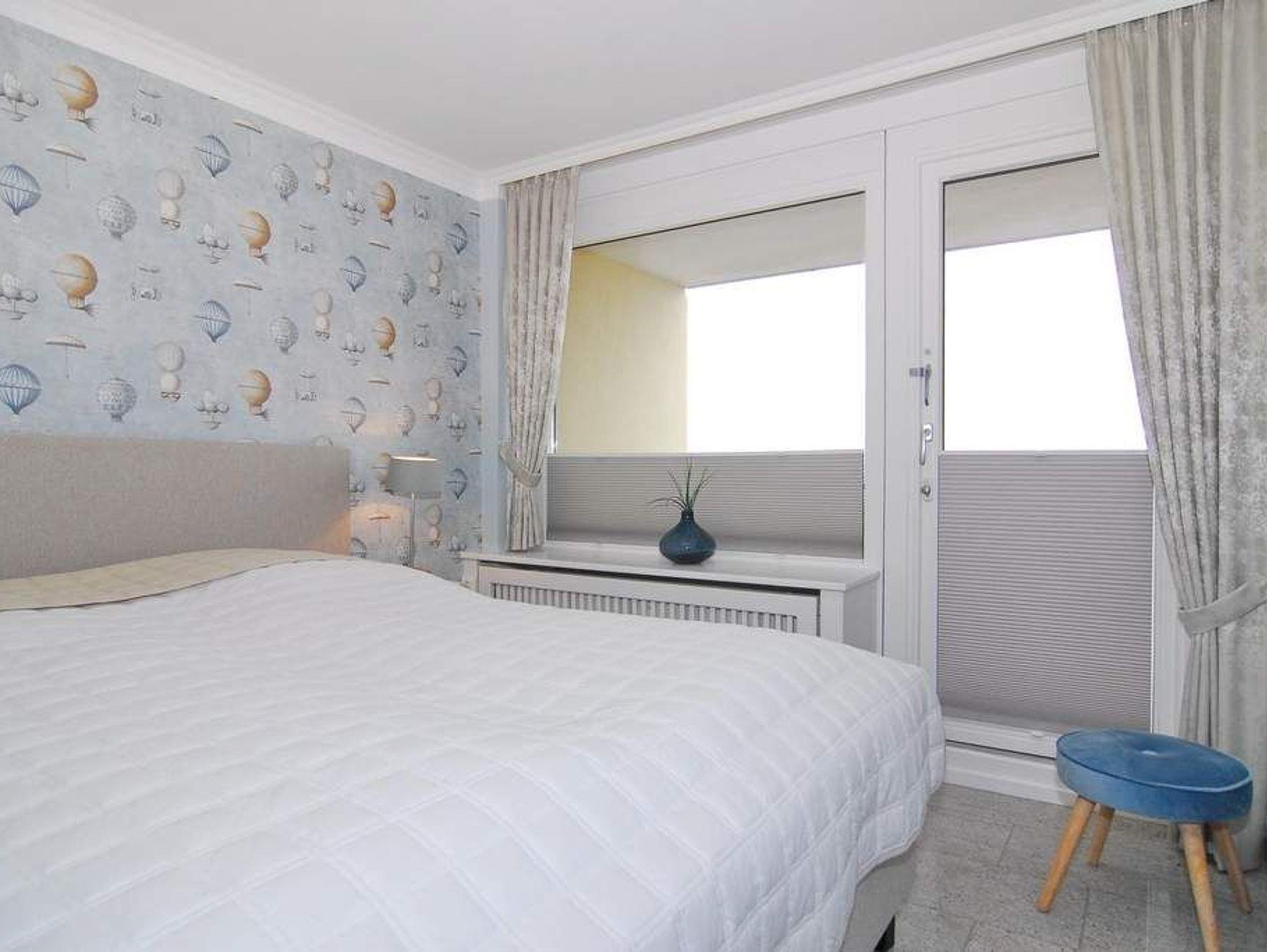 Nichtraucher-Whg.! Moderne 2-Zimmer-Ferienwohnung, 9. OG, ca. 74 m², Haus Metropol, Süd-Ost-Ecke. Wohnzimmer mit Couch und Sessel, Kabel-TV, Radio, WLAN (ohne Gewähr), Eßtisch mit Meeresblick, 1 Einzelschrankbett (80x200), Südbalkon mit Blick auf das Meer und Sonnenliegen und Ostbalkon mit Blick über die Insel, separates Schlafzimmer mit Doppelbett (2x90x200) und Ostbalkon (Blick über die Insel), separate Küche mit Geschirrspüler, Mikrowelle und Durchreiche, Bad mit Wanne, Dusche und 2 Waschbecken. Komplette Wohnung ist mit Granitfliesen verlegt. Tierhaltung ist hier nicht gestattet. PKW-Stellplatz/Garage kann kostenpflichtig gebucht werden. Bettwäsche und Handtücher sind zur Anreise aufgezogen.