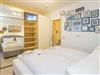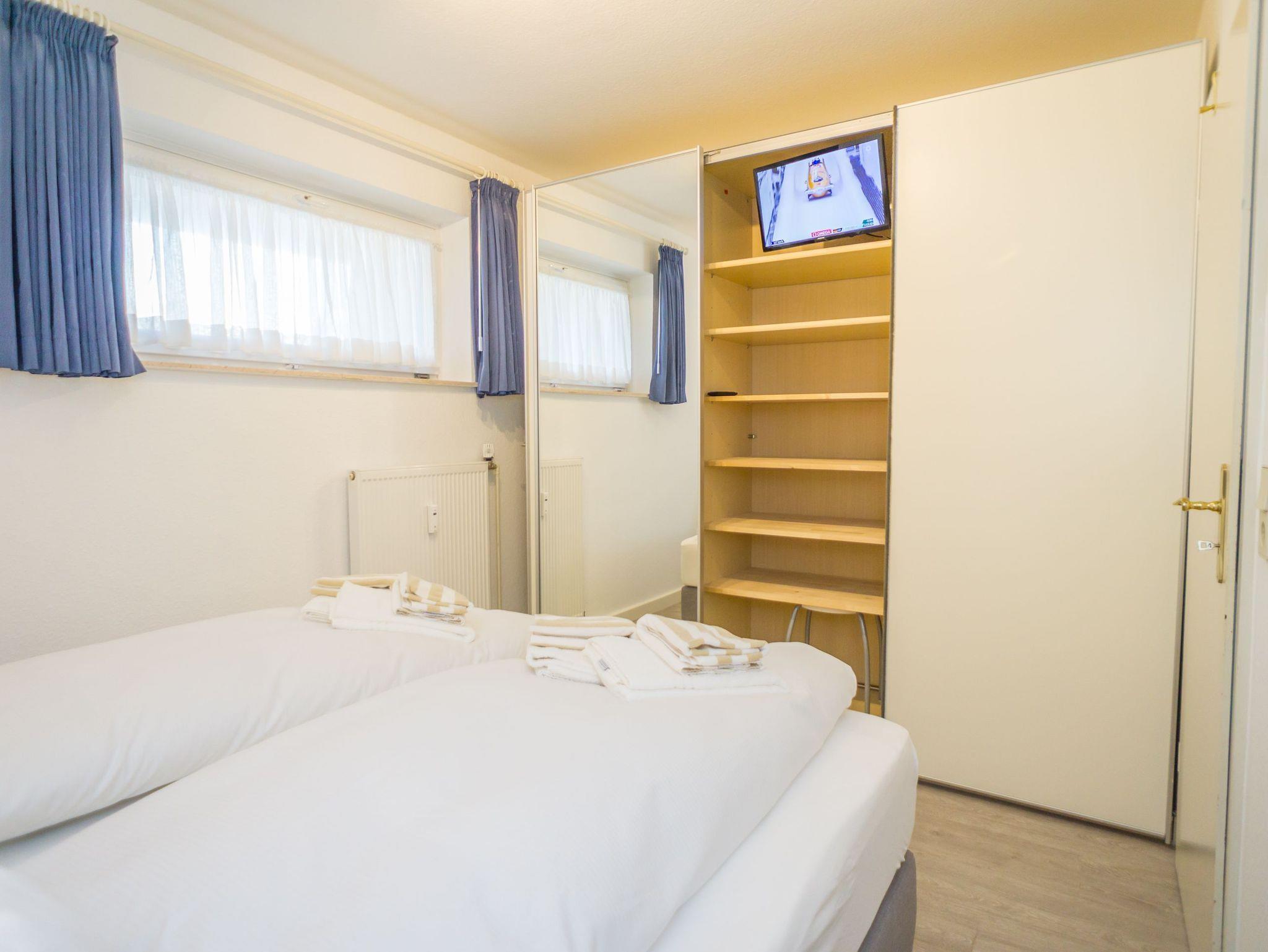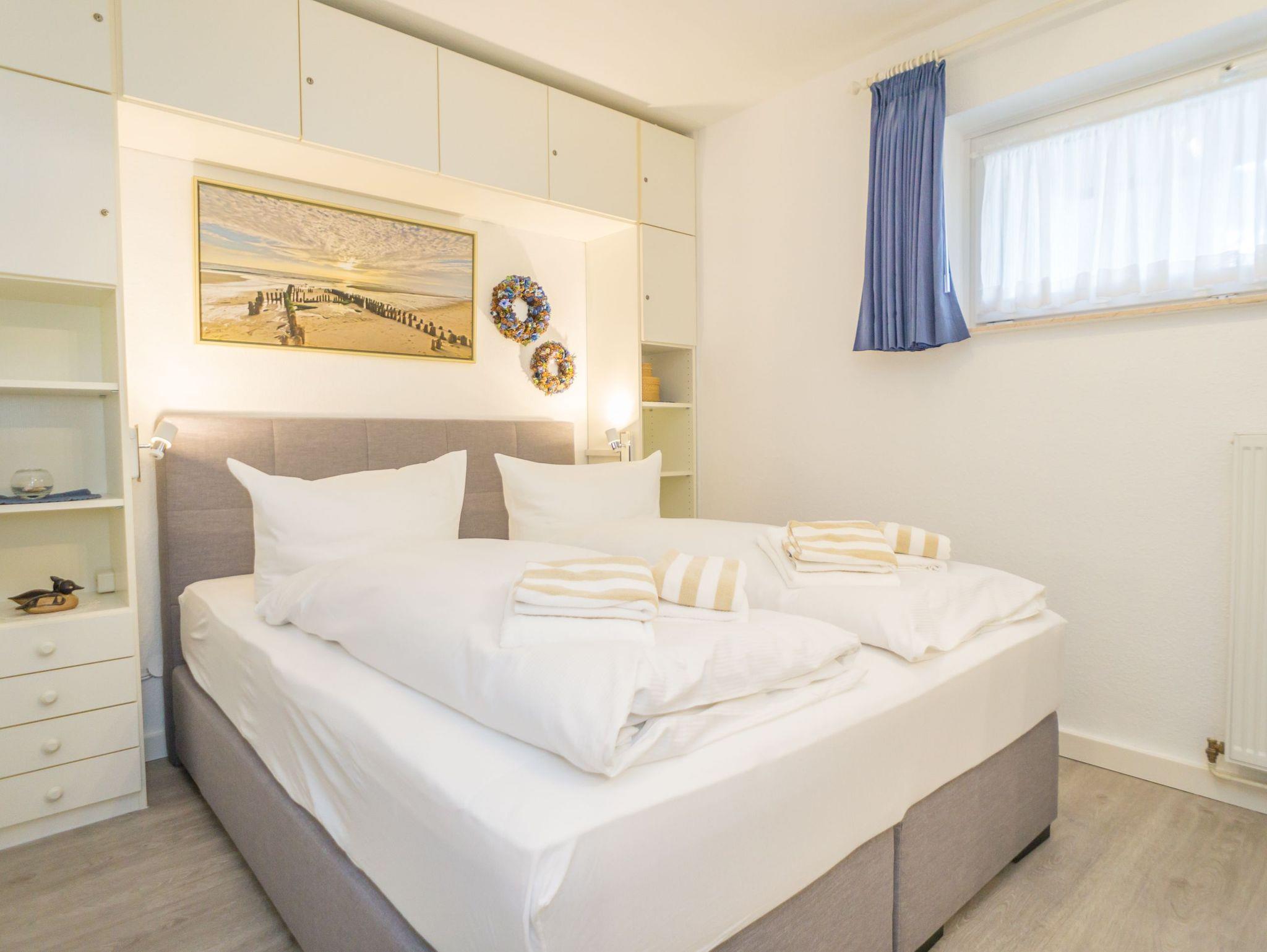 Das Schlafzimmer ist mit einem guten Doppelpolsterbett (0,90 x 2,00 m, 2 Einzelmatratzen) ausgestattet.