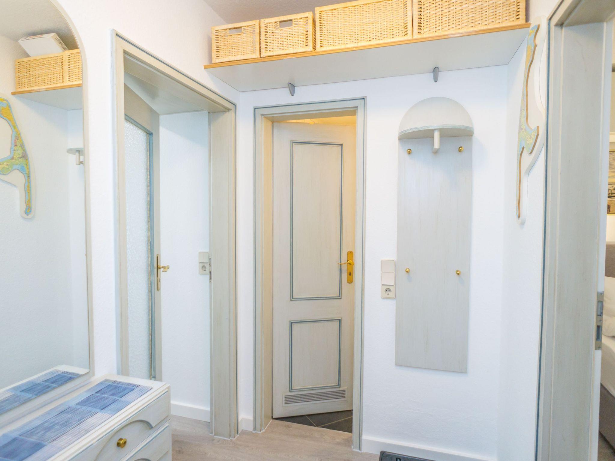 Vom Vorflur mit Garderobe gelangt man in das Wohnzimmer mit Austritt zum Südterrasse, das Doppelschlafzimmer und das neue Duschbad/WC.