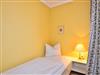 Das kleine Schlafzimmer hat ein Einzelbett und ein Fenster.