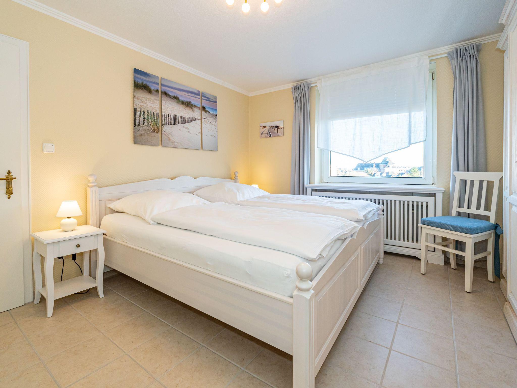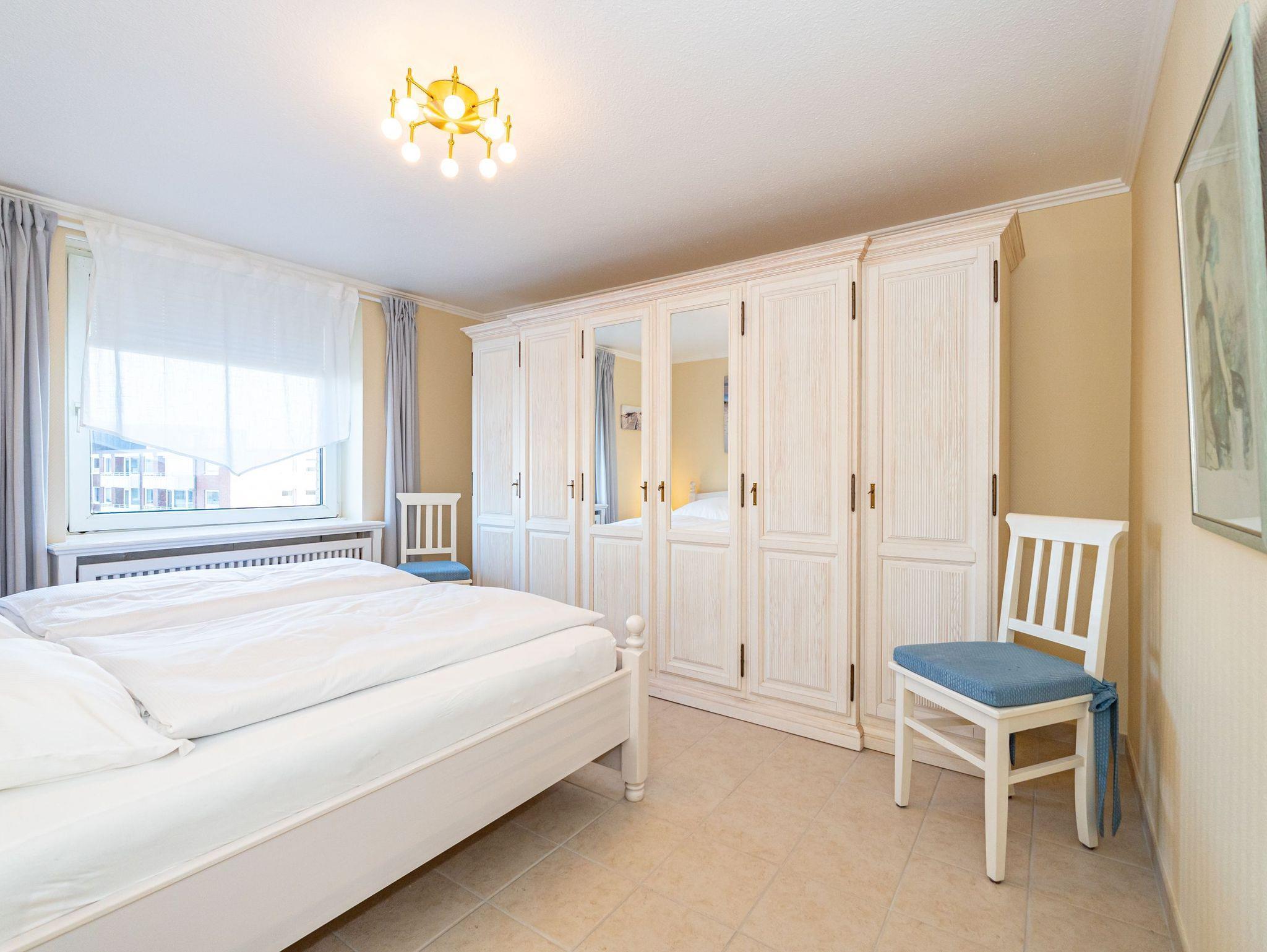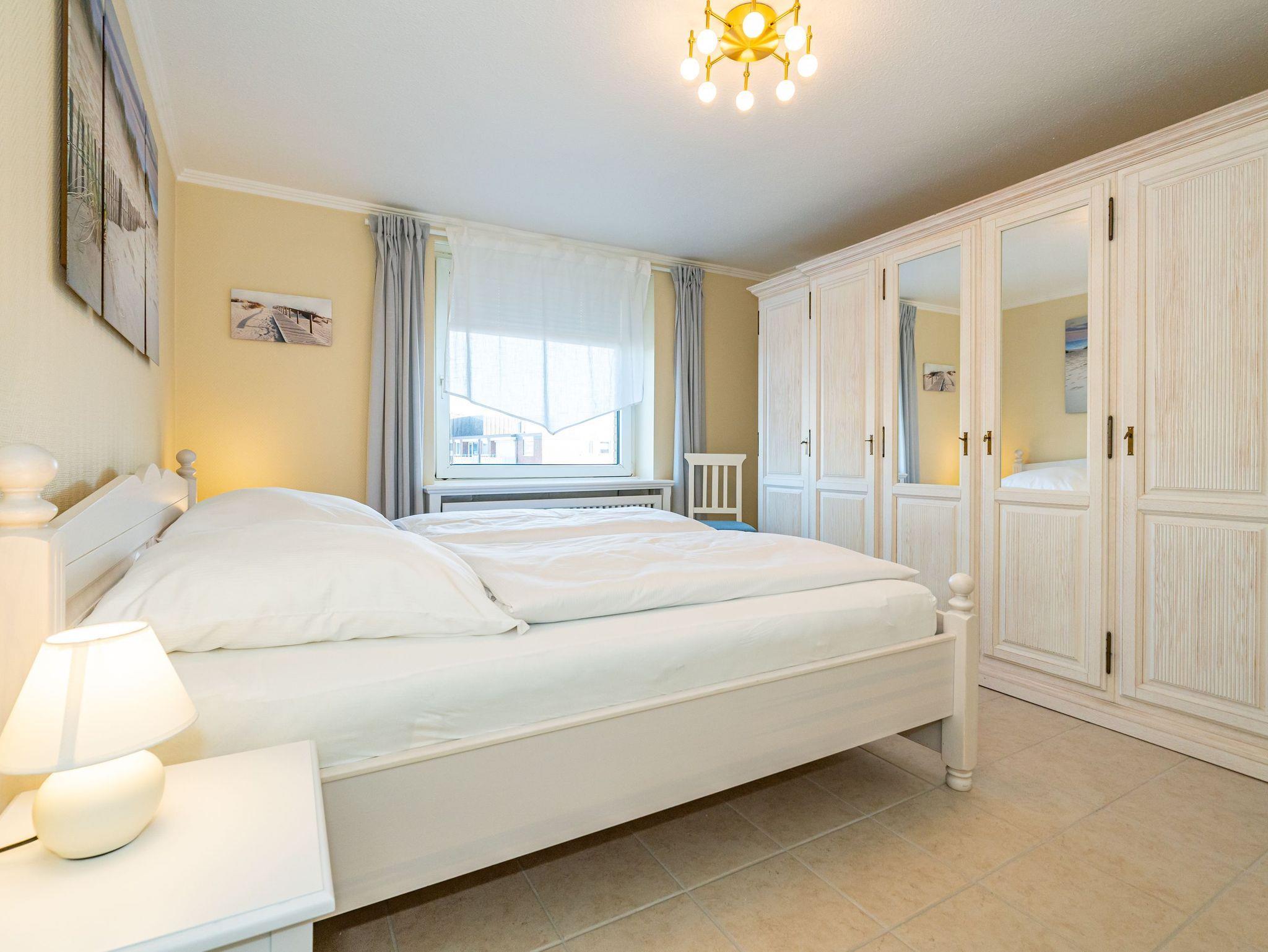 Das Schlafzimmer besitzt ein gutes Doppelbett in Übergröße (Liegefläche 2,00 x 2,00 m, Einzelmatratzen) und Kleiderschrank.