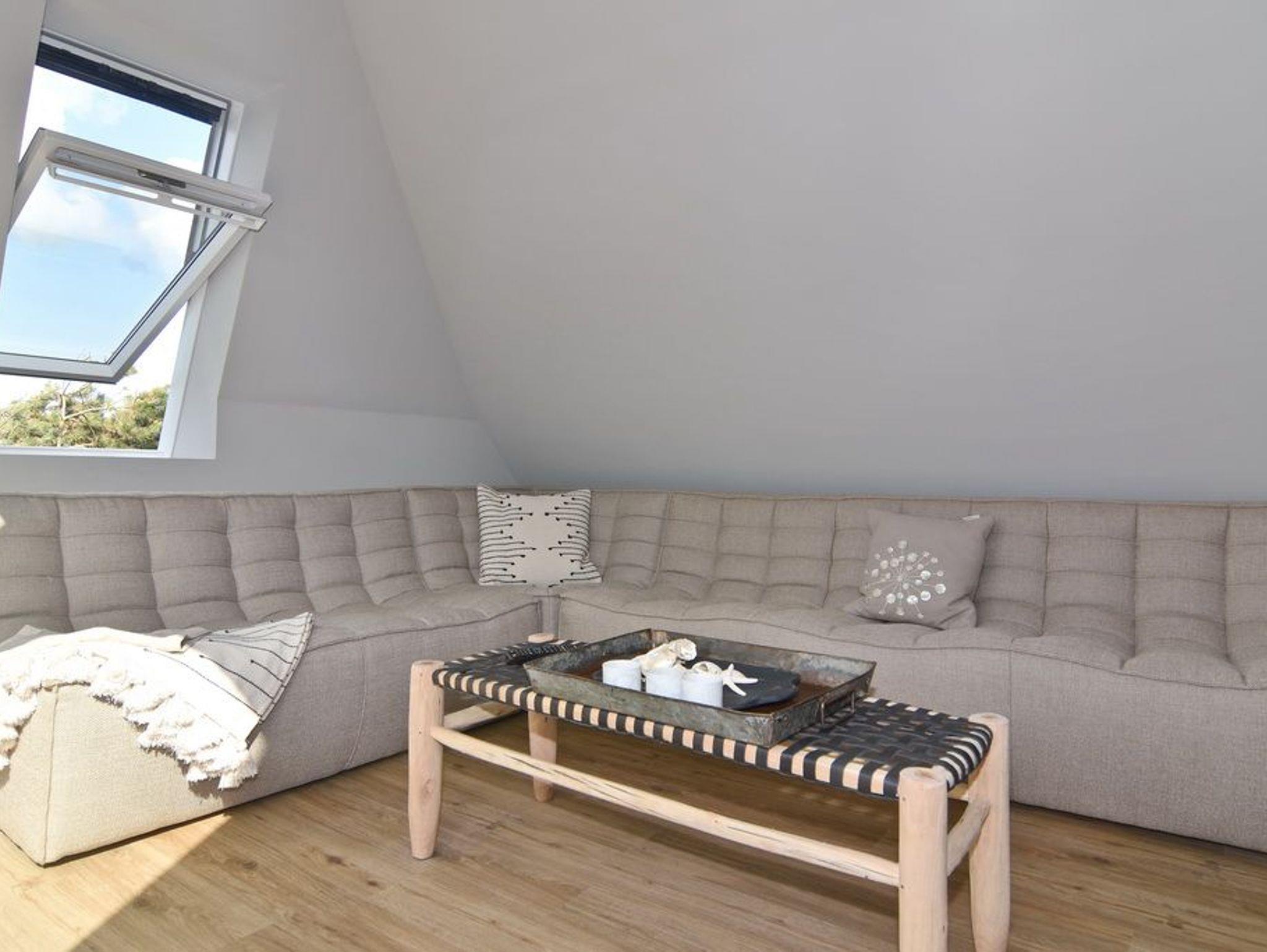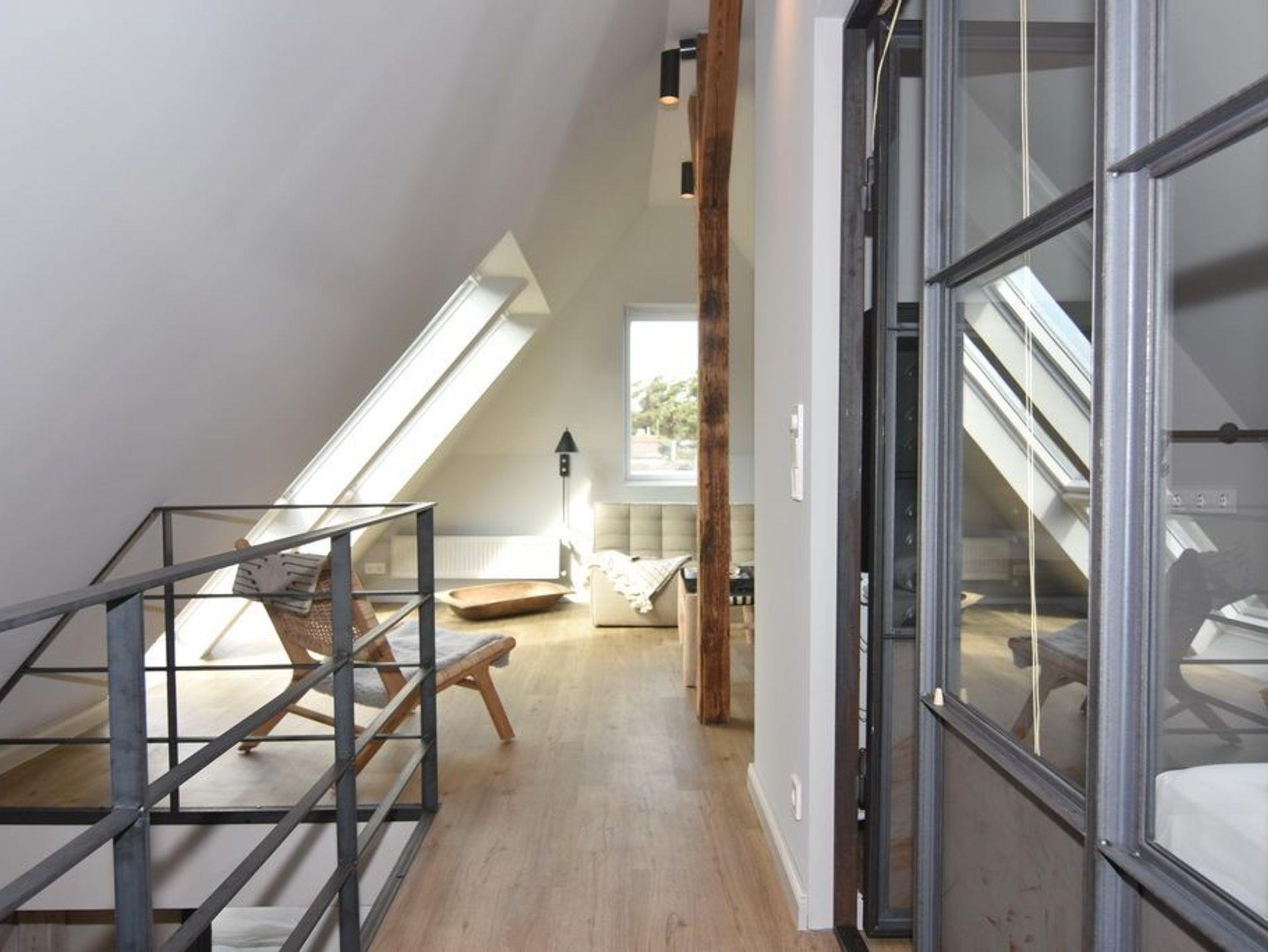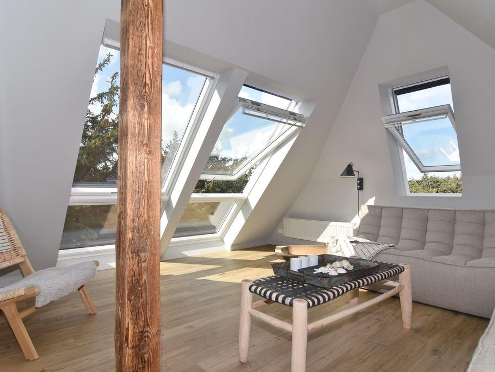 Direkt hinter den Dünen gelegen und dem Strand ganz nah.' [nbsp]Hier wohnen Sie in einer frisch renovierten 5-Zimmer-Maisonette-Wohnung mit ca. 74qm. Frei gelegte Deckenbalken, Naturtöne und liebevoll ausgewählte Möbel und Dekoration schaffen für Sie einen Ort der Ruhe und Entspannung. Im Obergeschoß befindet sich eine helle Wohnküche mit einem Essplatz für bis zu 6 Personen. Die Küche verfügt über Geschirrspüler, Backofen, großen Kühlschrank und separatem Gefrierschrank sowie eine Waschmaschine. Auf selber Ebene befinden sich ein Schlafzimmer mit Doppelbett (180x200), TV[nbsp][nbsp]und großem, eigenen Bad mit Dusche, Wanne und Kleiderschrank; ein weiteres Schlafzimmer mit Doppelbett (160x200), Kleiderschrank und TV und ein separates Duschbad /WC. Aus der Wohnküche geht eine Metalltreppe ins Dachgeschoß (Achtung: offenes Geländer - nicht für Kleinkinder geeignet). Hier befindet sich ein weiterer Schlafraum (Jugendzimmer mit Doppelbett (160x200) und kleinem Spint - wunderschön hell, da hier eine Eisentrennwand mit Glas verbaut wurde - und der Wohnbereich mit gemütlicher Sitzecke, TV und großen, bodentiefen Veluxfenstern. Internet (ohne Gewähr) ist vorhanden. Bettwäsche und Handtücher sind zur Anreise aufgezogen. Parken in der Straße möglich. Kleiner, gemeinschaftlicher Außenbereich vor dem Haus. Fahrradständer am Haus. Tierhaltung und Rauchen sind im Objekt verboten.