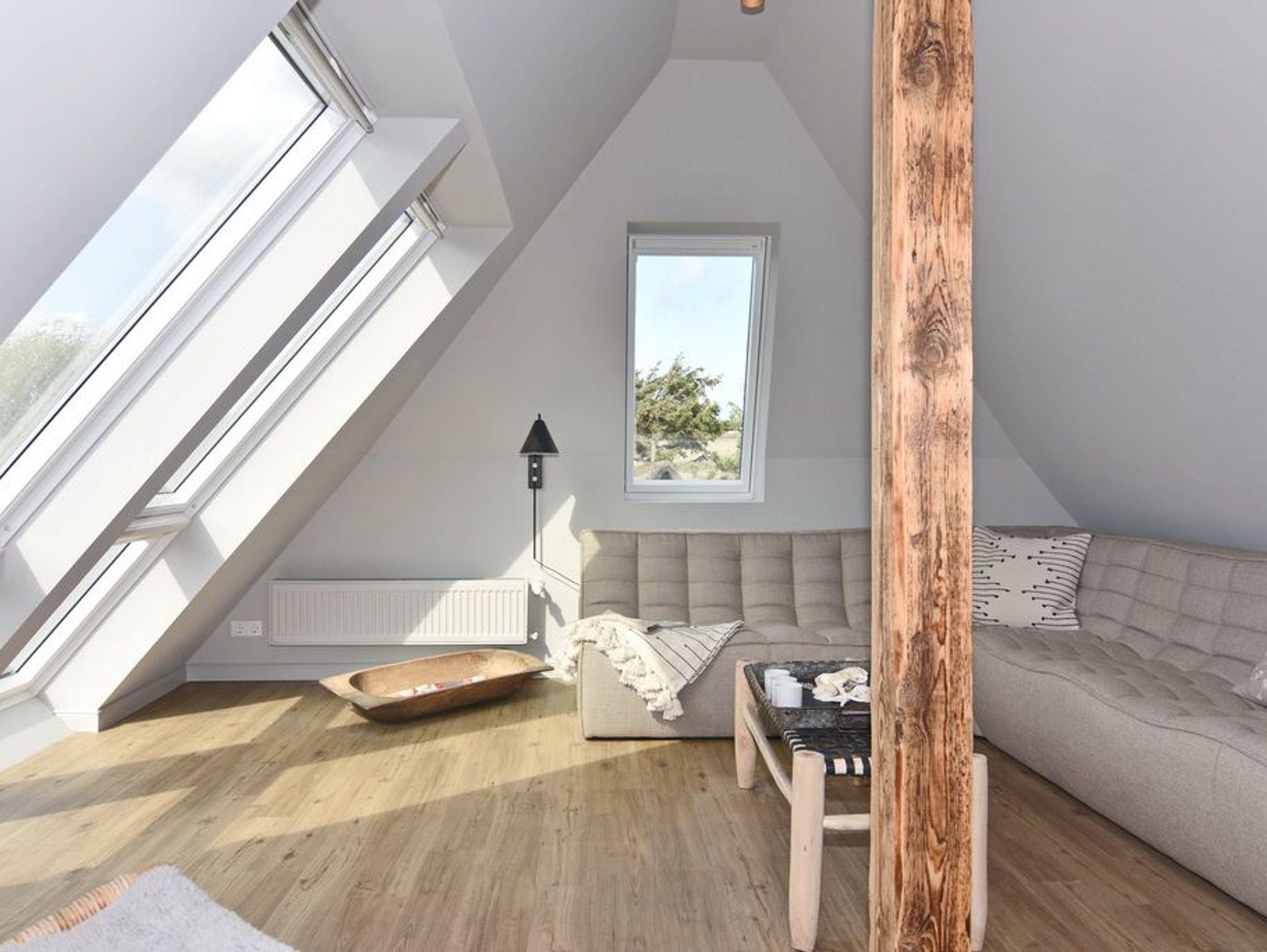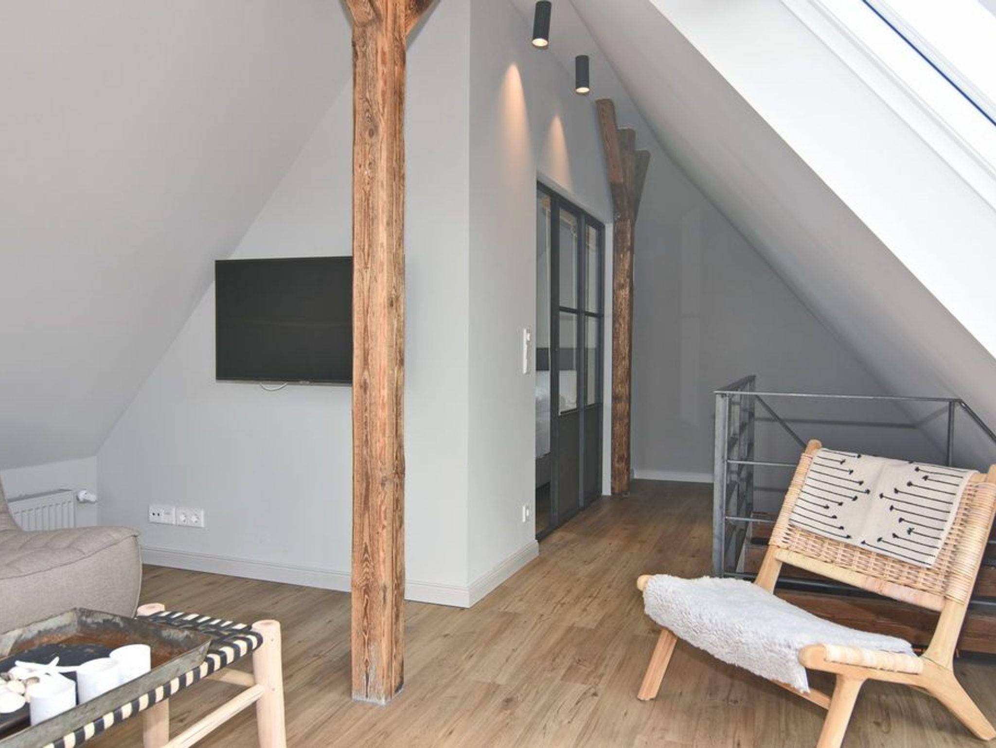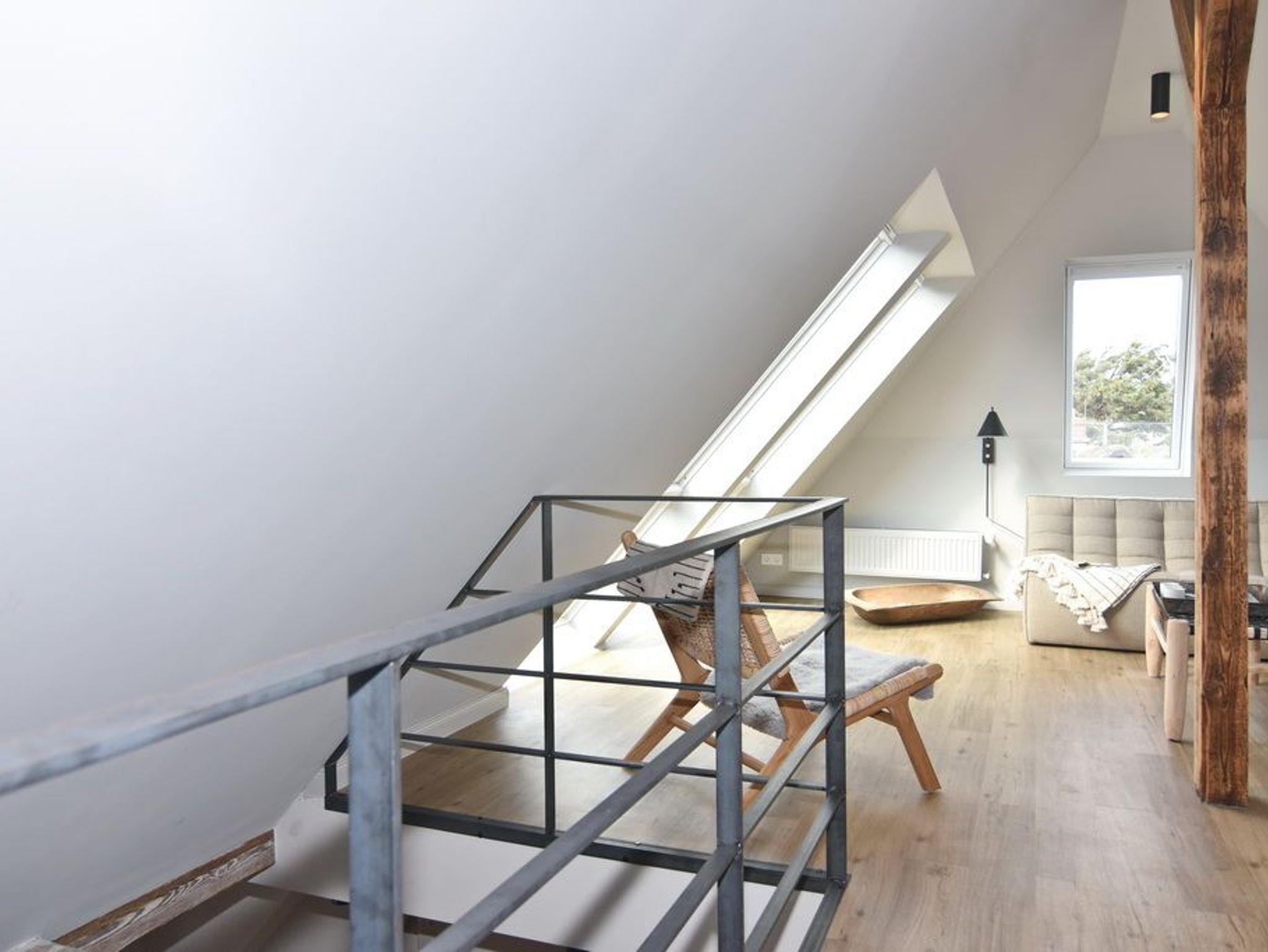 Direkt hinter den Dünen gelegen und dem Strand ganz nah.' [nbsp]Hier wohnen Sie in einer frisch renovierten 5-Zimmer-Maisonette-Wohnung mit ca. 74qm. Frei gelegte Deckenbalken, Naturtöne und liebevoll ausgewählte Möbel und Dekoration schaffen für Sie einen Ort der Ruhe und Entspannung. Im Obergeschoß befindet sich eine helle Wohnküche mit einem Essplatz für bis zu 6 Personen. Die Küche verfügt über Geschirrspüler, Backofen, großen Kühlschrank und separatem Gefrierschrank sowie eine Waschmaschine. Auf selber Ebene befinden sich ein Schlafzimmer mit Doppelbett (180x200), TV[nbsp][nbsp]und großem, eigenen Bad mit Dusche, Wanne und Kleiderschrank; ein weiteres Schlafzimmer mit Doppelbett (160x200), Kleiderschrank und TV und ein separates Duschbad /WC. Aus der Wohnküche geht eine Metalltreppe ins Dachgeschoß (Achtung: offenes Geländer - nicht für Kleinkinder geeignet). Hier befindet sich ein weiterer Schlafraum (Jugendzimmer mit Doppelbett (160x200) und kleinem Spint - wunderschön hell, da hier eine Eisentrennwand mit Glas verbaut wurde - und der Wohnbereich mit gemütlicher Sitzecke, TV und großen, bodentiefen Veluxfenstern. Internet (ohne Gewähr) ist vorhanden. Bettwäsche und Handtücher sind zur Anreise aufgezogen. Parken in der Straße möglich. Kleiner, gemeinschaftlicher Außenbereich vor dem Haus. Fahrradständer am Haus. Tierhaltung und Rauchen sind im Objekt verboten.