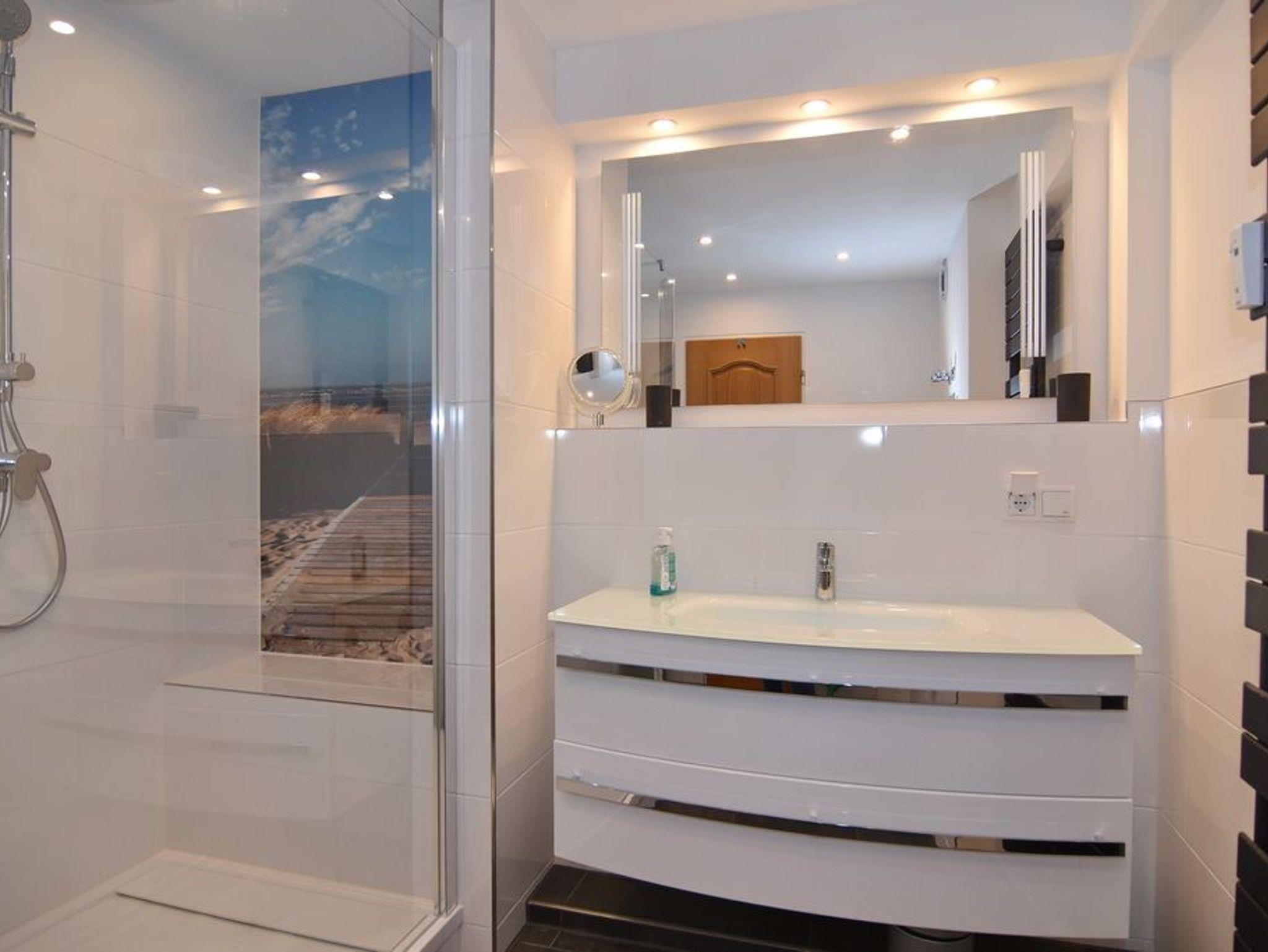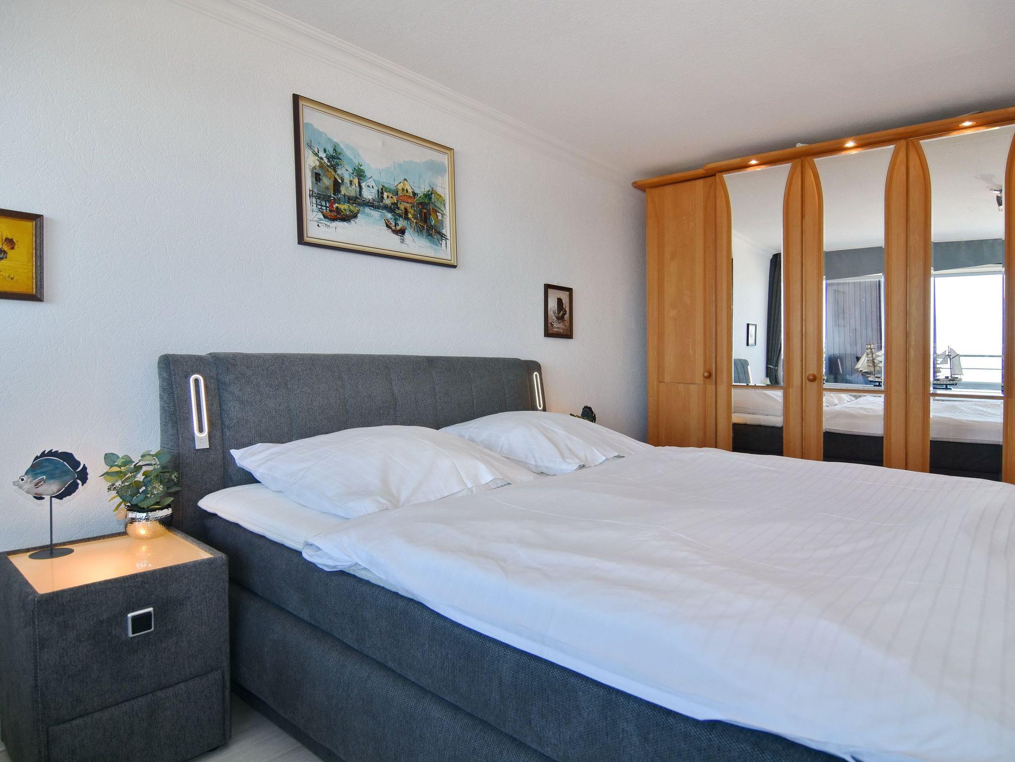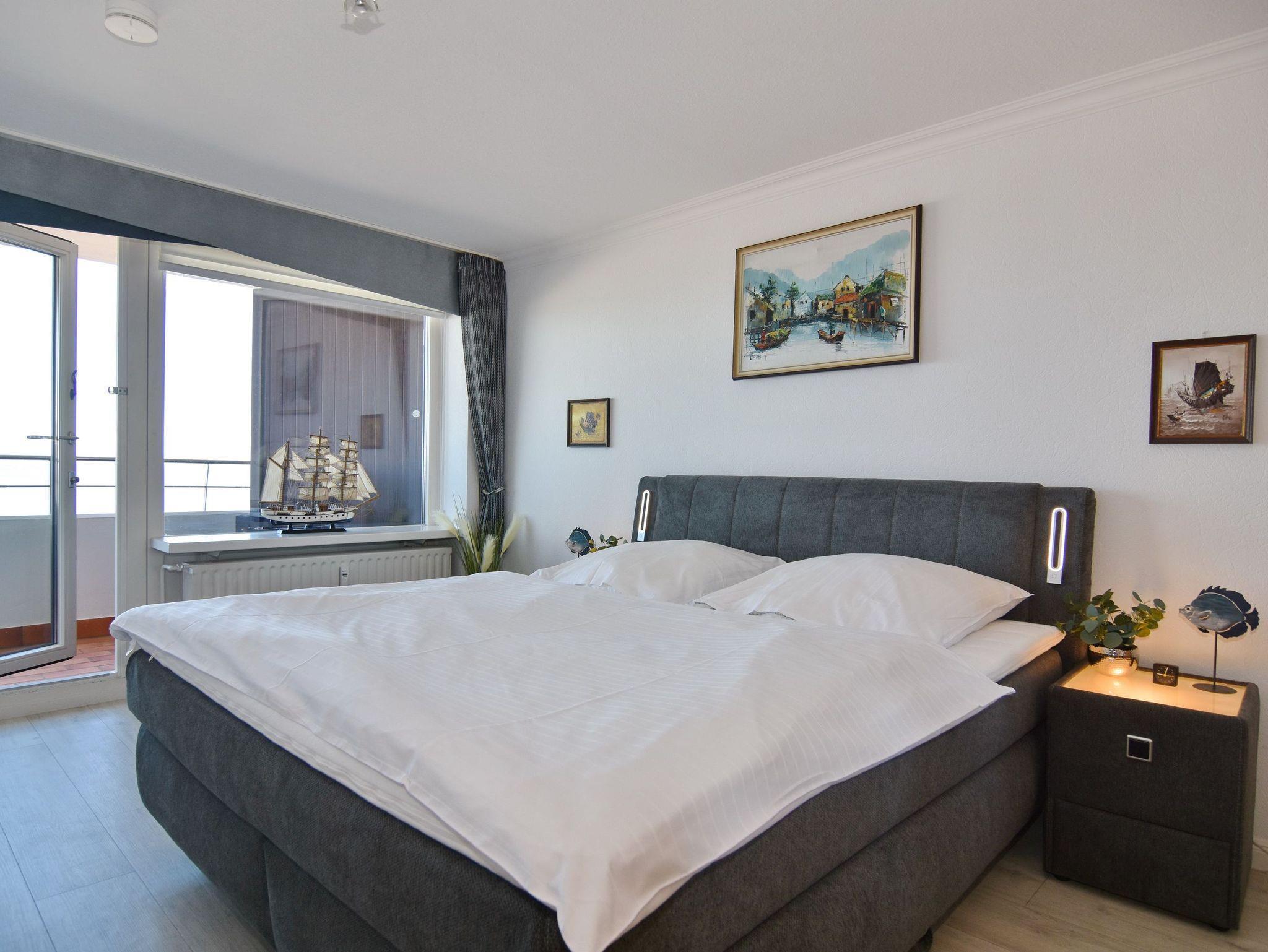 Hochwertige 2-Zimmer-Ferienwohnung, 3. OG, ca. 68 m² im Haus Metropol mit Meeresblick. Nichtraucher-Wohnung! Wohnraum mit Doppelschlafcouch und Sessel, Eßplatz am Fenster, Stereoanlage, TV, W-Lan (ohne Gewähr), Westbalkon mit Meeresblick, Schlafraum mit Boxspringbett, großem Kleiderschrank und TV, Westbalkon mit Meeresblick, separate Küche mit Backofen und Geschirrspüler, geräumiges Duschbad/WC mit Sitzmöglichkeit in der Dusche. Die Wohnung ist mit Granitfliesen ausgelegt. Tierhaltung ist nicht gestattet. PKW-Stellplatz/Garage kann kostenpflichtig gebucht werden. Bettwäsche und Handtücher sind zur Anreise aufgezogen.