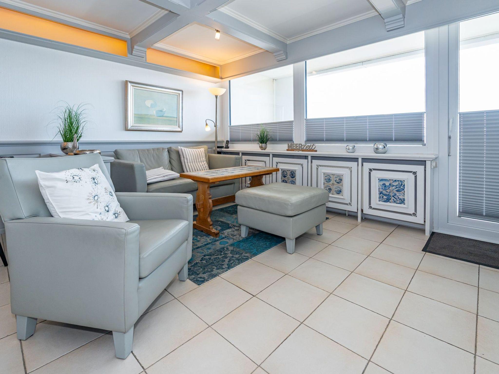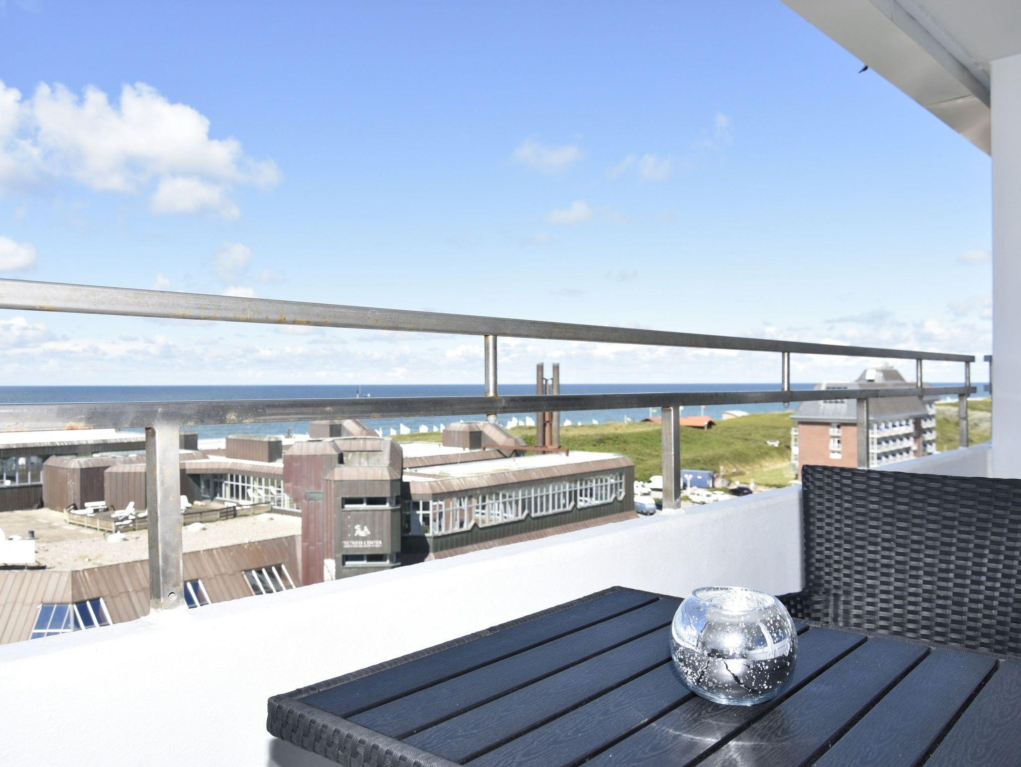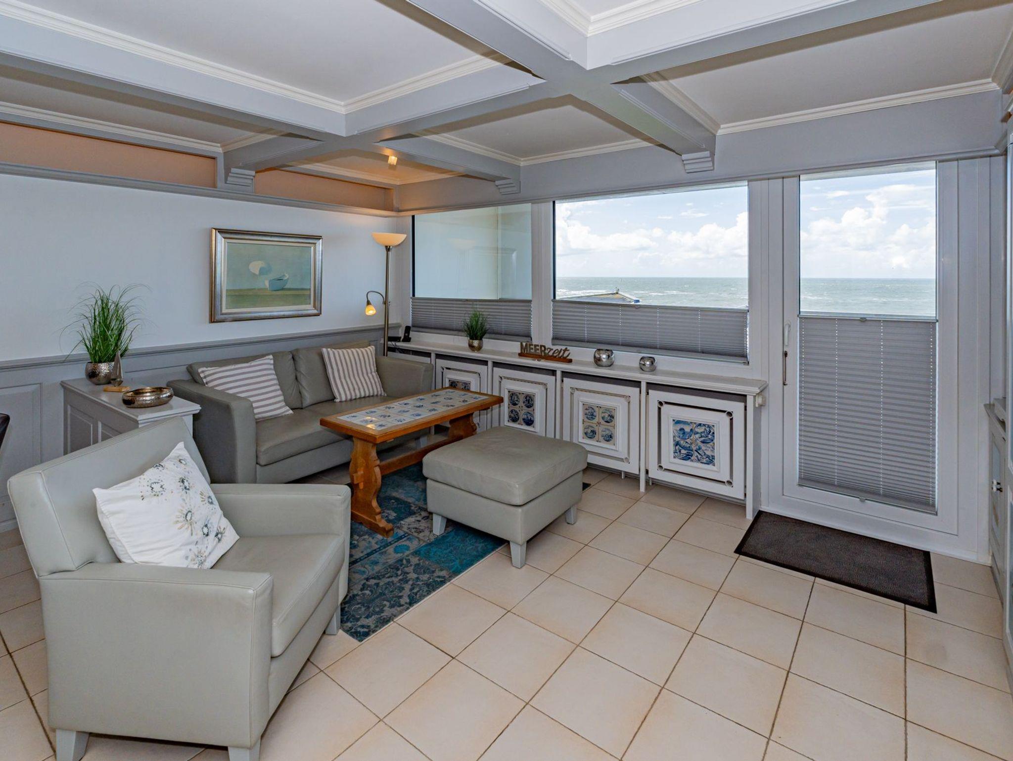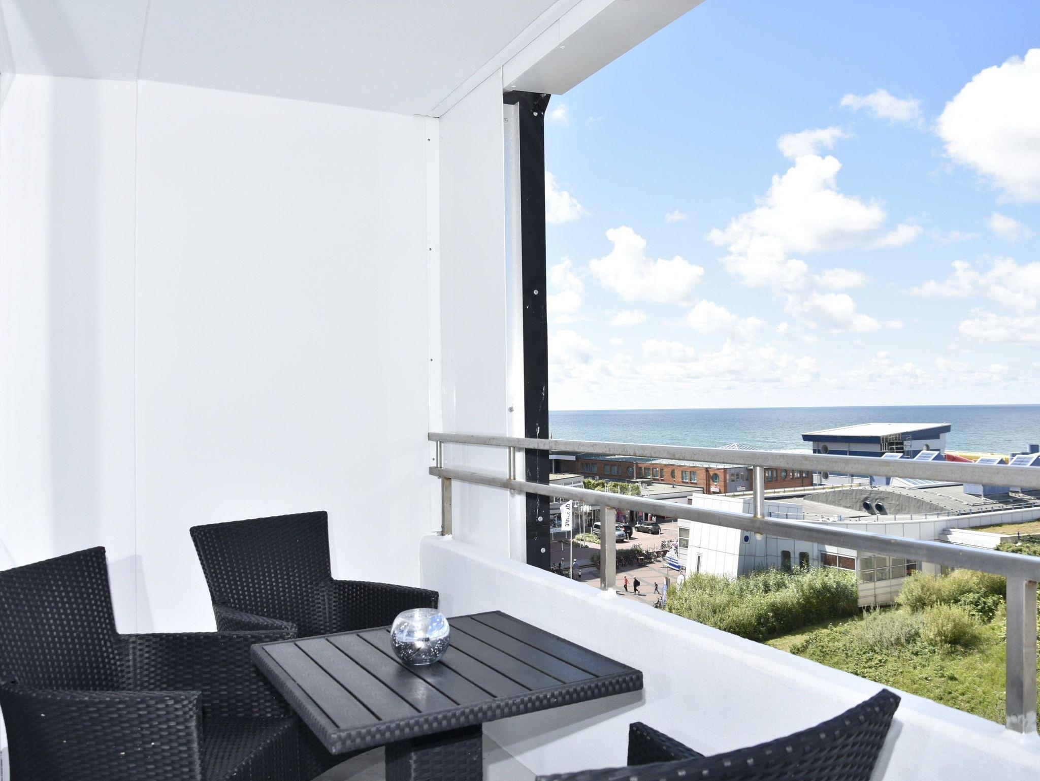 Komfortable 2-Zimmer-Nichtraucher-Ferienwohnung (ca. 51 qm) in der 6. Etage zur Seeseite mit herrlichem Meerblick für max. 4 Personen mit Westloggia (Nachmittagssonne, Balkonmöbel vorhanden).