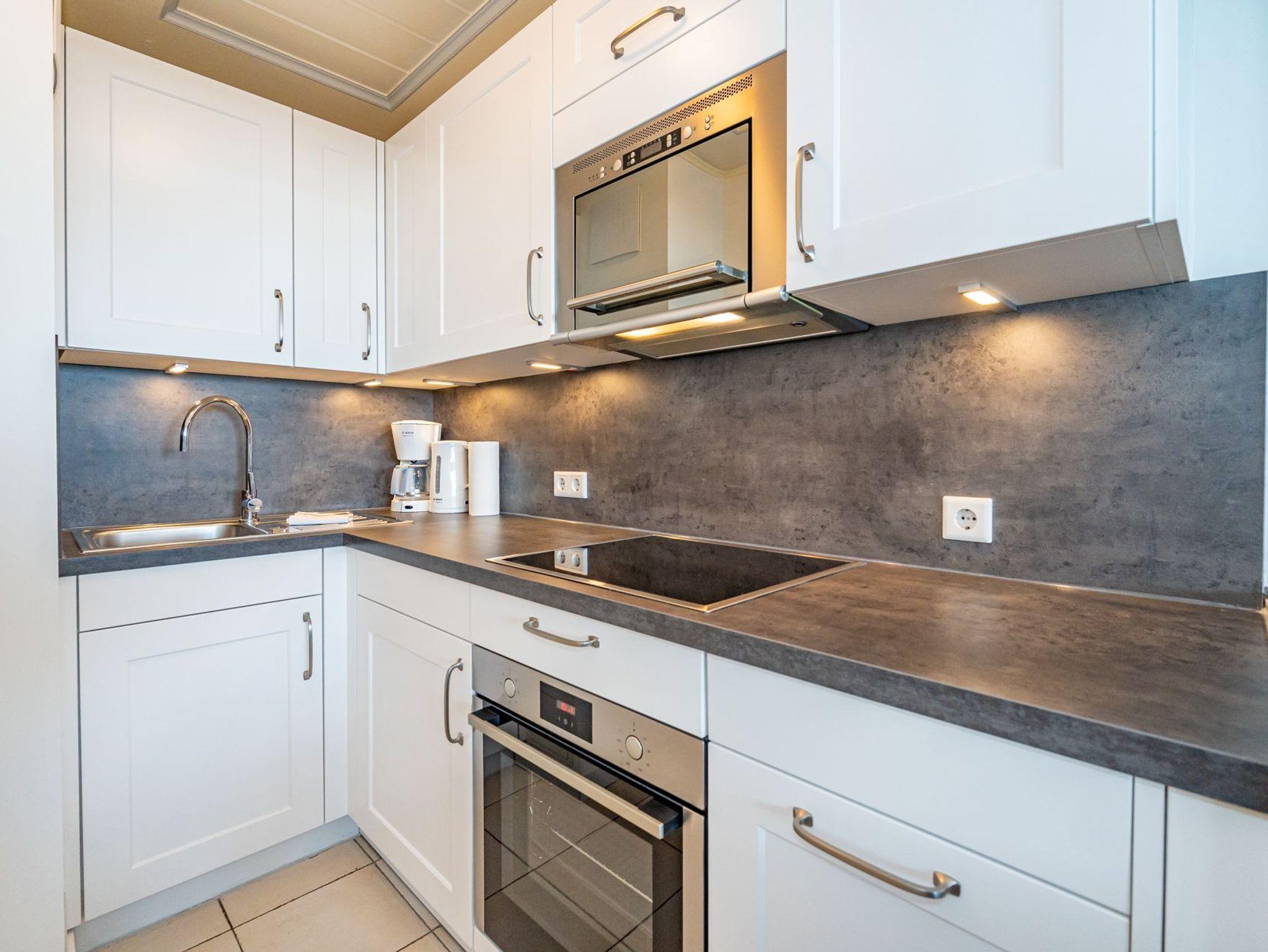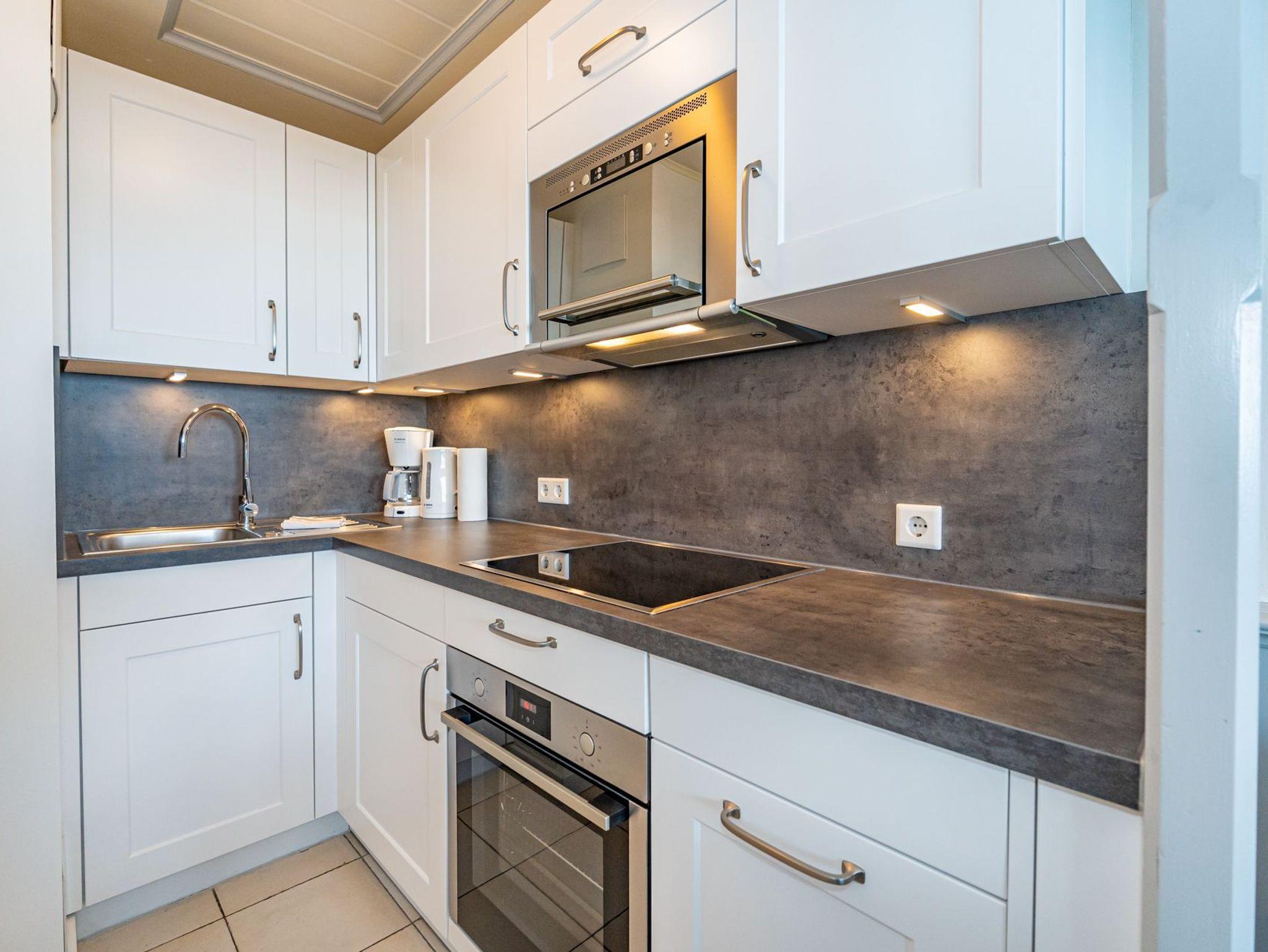Die Küche hat einen Geschirrspüler, eine Nespresso-Maschine, ein 4-Platten-Induktionskochfeld mit Backofen und einen Kühlschrank mit 3-Sterne-Gefrierfach.