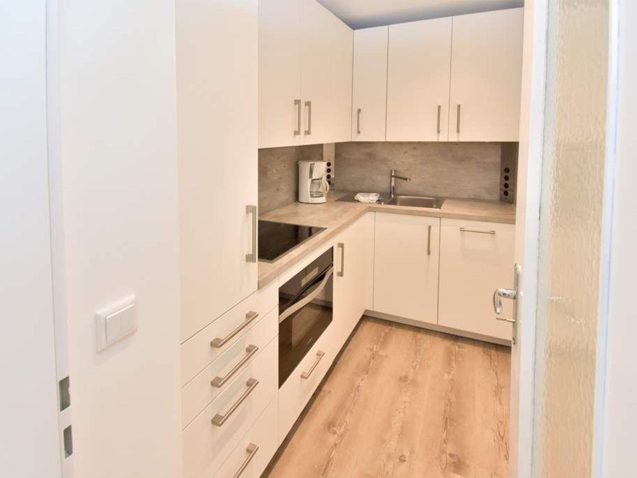 Vom Wohnraum gelangt man in die neue, separate Küche mit Geschirrspüler, Backofen, Ceranfeld (4 Kochfelder) und Kühlschrank mit 3-Sterne-Gefrierfach. Kaffeemaschine, Wasserkocher und Toaster gehören zur Grundausstattung.