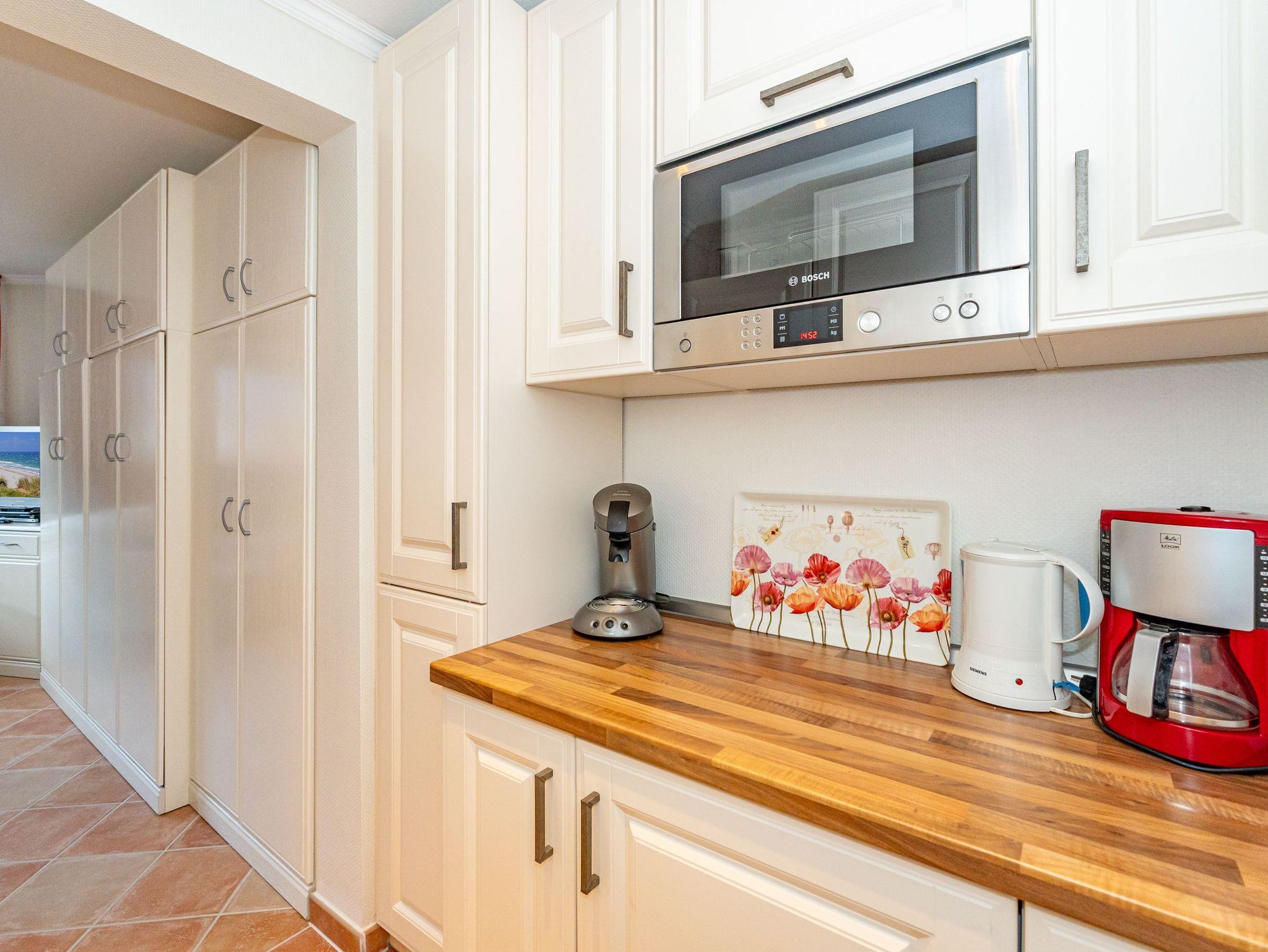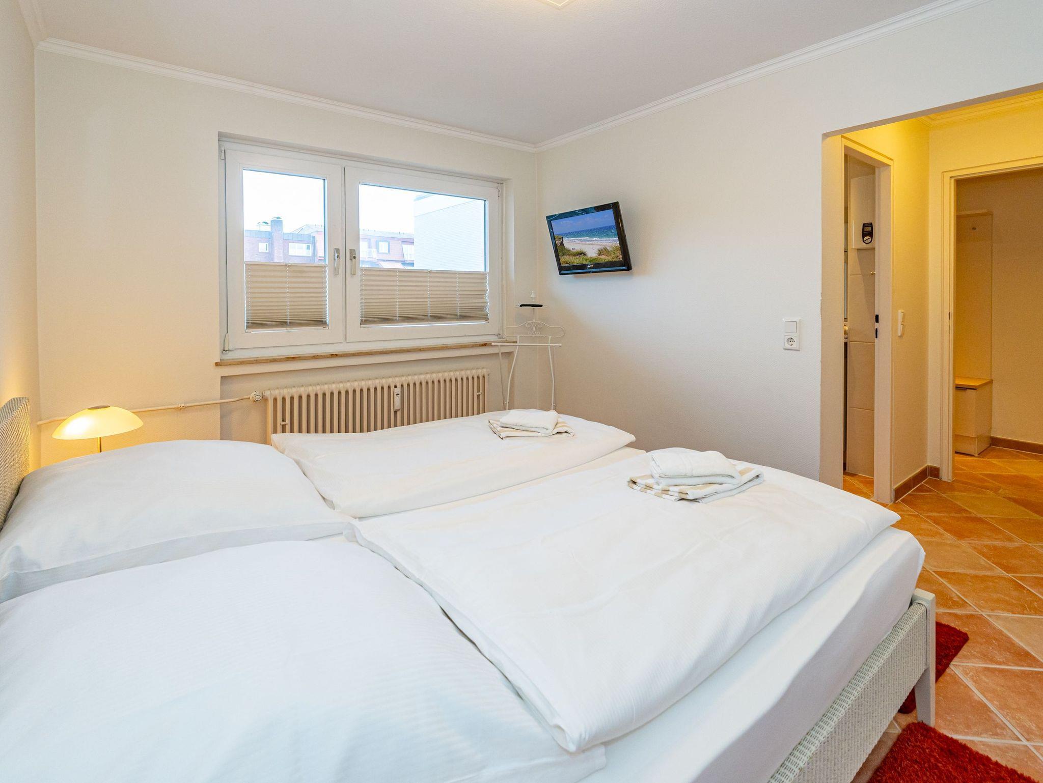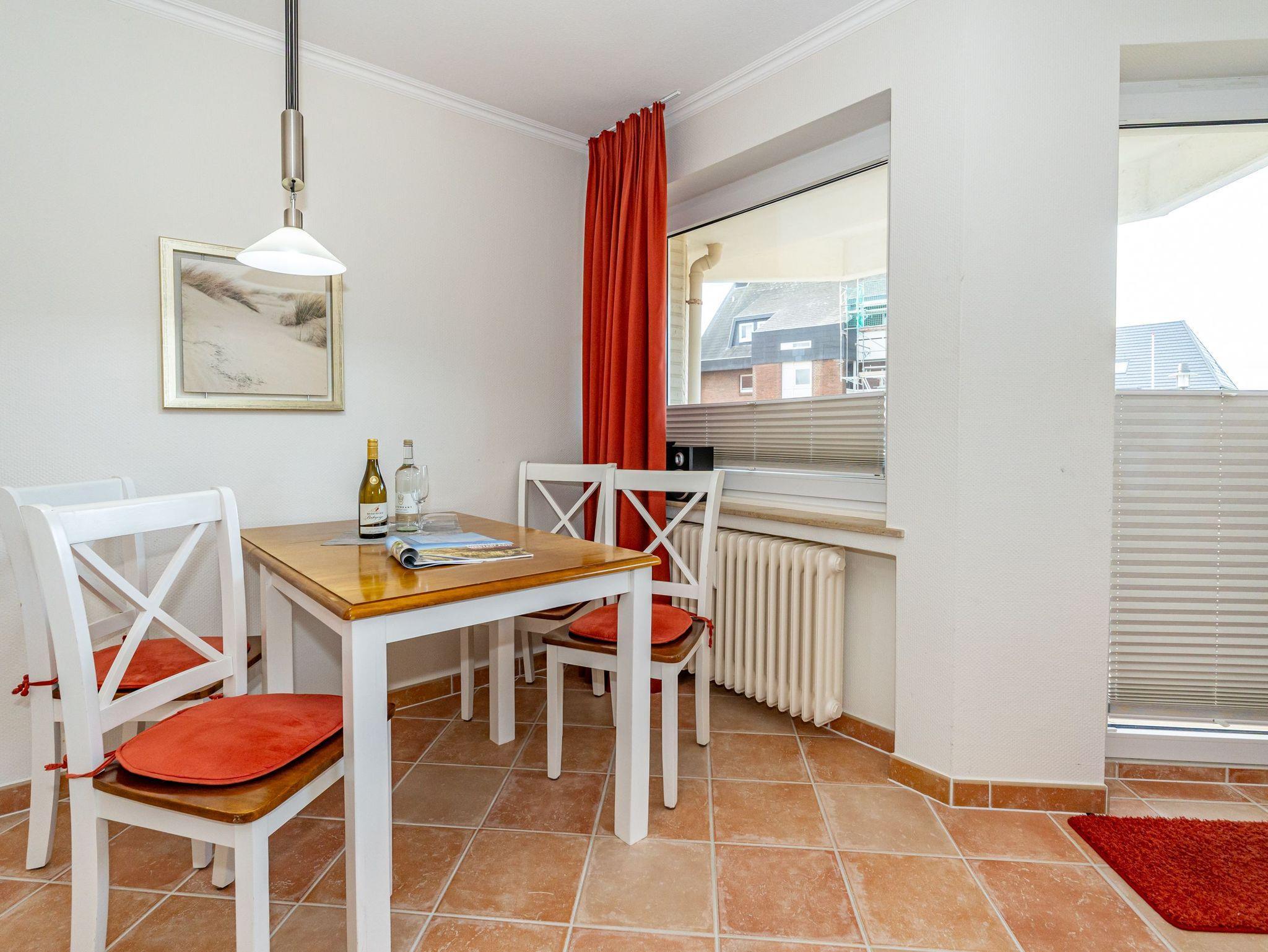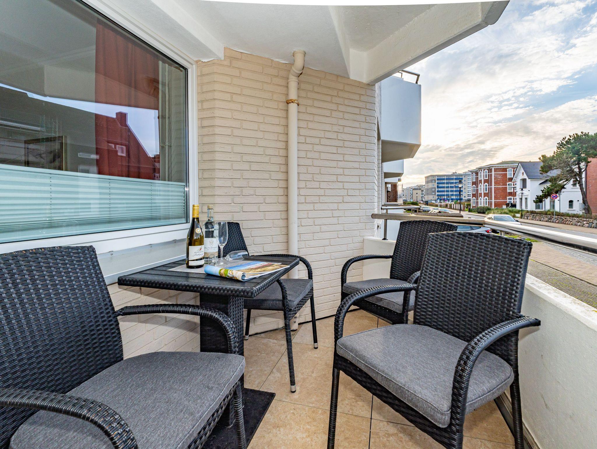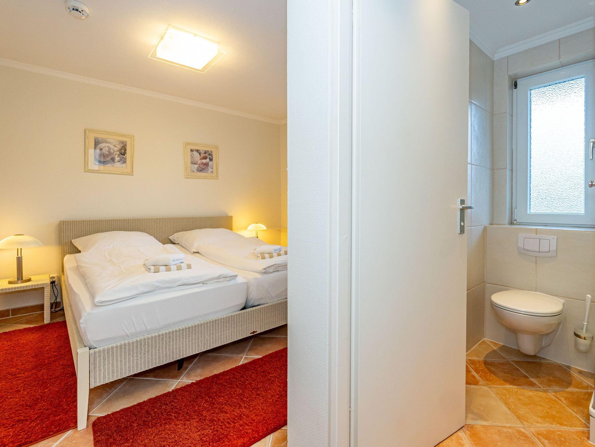 Erleben Sie Komfort und Wohlbefinden in dieser großzügigen, allergikergeeigneten 2-Zimmer-Ferienwohnung im Hochparterre (ca. 55 qm) ? ideal für einen entspannten Aufenthalt. Die Wohnung liegt auf einer Ebene und bietet Ihnen ein durchdachtes helles Raumkonzept, das keine Wünsche offen lässt. Im offenen Wohnbereich finden Sie flexible Wandklappbetten, eine gemütliche 2-Sitzer-Couch mit zwei Sesseln, einen Flachbild-TV, einen DVD-Player, ein Radio sowie einen offenen WLAN-Hotspot. Ein separater Essplatz und der Westbalkon ? der Sie in der Nachmittagssonne mit seiner komfortablen Ausstattung zum Verweilen einlädt ? runden den Wohnbereich perfekt ab.