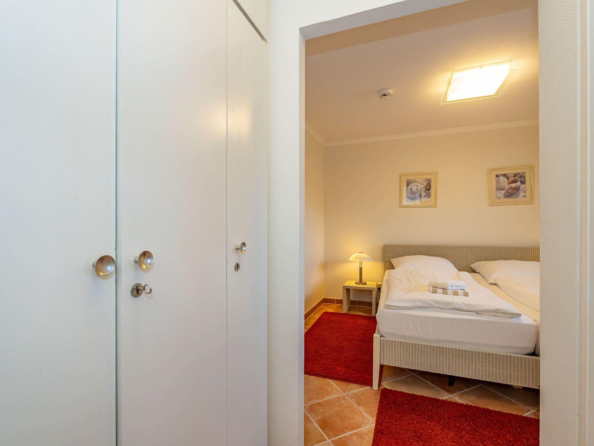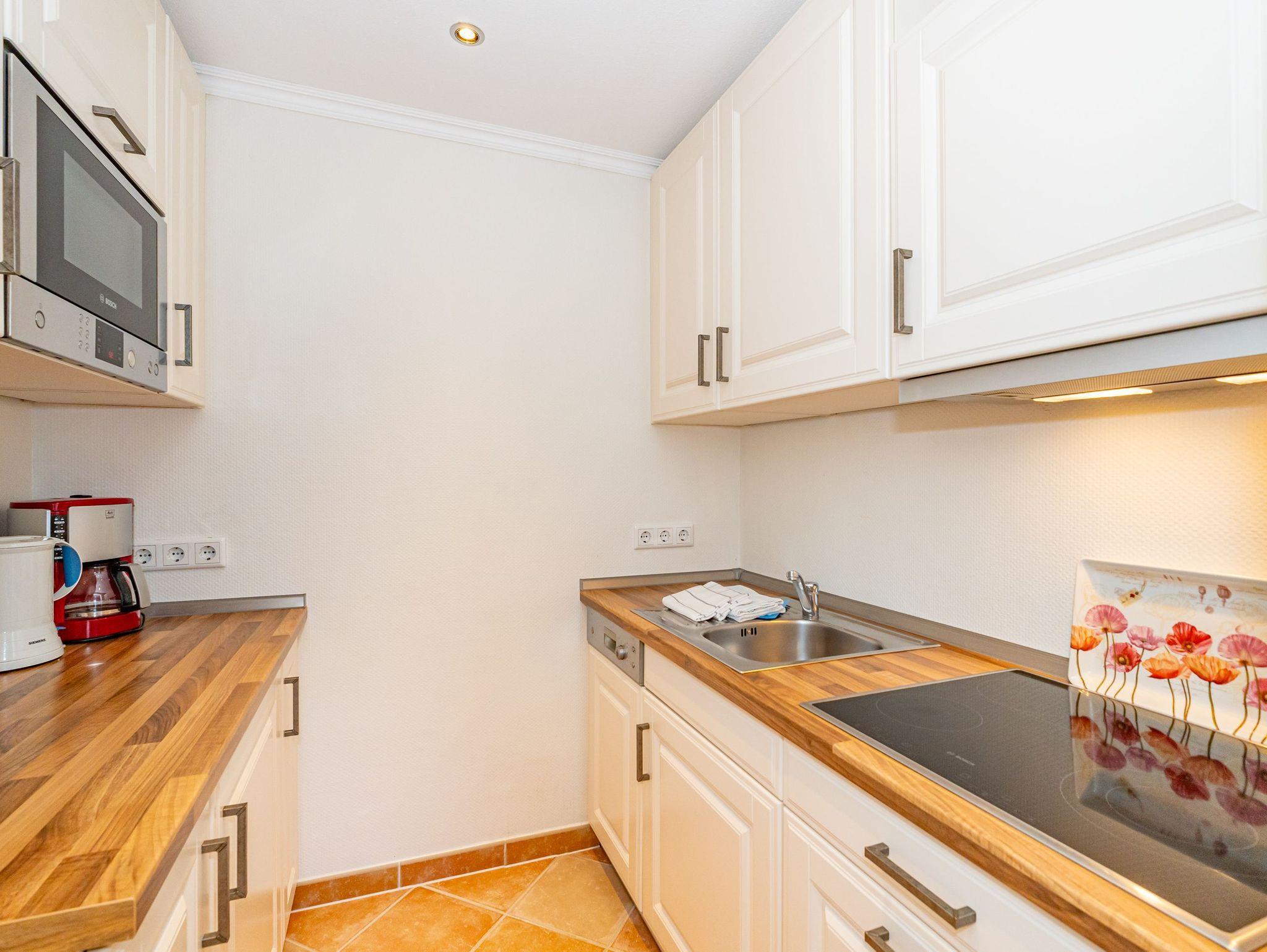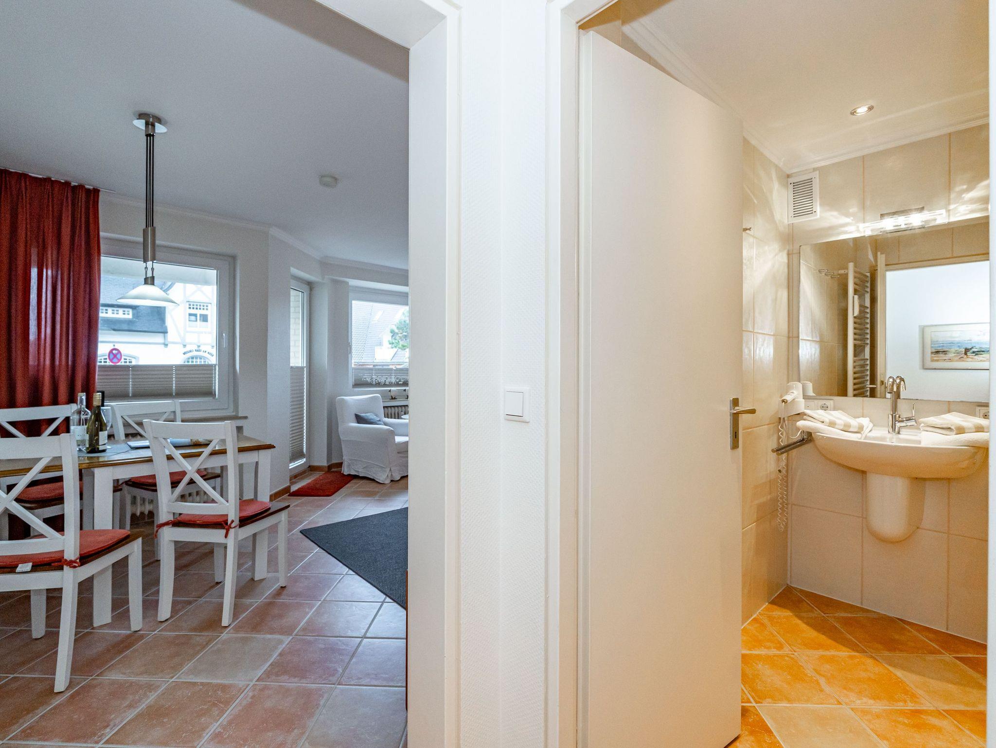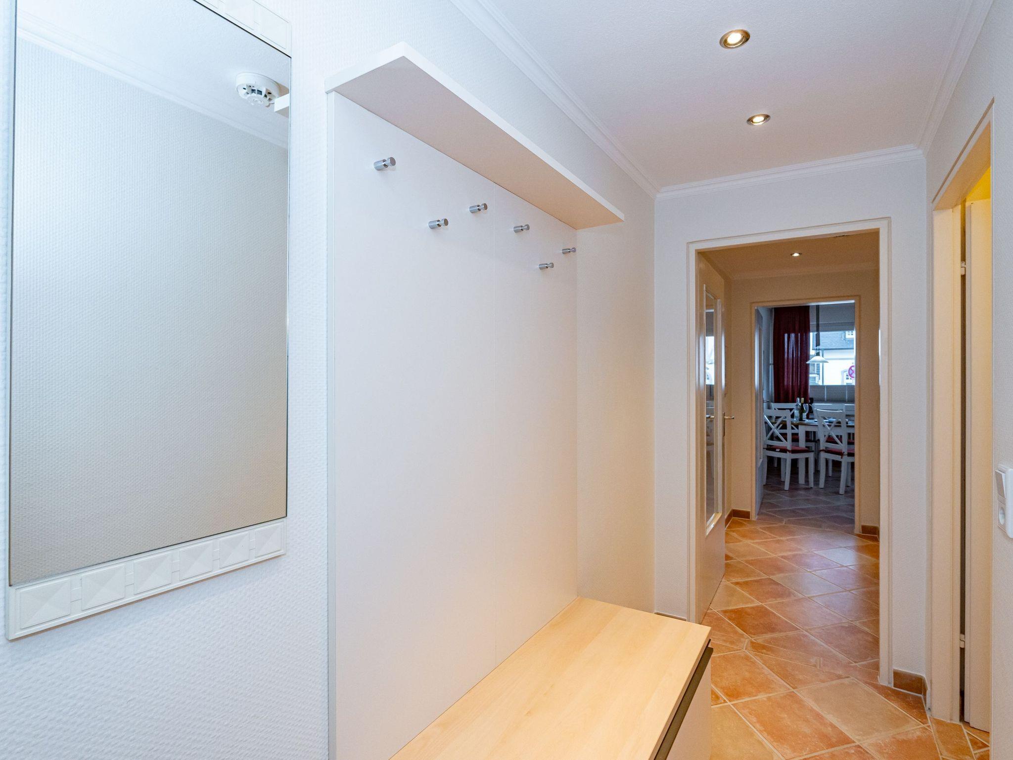 Erleben Sie Komfort und Wohlbefinden in dieser großzügigen, allergikergeeigneten 2-Zimmer-Ferienwohnung im Hochparterre (ca. 55 qm) ? ideal für einen entspannten Aufenthalt. Die Wohnung liegt auf einer Ebene und bietet Ihnen ein durchdachtes helles Raumkonzept, das keine Wünsche offen lässt. Im offenen Wohnbereich finden Sie flexible Wandklappbetten, eine gemütliche 2-Sitzer-Couch mit zwei Sesseln, einen Flachbild-TV, einen DVD-Player, ein Radio sowie einen offenen WLAN-Hotspot. Ein separater Essplatz und der Westbalkon ? der Sie in der Nachmittagssonne mit seiner komfortablen Ausstattung zum Verweilen einlädt ? runden den Wohnbereich perfekt ab.