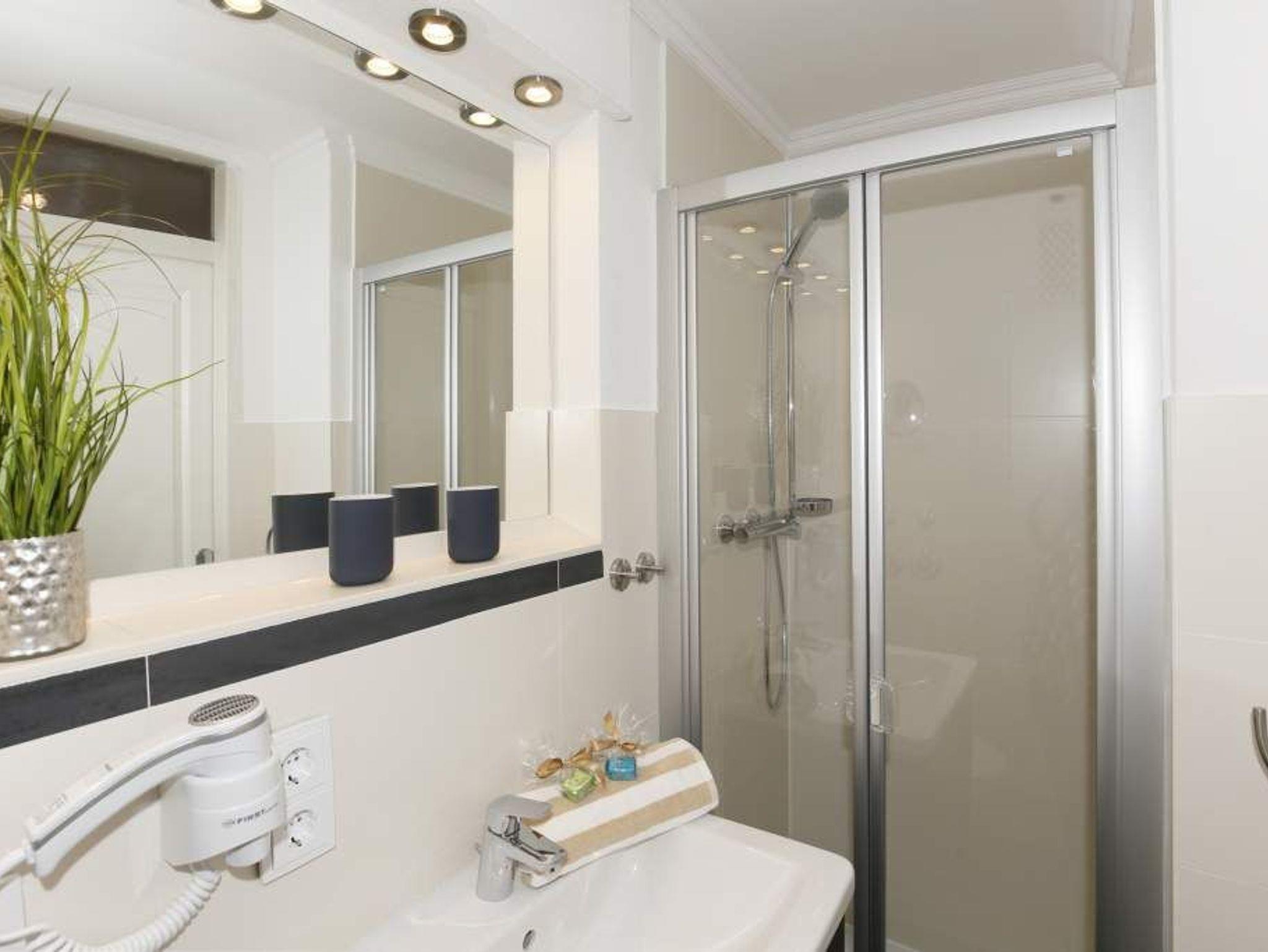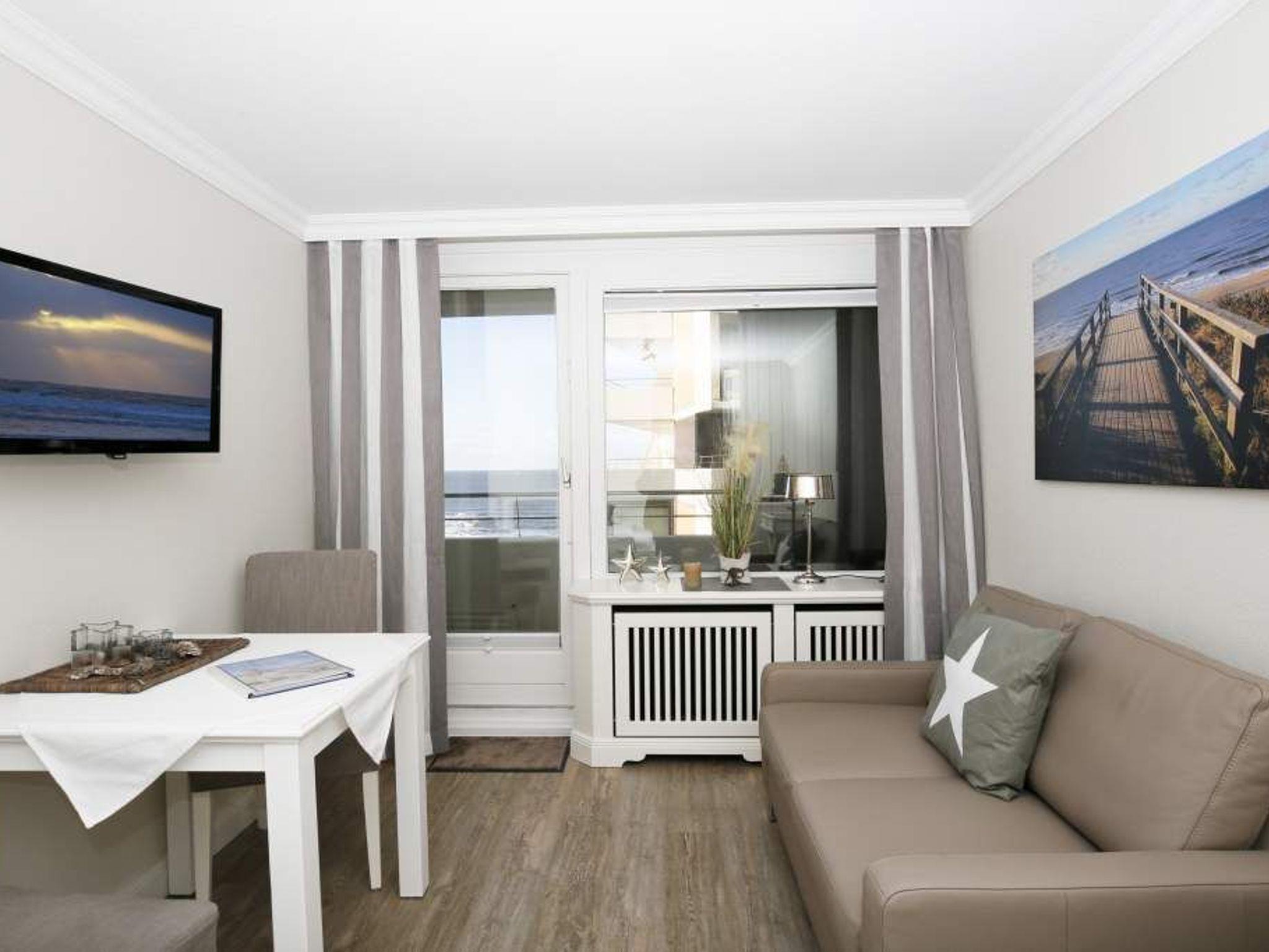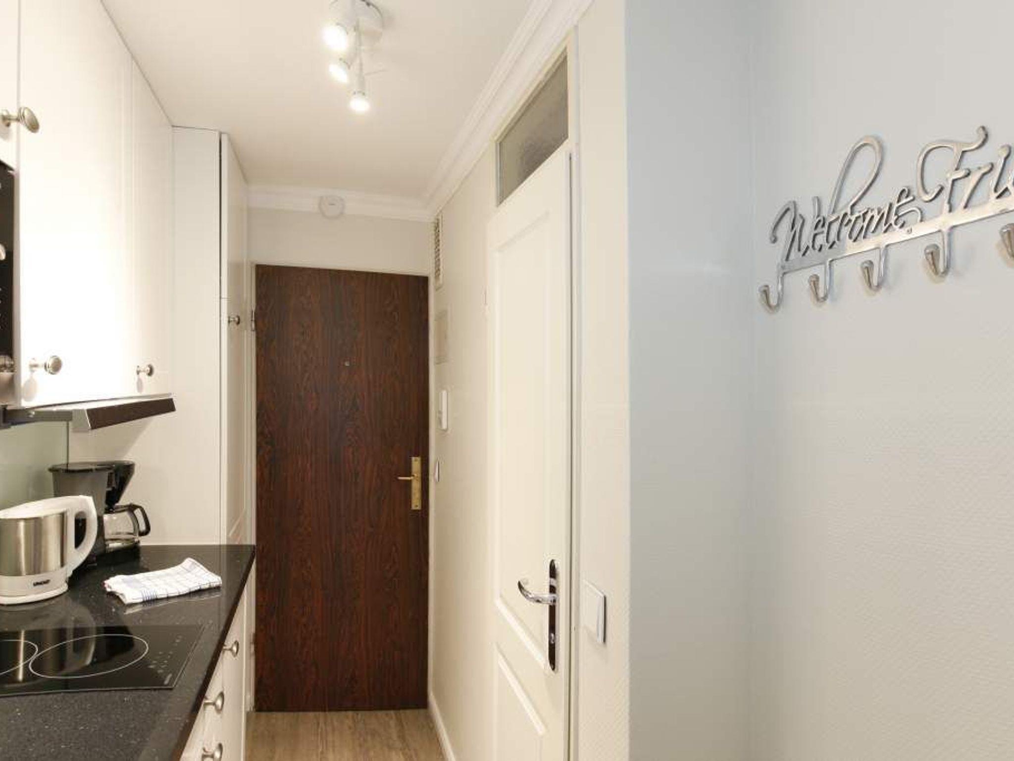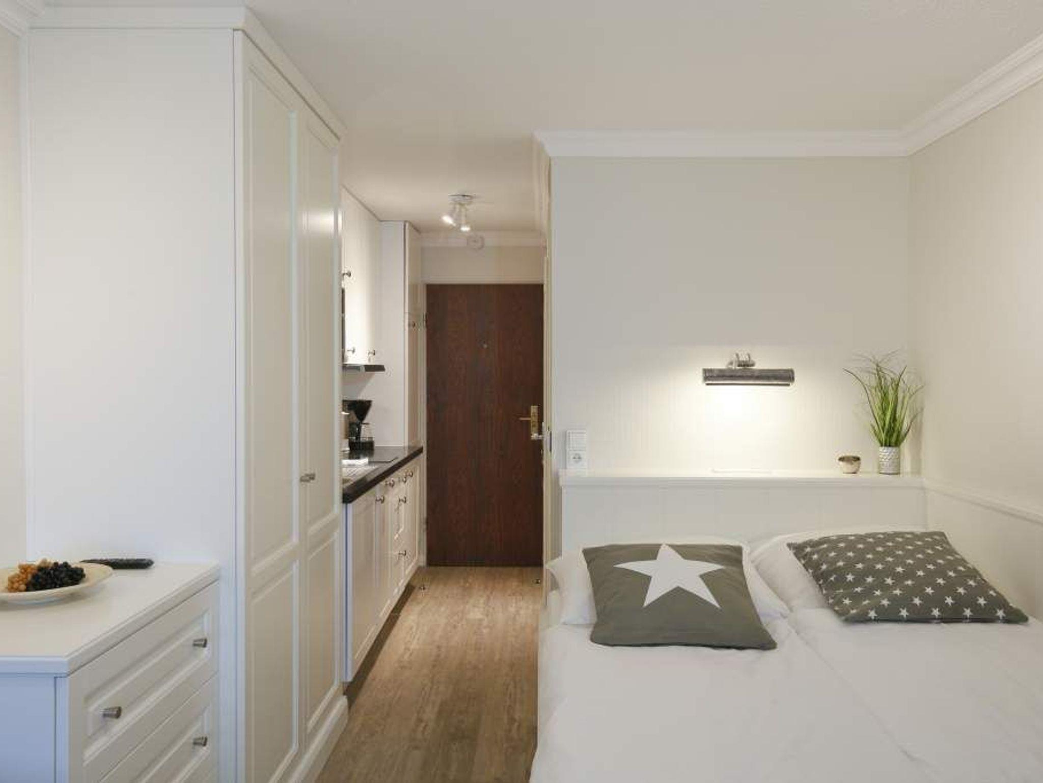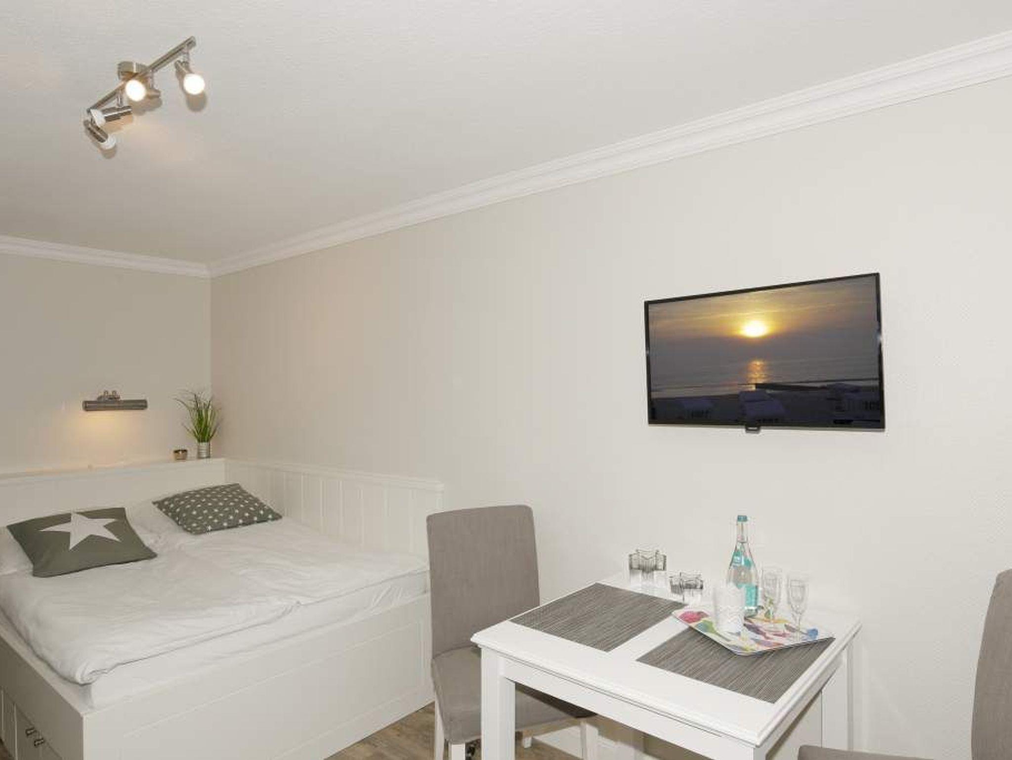 1-Zimmer-Nichtraucher-Ferienwohnung ca. 23 qm in der 3. Etage zur Westseite mit seitlichem Meerblick und Westloggia (Nachmittagssonne, mit Balkonmöbeln und Auflagen) für max. 2 Personen.[nbsp][nbsp]