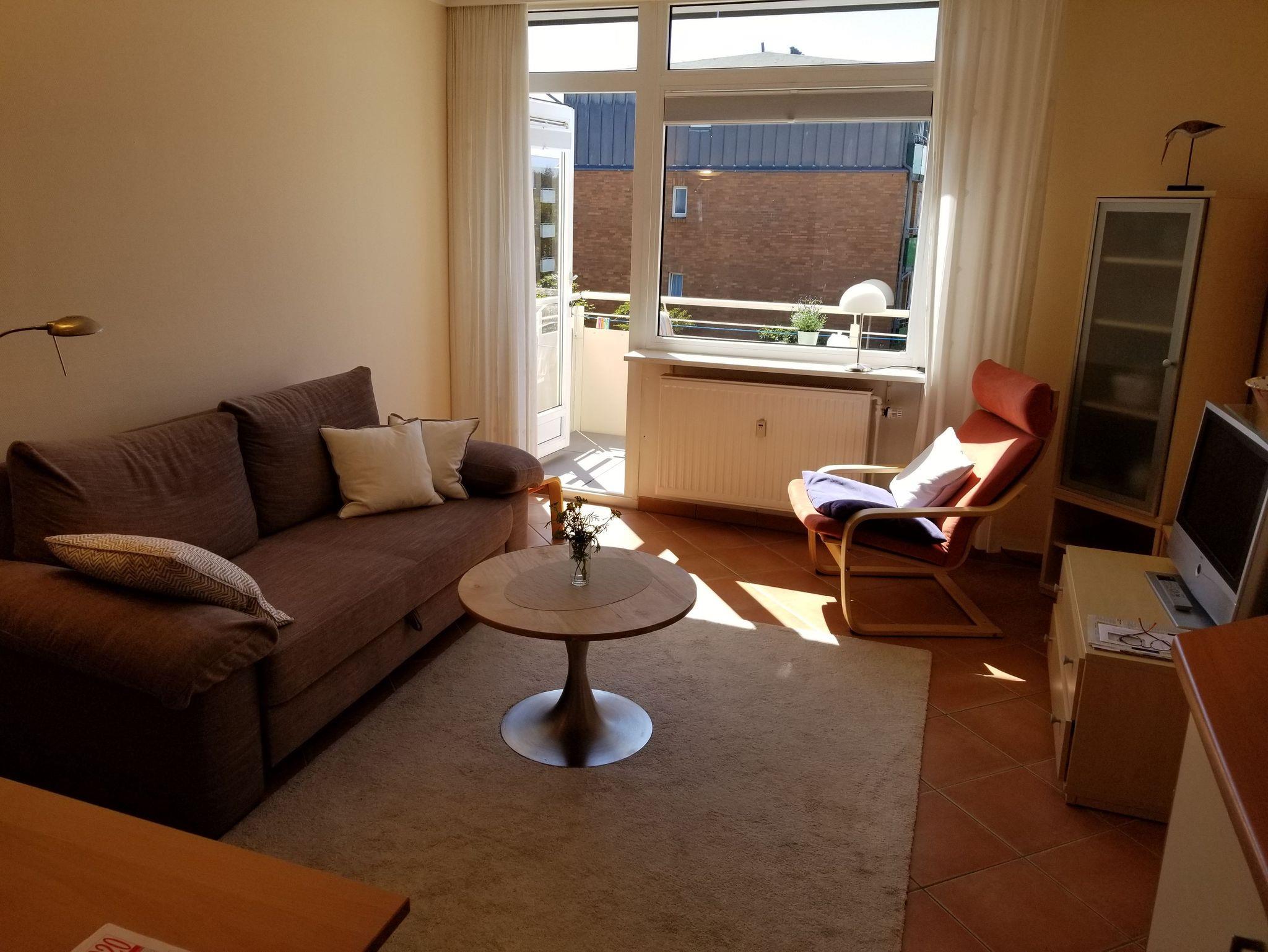 Die Wohnung verfügt über einen Wohnraum, mit Schlafcouch und ein separates Schlafzimmer (getrennt schlafen möglich) Im Wohnzimmer befindet sich ein Flachbildschirm.