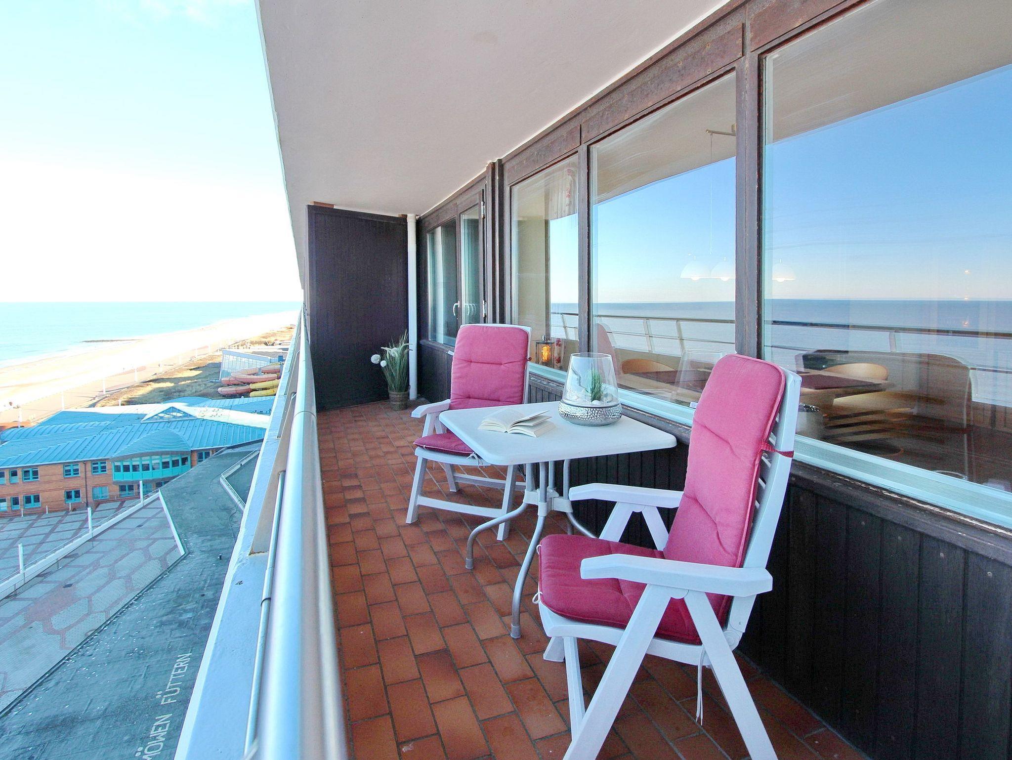 Hell und freundlich eingerichtete 2 Zimmer Wohnung in der 7. Etage im Haus Metropol für 1-4 Personen mit herrlichem Blick über den Strand und die Nordsee. Das Wohnzimmer mit vorgelagertem Westbalkon (Balkonmöbel vorhanden) hat eine bequeme Couch mit Schlaffunktion, einen Fernsehsessel, eine Schrankwand und einen Essplatz am Fenster mit 4 Stühlen. Das Schlafzimmer (mit kleinem Westbalkon) mit feststehendem Doppelbett hat eine begehbaren Kleiderschrank sowie eine Wohlfühlecke mit Relaxsessel. Im Badezimmer gibt es eine Dusche. Die separate Küche mit Geschirrspüler, Ceranfeld, Mikrowelle und Backofen lässt keine Wünsche offen. Zur technischen Ausstattung der Wohnung gehört ein Flachbildfernseher, Bluray-Player, Bluetooth Soundsystem inkl. Radio und CD Spieler. Ein freies WLAN Netzwerk (WEG Haus Metropol - Passwortfrei - ohne Gewähr) steht ihnen kostenfrei zur Verfügung. Ein nicht funktionierender Internetanschluss stellt keinen Mietminderungsgrund dar. Laut Eigentümer ist diese Nichtraucherwohnung Hausstauballergiker geeignet. Wohnungsgröße: ca. 67 m².